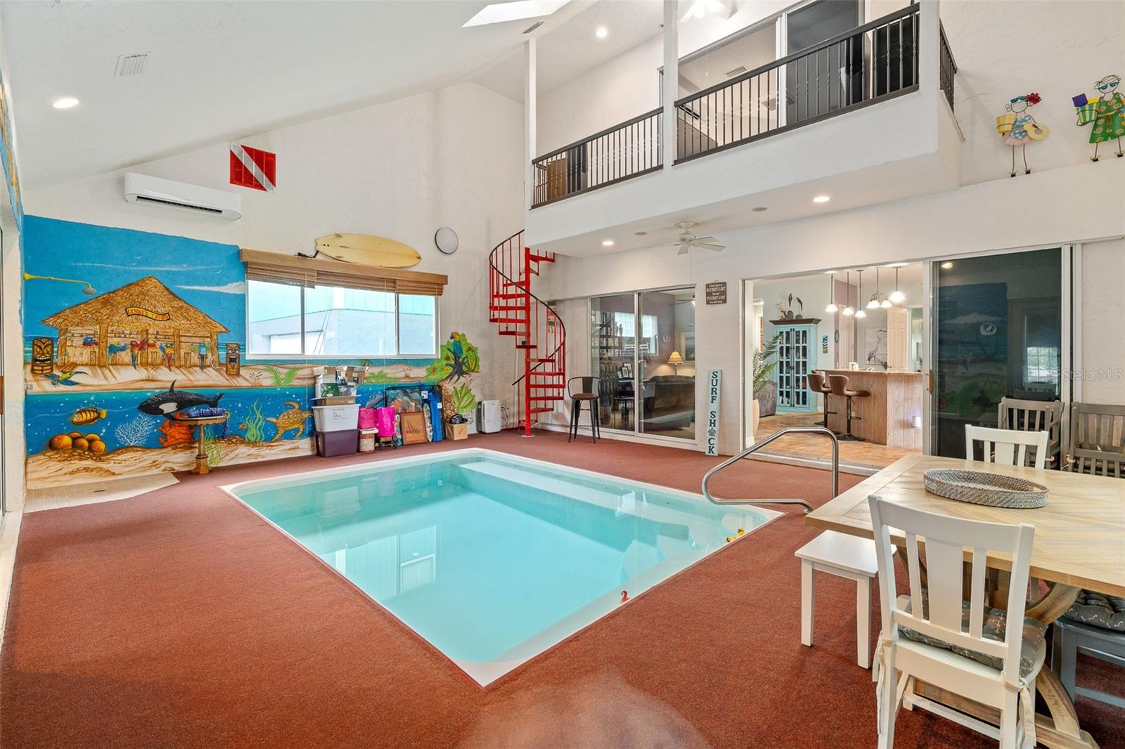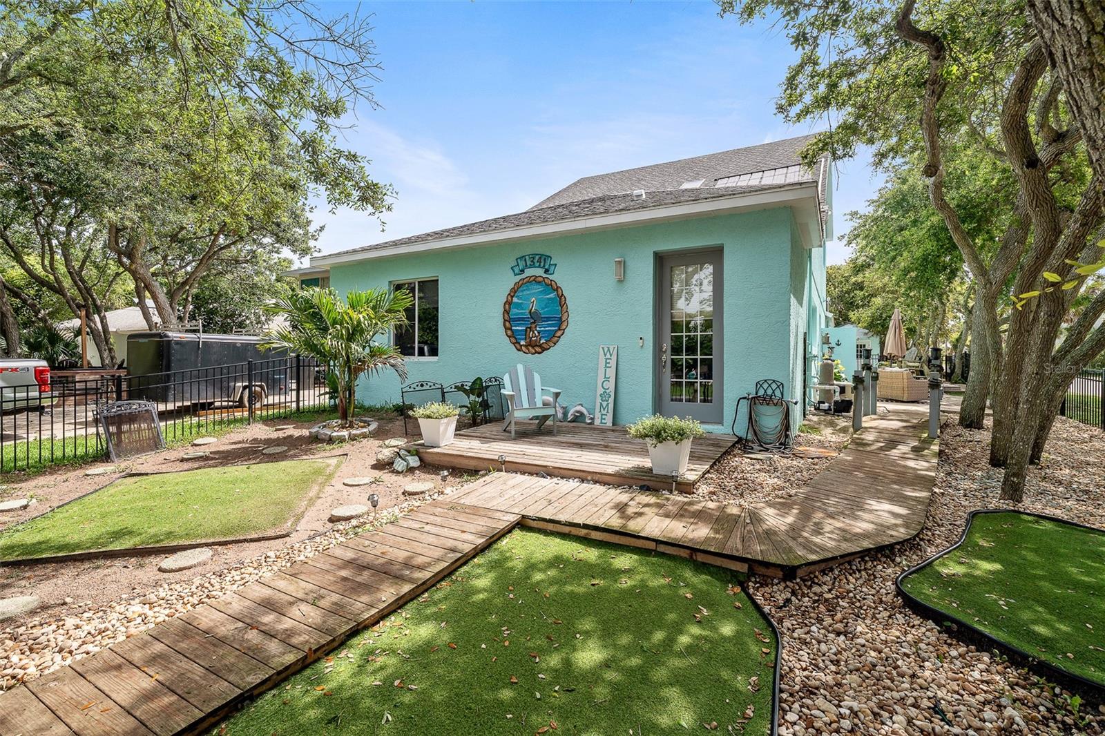Coastal living just two blocks from the beach! Welcome to 1341 S Daytona Ave – a rare and versatile coastal retreat in the heart of charming Flagler Beach! This spacious 3-bedroom, 3.5-bathroom home sits on a corner lot just two short blocks from the Atlantic Ocean and offers an unbeatable blend of comfort, functionality, and rental potential in a non-hazardous Flood Zone X. Step inside to discover a unique layout featuring a heated indoor pool, perfect for year-round enjoyment and entertaining in any weather. The home includes a flexible private wing that can function as a 1-bedroom apartment with its own entrance—ideal for rental income, in-law suite, or guest accommodations. Outdoors, the property is a private oasis beneath a canopy of mature coastal oaks, offering shaded sitting areas, beautiful landscaping, and a large storage shed for all your gear, tools, or beach toys. Flagler Beach is one of Florida’s last authentic beach towns—laid-back, golf-cart friendly, and full of local charm. From weekly farmers markets and live music to surfing, fishing, and waterfront dining, the community vibe is welcoming and vibrant. Whether you’re looking for a full-time residence, vacation home, or income-producing property, 1341 S Daytona Ave delivers the best of beachside living in one of Northeast Florida’s most desirable coastal communities.