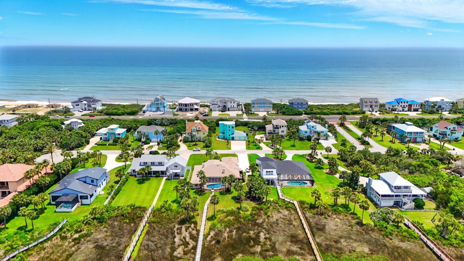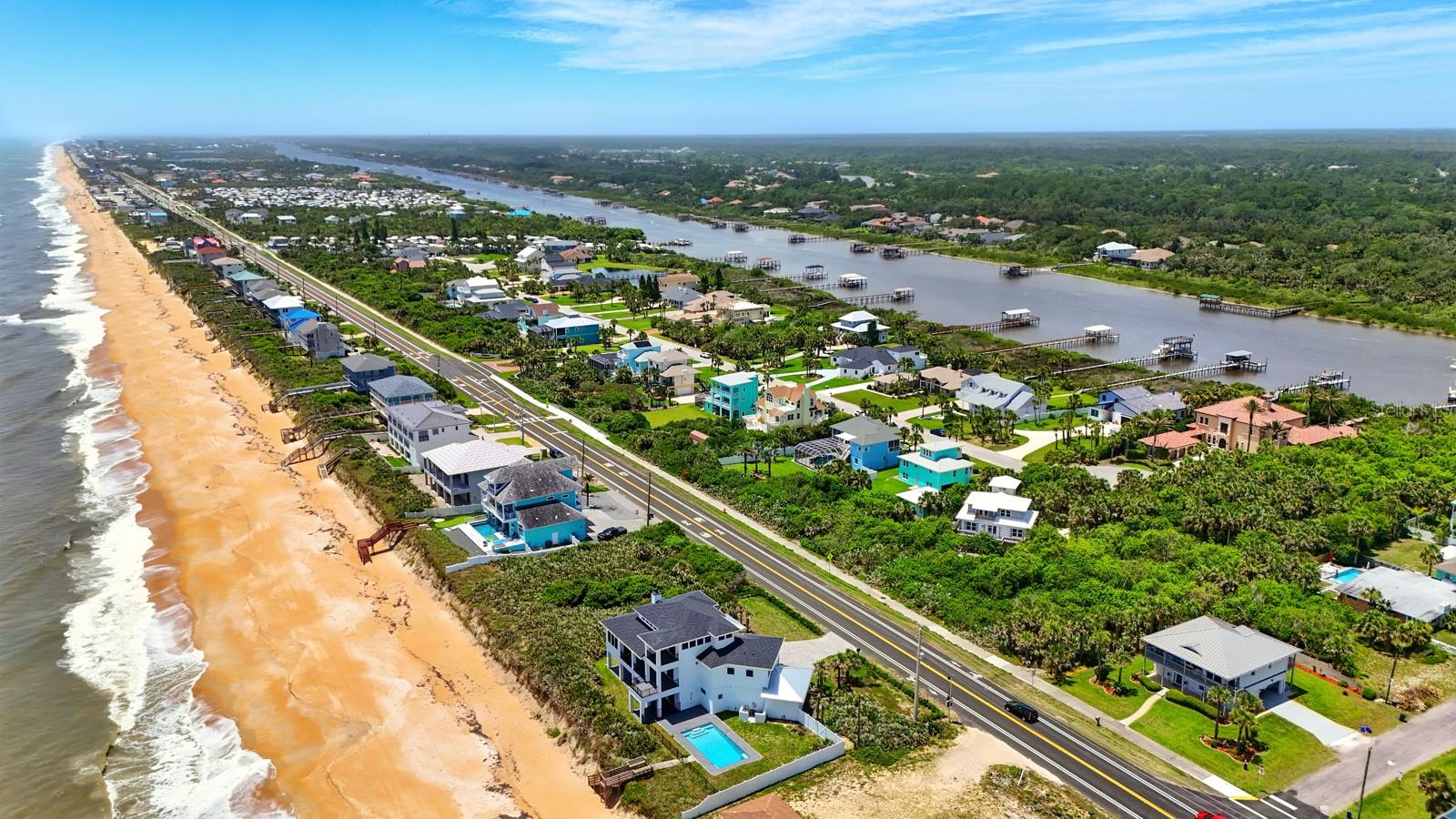 ** BRAND-NEW 15' x 30' CUSTOM POOL AND FULL SCREEN ENCLOSURE IS SCHEDULED TO BE INSTALLED ** This will create a true resort-style outdoor oasis perfect for relaxing, entertaining, and year-round enjoyment. See the renderings in the photos for a preview of what’s to come. Welcome to 3073 Painters Walk—coastal living reimagined in one of Flagler Beach’s most coveted locations. Built in 2022 with energy-efficient, ICF (Insulated Concrete Form) construction, this elevated three-story concrete block home offers the perfect combination of thoughtful design, rock-solid durability, and flexible living space—all positioned between the Atlantic Ocean and the Intracoastal Waterway. Set on nearly half an acre, the property offers plenty of space for the pool of your dreams, and the backyard is already a peaceful haven where deer and wildlife roam. Best of all, directly across A1A is a private beach walkover reserved exclusively for Painters Walk residents, giving you effortless access to the quiet shoreline in just moments. To the west, enjoy stunning sunsets over the Intracoastal—this is truly a dream location. Downstairs, two completely independent 1-bedroom apartments each feature a fully functional kitchenette with granite countertops and stainless steel appliances, modern bathrooms with walk-in tiled showers, in-unit laundry, and private entrances. The two units also share access to a screened-in patio—perfect for relaxing in the shade. Just beyond that is an additional large screened-in outdoor area, ideal for a future hot tub, outdoor dining, or simply enjoying the coastal weather. Whether you're hosting guests, welcoming extended family, or tapping into short-term rental income, these turnkey spaces are ready to perform. A split 2-car garage offers secure parking and extra flexibility, whether you're storing beach gear, bikes, or creating a workshop or owner's storage space if you decide to rent. Upstairs, the second floor is dedicated to the spacious owner’s suite, complete with a walk-in closet, luxurious en-suite bathroom, and a private balcony that overlooks the backyard and captures cool ocean breezes. A large laundry room with a utility sink and built-in cabinetry adds function and convenience. On the third floor, you’ll find the heart of the home—a wide-open living, dining, and kitchen space surrounded by balconies on both sides, offering incredible sunrise and sunset views. The kitchen is outfitted with LG ENERGY STAR appliances, custom cabinetry, porcelain countertops, and a tiled backsplash. A fourth full bathroom adds flexibility for guests or everyday use. Luxury vinyl plank flooring runs throughout the interior, and wood-look tile plank flooring finishes all exterior balconies—a perfect combination of durability and coastal style. From top to bottom, this home was built with quality in mind: wind-mitigated roof, impact-rated doors and windows, and energy-efficient systems ensure comfort and peace of mind year-round. An HOA maintains the private beach walkover and community standards, while preserving the low-key coastal charm that makes this neighborhood so special. Prime location. Short-term rental potential. Ocean and Intracoastal views. 3073 Painters Walk offers a rare opportunity to enjoy the Flagler Beach lifestyle—whether you live here full-time, rent part of the home, or offer it as a full-time income-producing property.