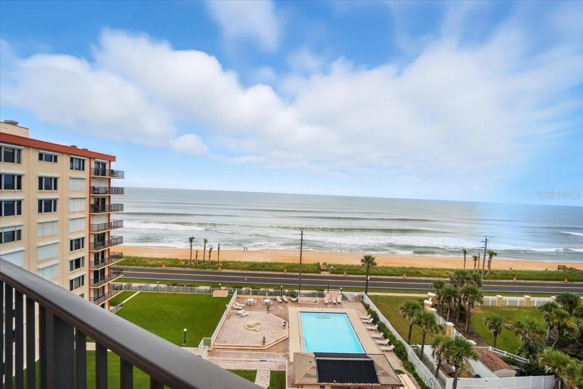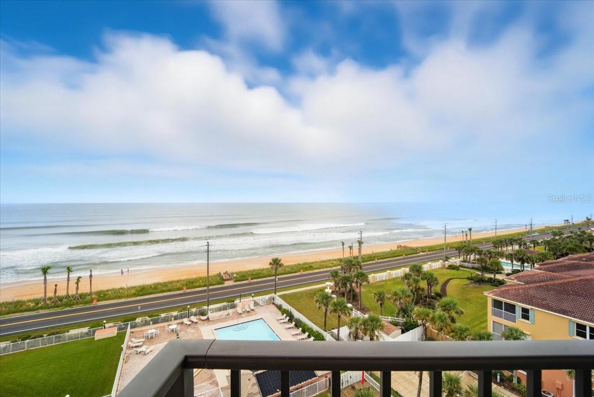 Stunning Oceanfront Condo with Panoramic Views!! Experience coastal living at its finest in this beautifully appointed 3-bedroom, 3-bath condo at Ocean View Manor. This eight-floor corner unit offers sweeping views of the Atlantic Ocean and Intracoastal Waterway from spacious wrap-around balconies, perfect for sunrise coffee or evening sunsets. Inside, you'll find a light-filled open layout with over 1700 sq ft of living space, a kitchen open to the dining area and living room, and three generously sized bedrooms- each with its own bath for privacy and comfort. Ocean View Manor provides amenities including an oceanfront pool with cabana and private access to the beach, fitness room with showers and sauna, workshop area, tennis/pickleball courts, shuffleboard, and a community room for gatherings. Conveniently located just minutes from the charm of Flagler Beach, shops, and dining. Don't miss this rare opportunity to own a piece of paradise where the ocean meets the Intracoastal! Schedule your showing today!!