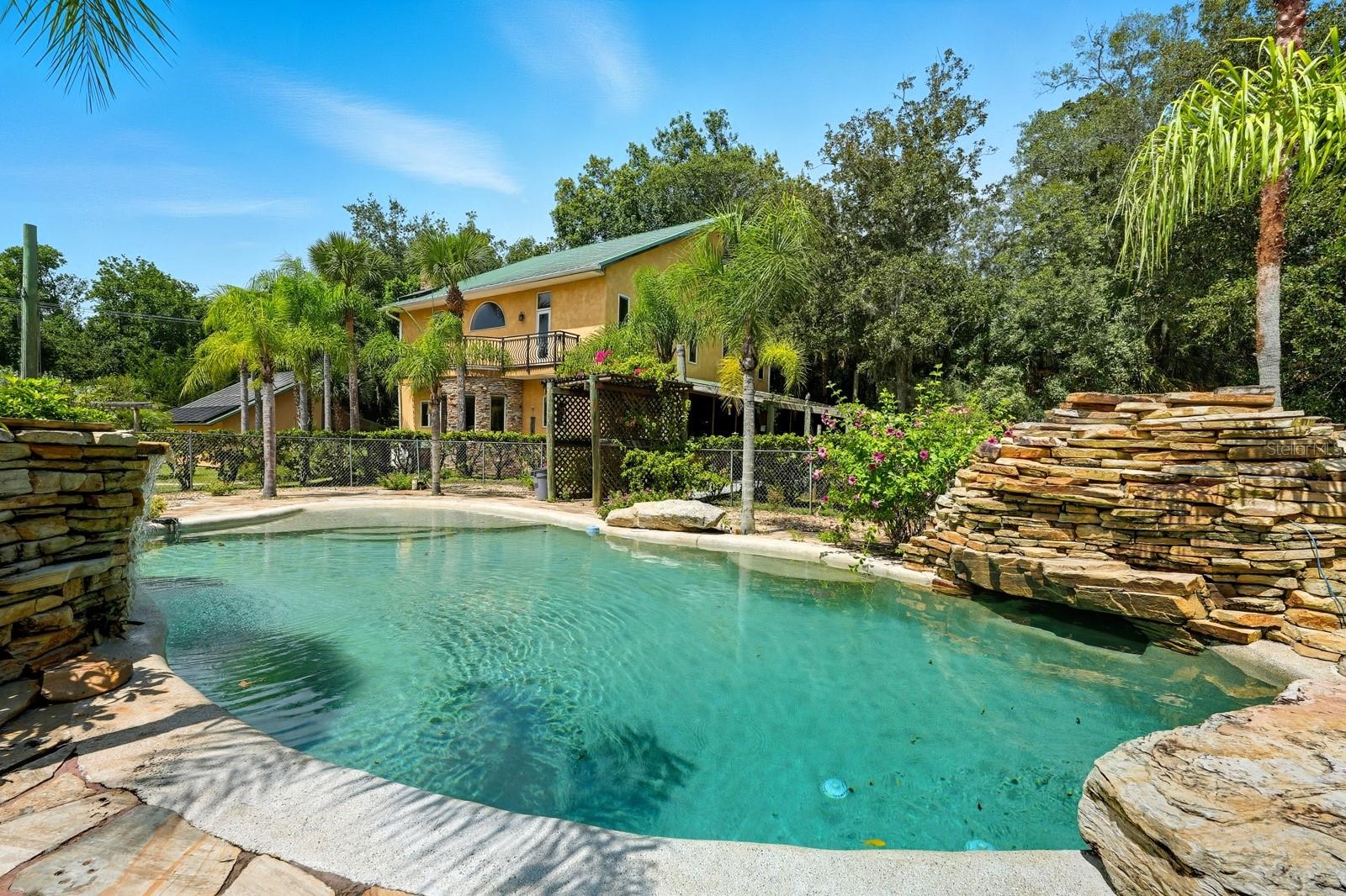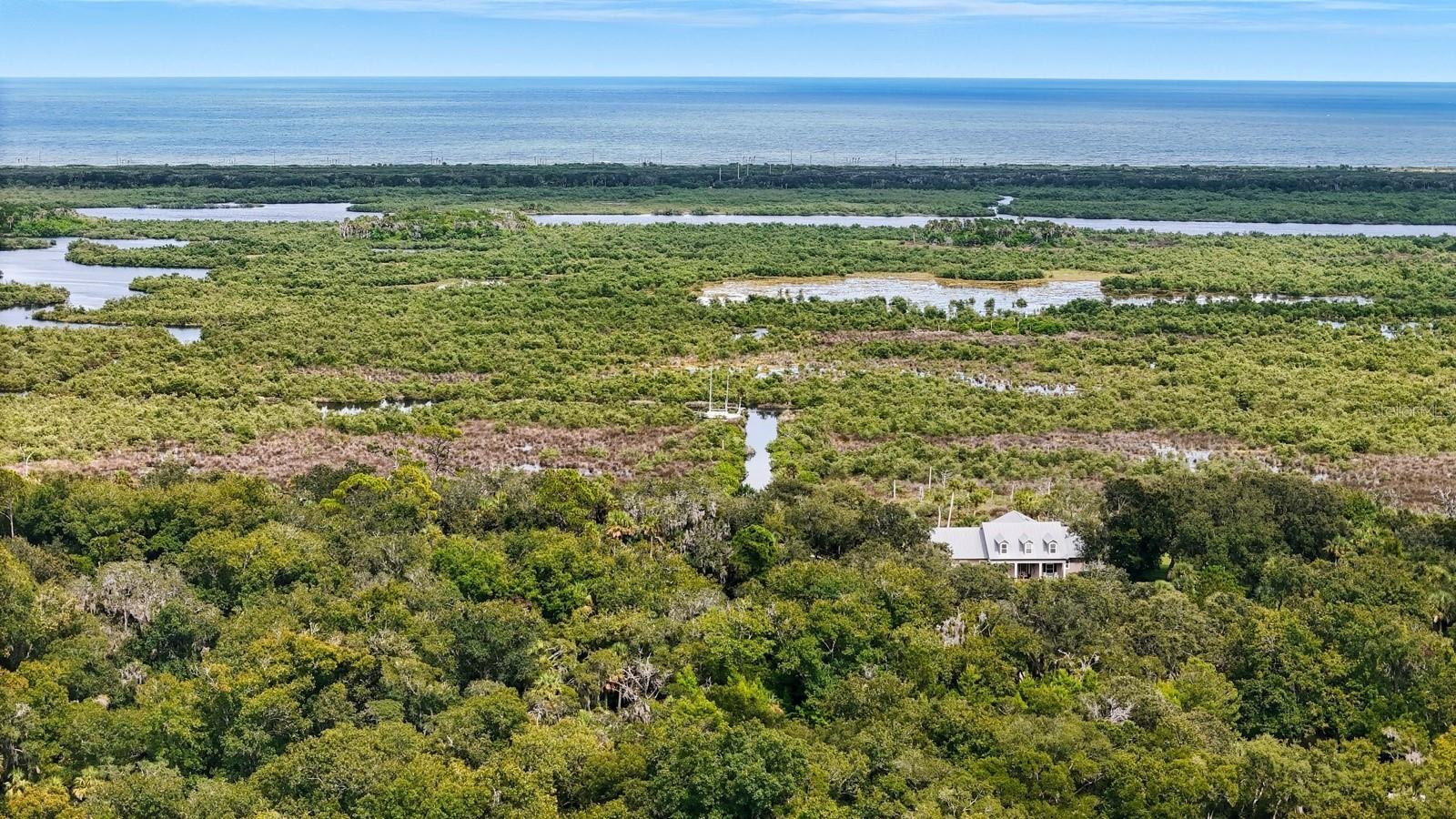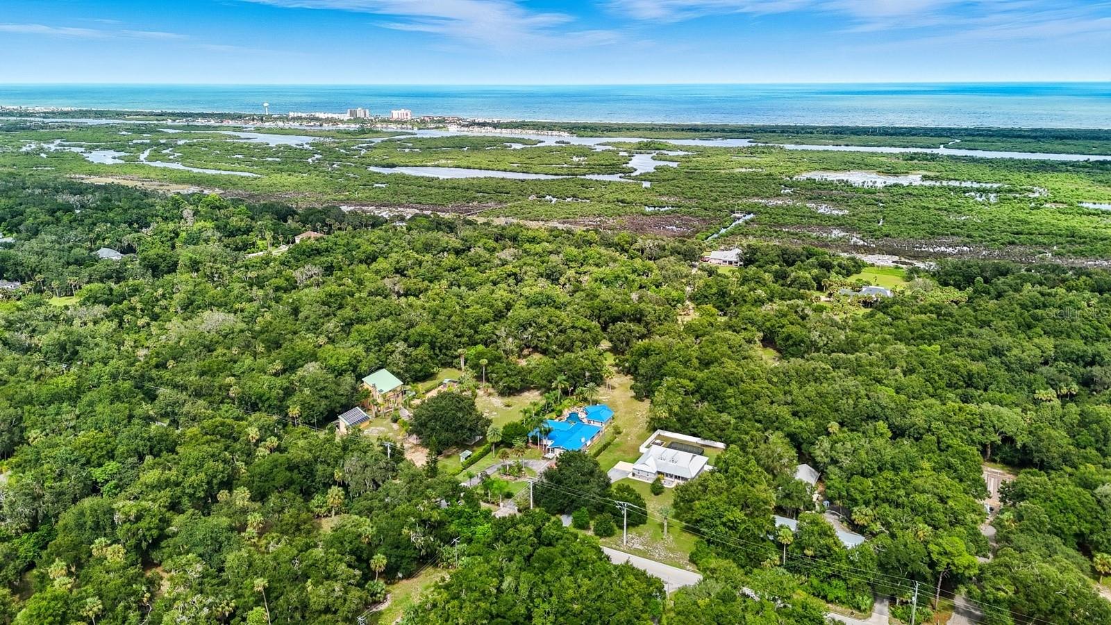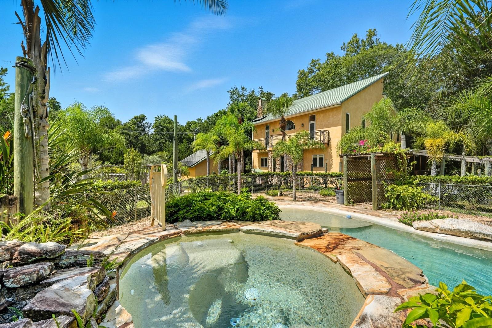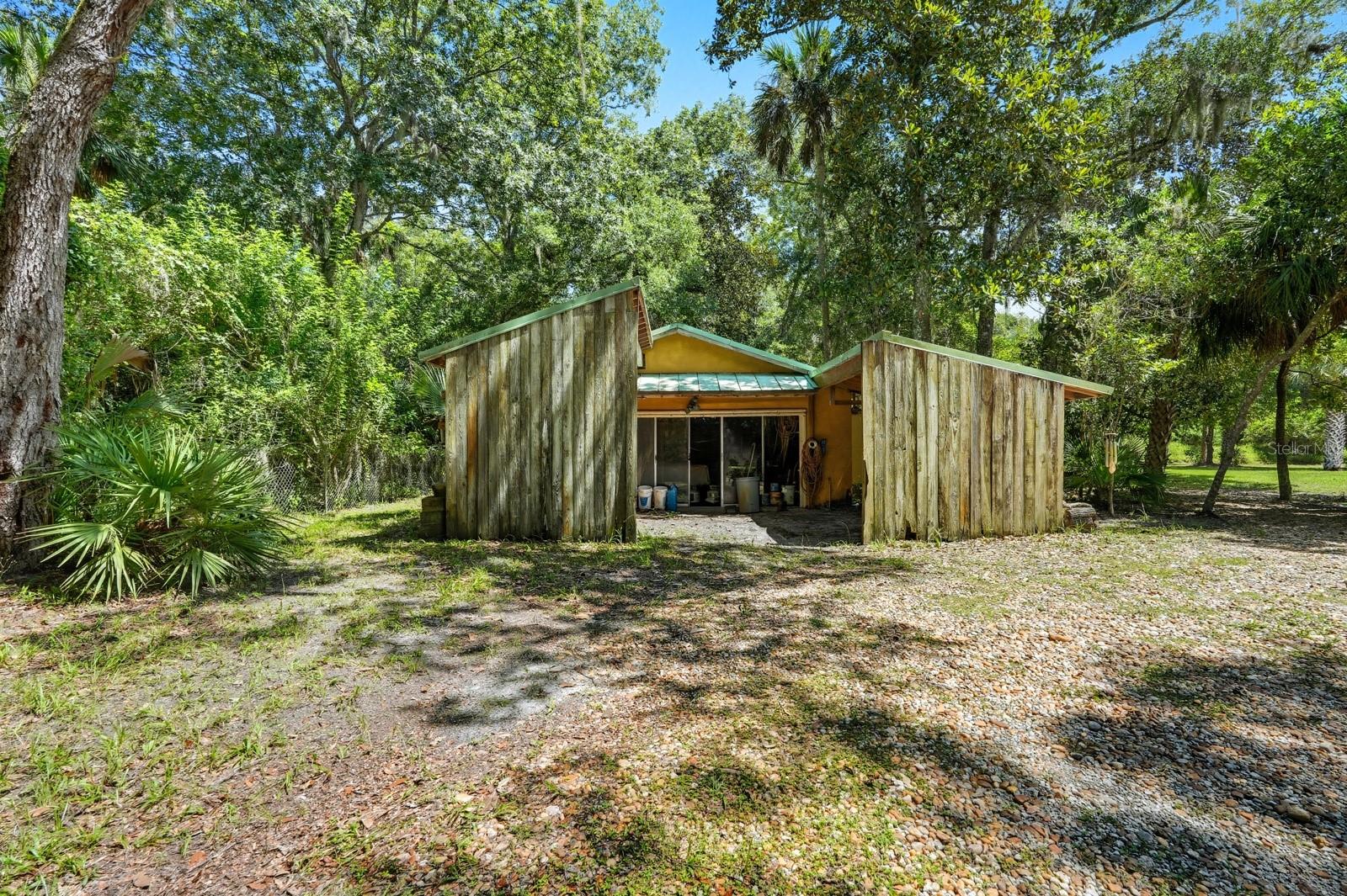 A rare Intracoastal Retreat on 7.38 Acres in Flagler Beach. Welcome to 5911 John Anderson Highway—where Old Florida charm meets lodge-style retreat. Priced almost $100,000 below appraisal this wonderfully unique home is set on 7.38 acres, including 4 acres of protected conservation, this custom-built estate offers the rare luxury of private Intracoastal Waterway access and a lifestyle unlike any other. From the moment you arrive, the setting feels like a sanctuary. Meandering paver walkways shaded by trellises, lush tropical landscaping, and thoughtful sustainability features create an environment that is as serene as it is inspiring. Whether you’re enjoying the greenhouse, tending the gardens, or slipping into the canoe to reach your private moor and sailboat connection, every detail speaks to a life well-lived close to nature. The Main Residence...Crafted by the owner with remarkable attention to detail, the 5-bedroom, 4-bath home is a showcase of artistry and craftsmanship. Highlights include: A dramatic two-story opening with wonderfully designed architectural details. Travertine and bamboo flooring paired with custom woodwork and tongue-and-groove ceilings Wrought iron railings overlooking open living spaces, blending elegance with rustic warmth A metal roof and dual-zone air conditioning for comfort and durability Sustainable Living The estate is solar-assisted with FPL connection. Three wells—two for the homes and one dedicated to irrigation—along with rainwater harvesting barrels support a self-sufficient lifestyle. Even the irrigation system is thoughtfully designed to conserve resources. Resort-Style Amenities The outdoor spaces echo a retreat-like feel: Sparkling inground pool with spa with adjacent shower and composting toilet. Greenhouse for year-round gardening Pottery workshop fully stocked and ready for creativity Storage for tractors, vehicles, and equipment The Guest House (ADU) Perfect for visitors or as an income-producing opportunity, the 2-bedroom, 2-bath guest home offers its own enclosed porch, carport, and private comforts—seamlessly blending into the property’s natural flow. A Lifestyle, Not Just a Home This estate offers more than space and beauty—it offers a way of living. From sunset sails on the Intracoastal to mornings spent in the workshop or gardens, life here is an experience that blends luxury, sustainability, and adventure.