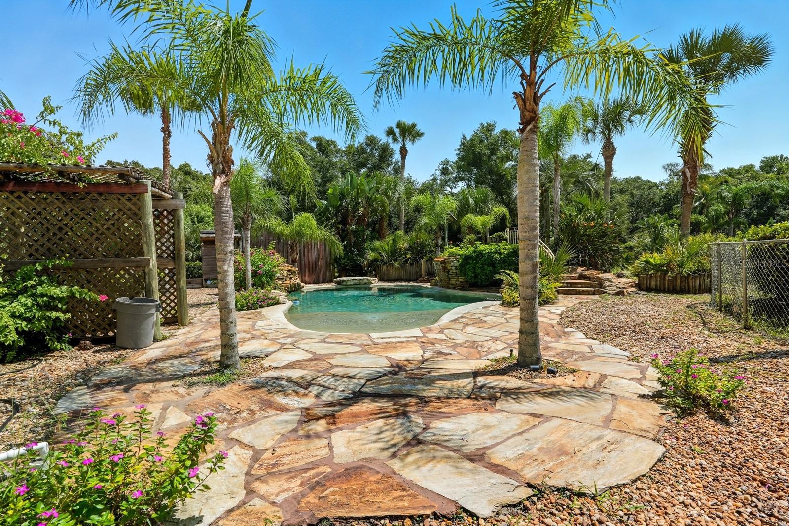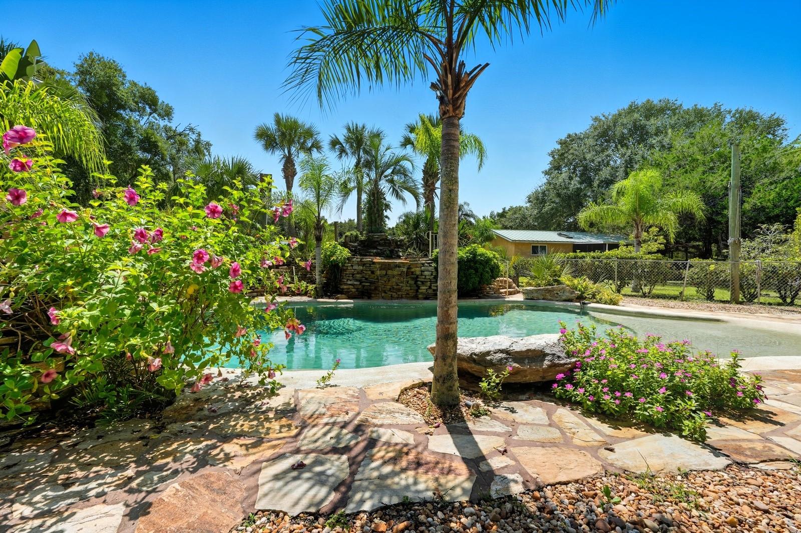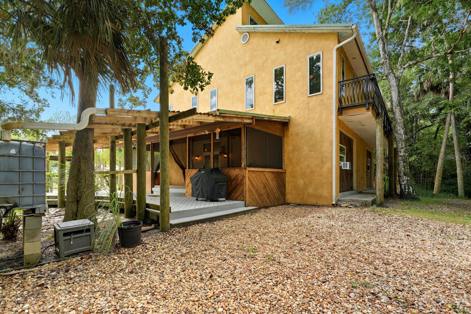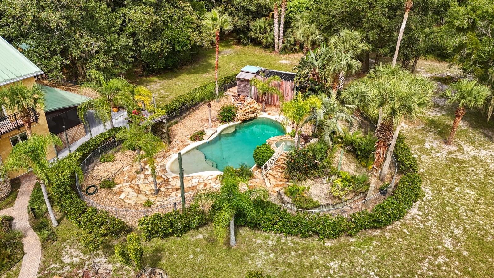 A rare Intracoastal Retreat on 7.38 Acres in Flagler Beach. Welcome to 5911 John Anderson Highway—where Old Florida charm meets lodge-style retreat. Priced almost $100,000 below appraisal this wonderfully unique home is set on 7.38 acres, including 4 acres of protected conservation, this custom-built estate offers the rare luxury of private Intracoastal Waterway access and a lifestyle unlike any other. From the moment you arrive, the setting feels like a sanctuary. Meandering paver walkways shaded by trellises, lush tropical landscaping, and thoughtful sustainability features create an environment that is as serene as it is inspiring. Whether you’re enjoying the greenhouse, tending the gardens, or slipping into the canoe to reach your private moor and sailboat connection, every detail speaks to a life well-lived close to nature. The Main Residence...Crafted by the owner with remarkable attention to detail, the 5-bedroom, 4-bath home is a showcase of artistry and craftsmanship. Highlights include: A dramatic two-story opening with wonderfully designed architectural details. Travertine and bamboo flooring paired with custom woodwork and tongue-and-groove ceilings Wrought iron railings overlooking open living spaces, blending elegance with rustic warmth A metal roof and dual-zone air conditioning for comfort and durability Sustainable Living The estate is solar-assisted with FPL connection. Three wells—two for the homes and one dedicated to irrigation—along with rainwater harvesting barrels support a self-sufficient lifestyle. Even the irrigation system is thoughtfully designed to conserve resources. Resort-Style Amenities The outdoor spaces echo a retreat-like feel: Sparkling inground pool with spa with adjacent shower and composting toilet. Greenhouse for year-round gardening Pottery workshop fully stocked and ready for creativity Storage for tractors, vehicles, and equipment The Guest House (ADU) Perfect for visitors or as an income-producing opportunity, the 2-bedroom, 2-bath guest home offers its own enclosed porch, carport, and private comforts—seamlessly blending into the property’s natural flow. A Lifestyle, Not Just a Home This estate offers more than space and beauty—it offers a way of living. From sunset sails on the Intracoastal to mornings spent in the workshop or gardens, life here is an experience that blends luxury, sustainability, and adventure.