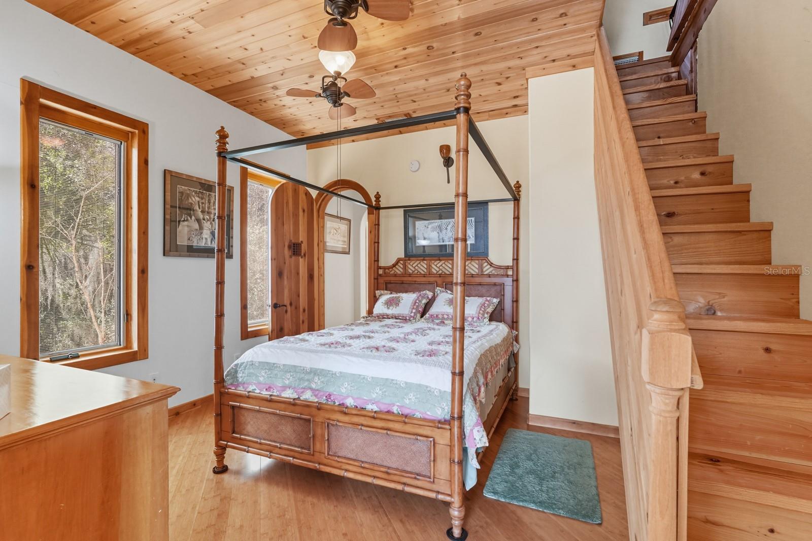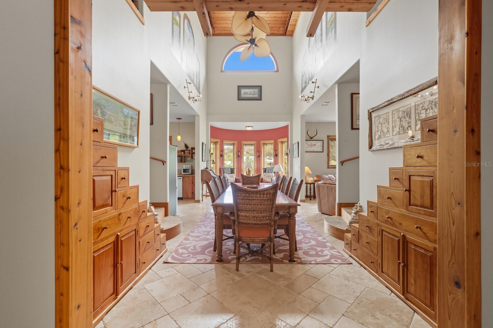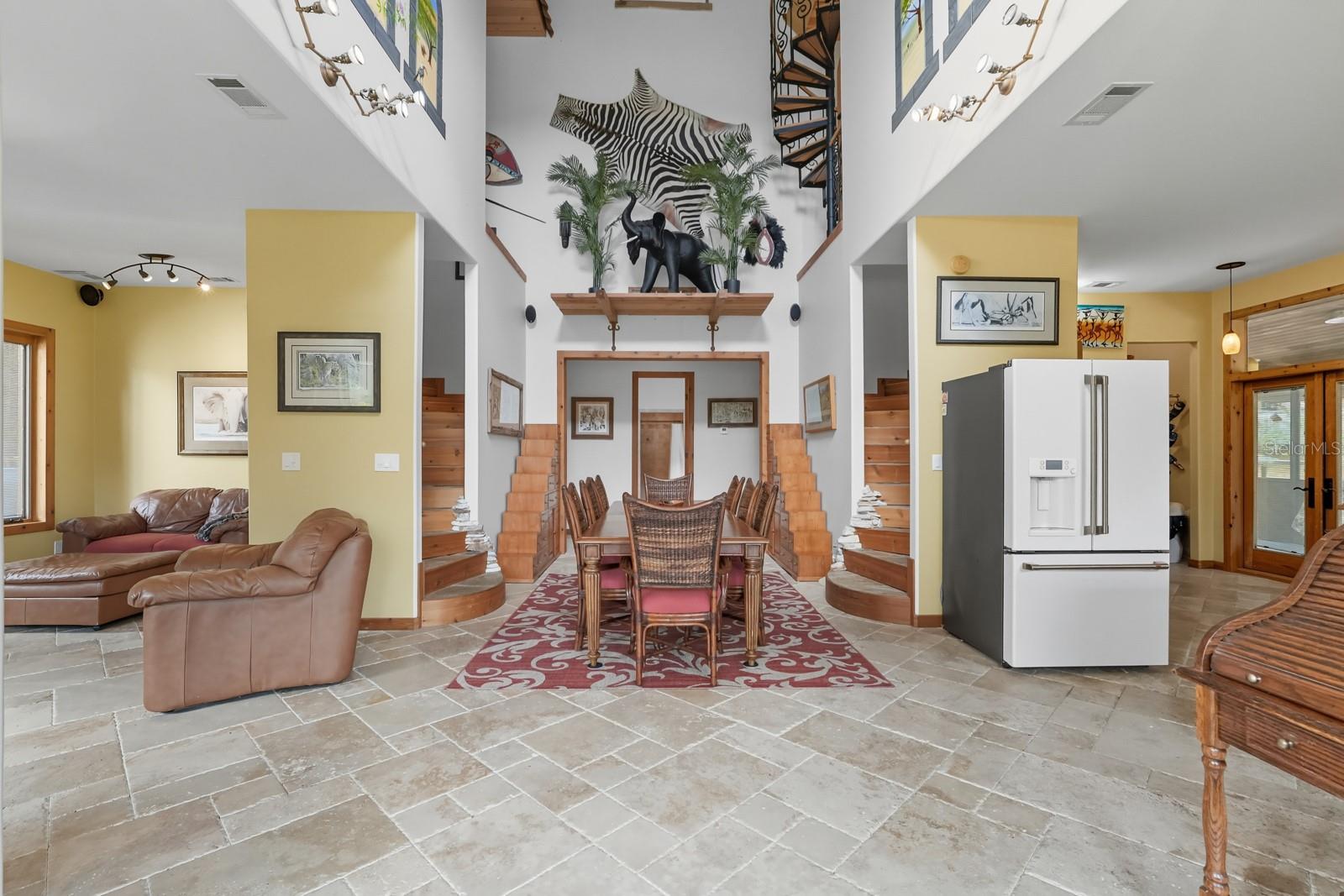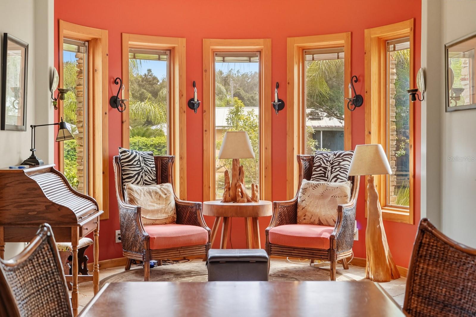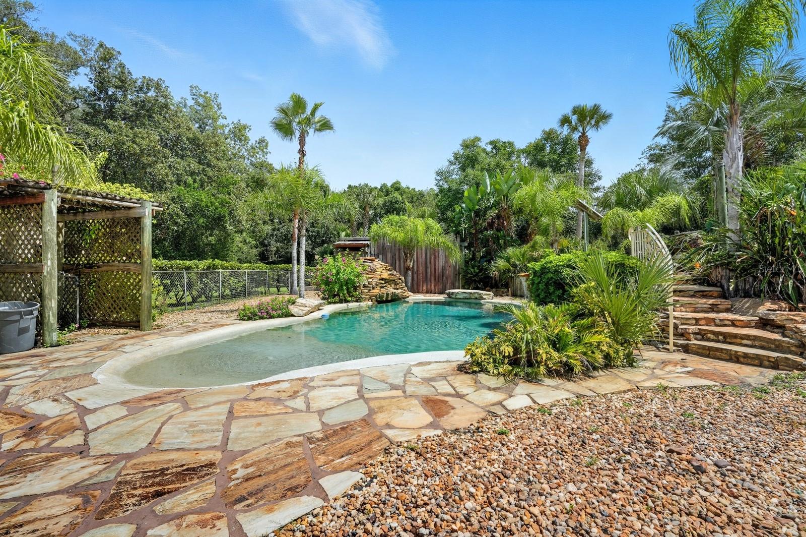 A rare Intracoastal Retreat on 7.38 Acres in Flagler Beach. Welcome to 5911 John Anderson Highway—where Old Florida charm meets lodge-style retreat. Priced almost $100,000 below appraisal this wonderfully unique home is set on 7.38 acres, including 4 acres of protected conservation, this custom-built estate offers the rare luxury of private Intracoastal Waterway access and a lifestyle unlike any other. From the moment you arrive, the setting feels like a sanctuary. Meandering paver walkways shaded by trellises, lush tropical landscaping, and thoughtful sustainability features create an environment that is as serene as it is inspiring. Whether you’re enjoying the greenhouse, tending the gardens, or slipping into the canoe to reach your private moor and sailboat connection, every detail speaks to a life well-lived close to nature. The Main Residence...Crafted by the owner with remarkable attention to detail, the 5-bedroom, 4-bath home is a showcase of artistry and craftsmanship. Highlights include: A dramatic two-story opening with wonderfully designed architectural details. Travertine and bamboo flooring paired with custom woodwork and tongue-and-groove ceilings Wrought iron railings overlooking open living spaces, blending elegance with rustic warmth A metal roof and dual-zone air conditioning for comfort and durability Sustainable Living The estate is solar-assisted with FPL connection. Three wells—two for the homes and one dedicated to irrigation—along with rainwater harvesting barrels support a self-sufficient lifestyle. Even the irrigation system is thoughtfully designed to conserve resources. Resort-Style Amenities The outdoor spaces echo a retreat-like feel: Sparkling inground pool with spa with adjacent shower and composting toilet. Greenhouse for year-round gardening Pottery workshop fully stocked and ready for creativity Storage for tractors, vehicles, and equipment The Guest House (ADU) Perfect for visitors or as an income-producing opportunity, the 2-bedroom, 2-bath guest home offers its own enclosed porch, carport, and private comforts—seamlessly blending into the property’s natural flow. A Lifestyle, Not Just a Home This estate offers more than space and beauty—it offers a way of living. From sunset sails on the Intracoastal to mornings spent in the workshop or gardens, life here is an experience that blends luxury, sustainability, and adventure.