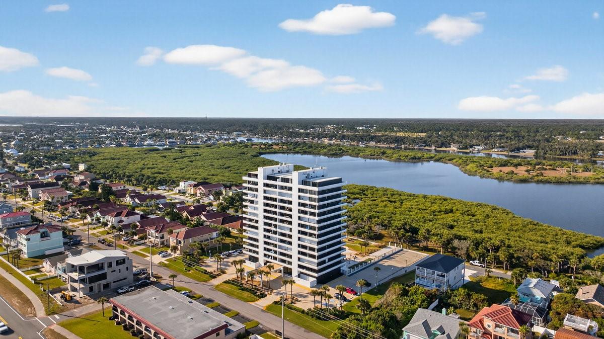 One step inside this stunning 2-bedroom, 2 bath unit, and you will be overwhelmed by the panoramic views of both the Ocean and the Intracoastal Waterway! The lavish interior boasts high-end features such as the custom designed kitchen with two-toned cabinetry, Cambria Quartz countertops, unique backsplash, and fingerprint-resistant Slate appliances. Wall-to-wall sliding glass doors capture uninterrupted vistas of the Atlantic Ocean opening to a 25+ ft balcony that extends your living space and immerses you in the coastal breeze. High-end custom black-out drapes create a comfortable environment. And, for added security, you are well-protected with electric hurricane shutters on all sliders front and back. The primary bedroom has water views, an updated ensuite bathroom, while the oversized second bedroom has access to the balcony with peaceful views. The condo features an additional updated bathroom and a laundry room with washer and dryer included. The setting is perfect to wake up to sunrise and coffee on the balcony with breathtaking views of the Atlantic. Then, enjoy late afternoon cocktails on the back balcony for your private showing of majestic sunsets of the Intracoastal! The Aliki sets the standard for turnkey coastal living with an impressive lineup of amenities: a refreshing residents’ pool, shaded outdoor kitchen with barbecue grills, shuffleboard and bocce courts, a putting green and an inviting social room ideal for gatherings. And best of all, direct beach access! The monthly HOA fees includes, water, sewer, trash, internet, cable, building insurance, exterior maintenance, and the unit also includes a garage parking space and storage unit to keep your beach toys. Built with robust concrete construction and maintained to exceptional standards, the building has passed all mandated inspections and carries an up-to-date milestone report, giving buyers confidence in long term stability. The Aliki Gold Coast is set apart as the only Highrise to grace North Flagler Beach – close to its charming community boasting a Farmer’s Market, special events, quaint restaurants, and shops. Schedule your exclusive showing today!