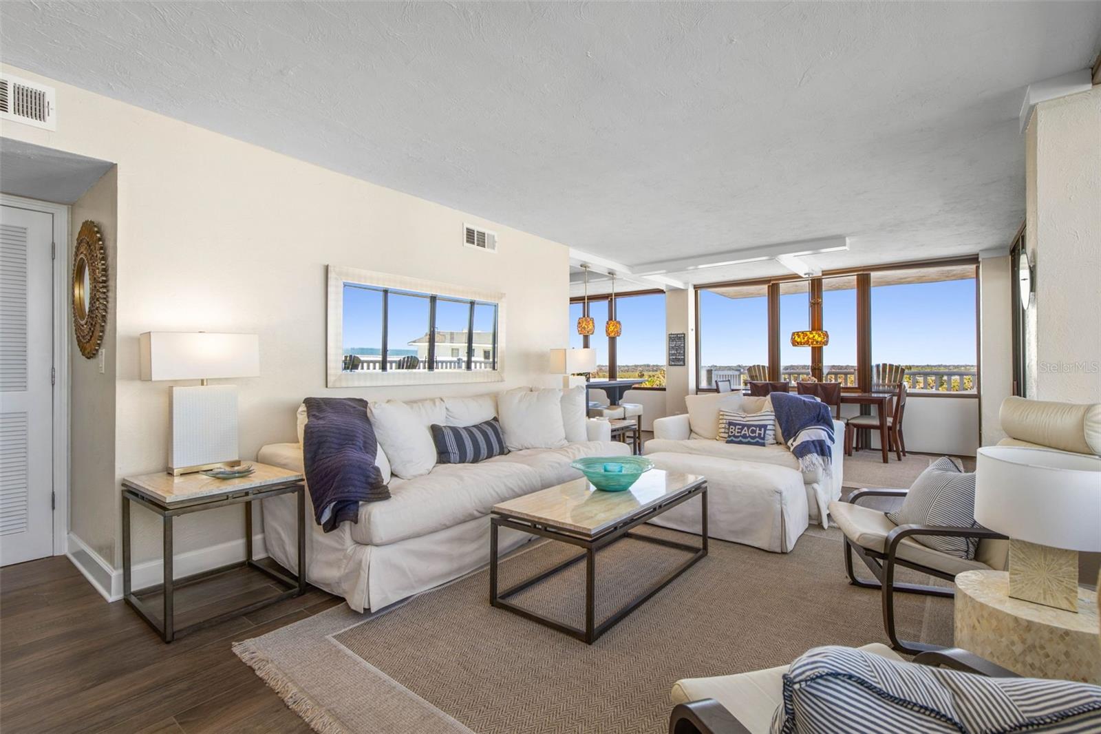 Wake up to breathtaking ocean views from every room in this beautifully updated condo located in the iconic Nautilus, a 9-story oceanfront building in the heart of Flagler Beach. Enjoy sweeping Atlantic Ocean views and Intracoastal Waterway views from the left-side balcony—perfect for soaking in the salt air and sunrise mornings. This fully furnished 2-bedroom, 2-bath residence has been completely updated and features wood-look tile flooring throughout, knockdown ceilings, textured walls, and new interior doors for a clean, modern feel. The stylish kitchen is a true showstopper with a large solid-surface countertop, tiled backsplash, cooktop, double oven and microwave, and ample workspace for entertaining. A separate kitchen sink area and a dedicated laundry room with shelving add both convenience and functionality. Additional highlights include AC replaced in 2022, hot water heater (2010), private storage space, and one garage parking space with an additional storage unit located under the building. Residents of Nautilus enjoy resort-style amenities including a pool, fitness center, shuffleboard, and secure garage parking. Whether you’re enjoying coffee on the balcony, listening to the waves, or taking a stroll on the beach, this condo offers the ultimate coastal lifestyle. Move-in ready, fully furnished, and ready to enjoy—this is oceanfront living at its finest.