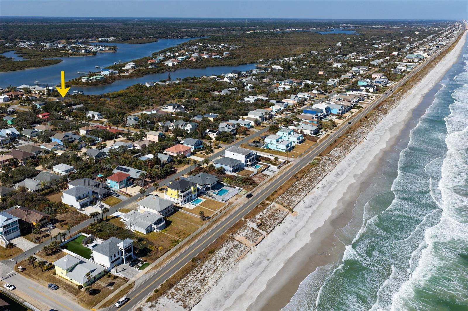 Coastal Luxury with Intracoastal Views in Flagler Beach Welcome to 2643 Lakeshore Drive, a beautifully appointed better than new 3-bedroom, 2.5-bath home offering views of the Intracoastal Waterway and an exceptional blend of coastal style, modern efficiency, and thoughtful upgrades. Tons of storage with a 3 car garage! Ideally located just minutes from the sands of Flagler Beach and just a short drive to Palm Coast; enjoy endless options of shopping, dining, local events, and everyday conveniences, this home delivers the best of relaxed Florida living. Enjoy serene water views of the Intracoastal from the front of the home. The outdoor sitting area is perfect for a relaxing morning with a cup of coffee, or hanging out with friends and family. The home is thoughtfully pre-wired and pre-plumbed for future enhancements including a whole-home generator, outdoor kitchen with gas, spa/hot tub, and outdoor shower — perfect for entertaining or unwinding after a beach day. Built with durability and peace of mind in mind, the property features hurricane-rated windows, doors, roof shingles, and insulated hurricane-rated garage doors with keypads, along with HVAC anti-corrosion protective coating, soffit lighting with timer, and hardwired flood lighting front and back. Inside, refined finishes shine throughout. White oak plank engineered wood flooring anchors the main living areas, while luxury vinyl tile enhances the laundry room and bathrooms. The kitchen is a true showpiece with maple and birch soft-close cabinetry, quartz countertops, cabinet lighting above and below, Frigidaire Gallery stainless steel appliances, a gas 5-burner cooktop, and a wall oven/microwave combo — ideal for both everyday living and entertaining. The home offers a desirable layout with a guest shared en suite, a private primary en suite with walk-in closet, and a unique half bath in the garage complete with central heat and air. Spa-inspired bathrooms include rain shower in the primary suite, hardwired lighted Bluetooth mirrors, teak and hardwood vanities with quartz, granite, and engineered marble tops, and Delta faucets throughout. Custom birch barn doors add a distinctive designer touch. Additional highlights include a 63-gallon hot water heater, Google Nest smart thermostat, aluminum powder-coated railings, WearDeck composite front steps, insulated garage, and an Electrolux washer/dryer tower. Conveniently located right by the home is a public walk way. The views of the water are spectacular and turn a simple walk into sight seeing. This exceptional Flagler Beach home combines quality construction, modern comfort, and an unbeatable coastal location — a great opportunity to enjoy living just moments from the ocean.