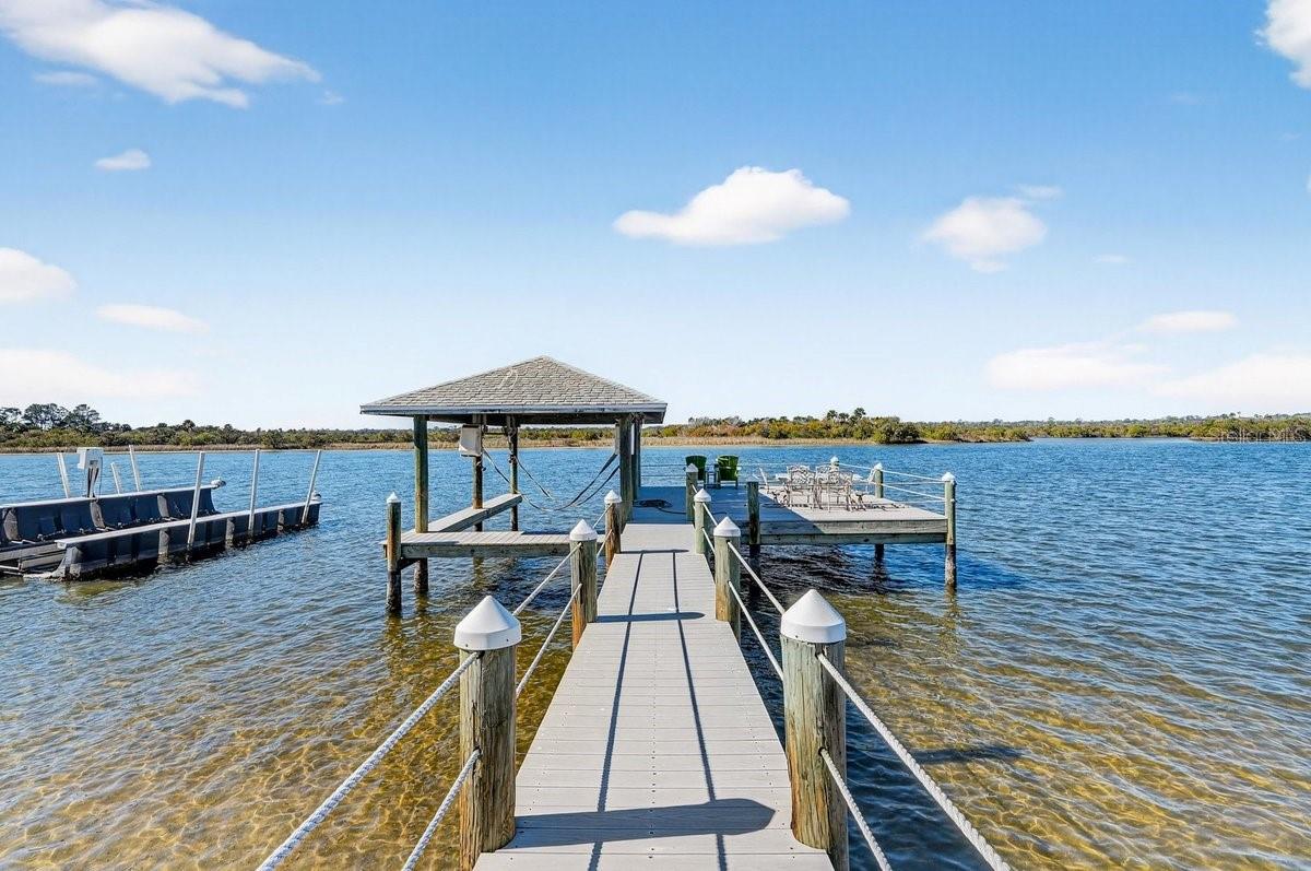 Turnkey waterfront pool home on the Intracoastal Waterway in Flagler Beach with deep-water boating and beach access just blocks away—now featuring a brand-new roof installed February 2026. This beautifully updated property offers 80 feet of direct Intracoastal frontage on a navigable channel, complete with a 10,000-lb boat lift, making it ideal for serious boaters. Professionally decorated and fully remodeled in 2017, the home features an open floor plan with luxury vinyl plank flooring, updated baseboards, crown molding, interior doors, and a redesigned living area with recessed lighting. The new roof (February 2026) adds long-term value and peace of mind, complementing the home’s modern upgrades. The spacious primary suite was completely updated, featuring barn doors and a relaxed coastal aesthetic. This 3-bedroom, 3-bath split floor plan is filled with natural light, enhanced by plantation shutters and expansive windows along the rear of the home that frame stunning Intracoastal views. The kitchen offers granite countertops and a tile backsplash—perfect for entertaining after a day on the water. Enjoy the best of both worlds—spend the day boating on the Intracoastal and walk just three blocks to the beach for surfing or swimming. Bonus opportunity: The contiguous waterfront lot next door is available to purchase with the home as a package, or the home may be purchased separately. The additional lot provides 80 feet of frontage, offering a rare chance to own up to 160 feet of Intracoastal water frontage—ideal for building a custom estate or expanding your waterfront lifestyle. Additional highlights: New roof installed February 2026 Sells fully furnished (excluding personal items) Survey available for the home (no survey available for the lot)