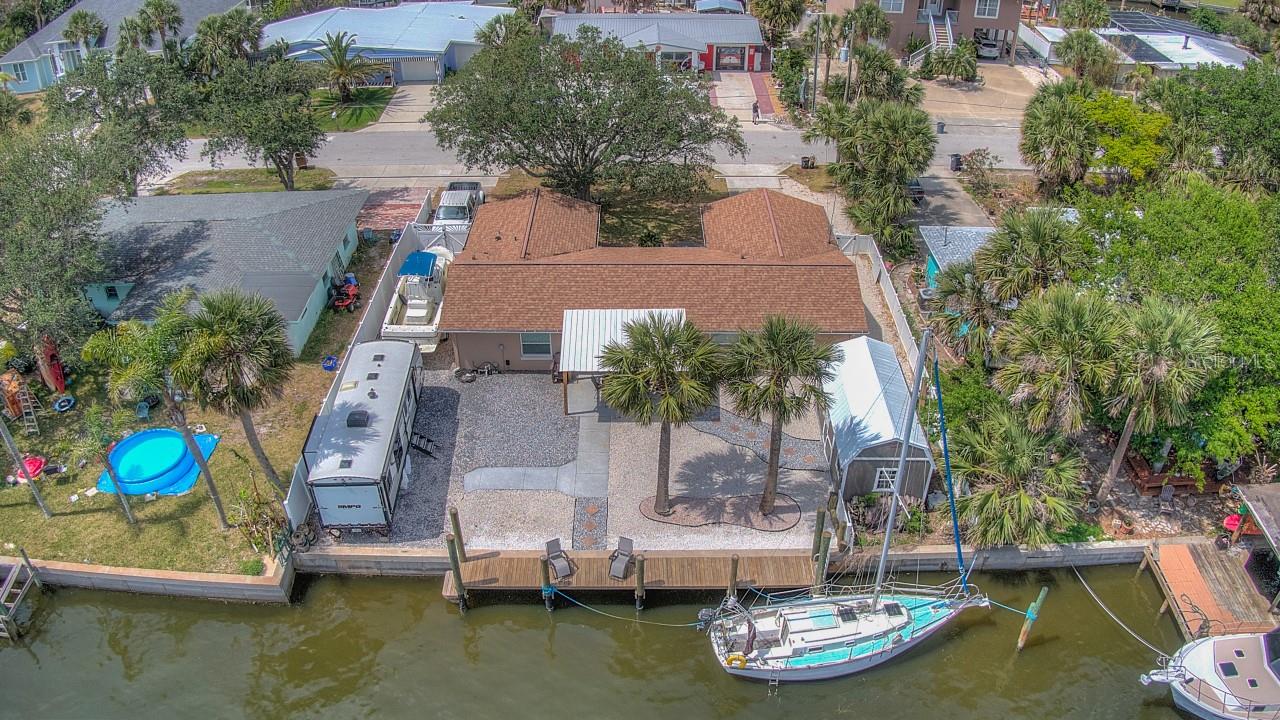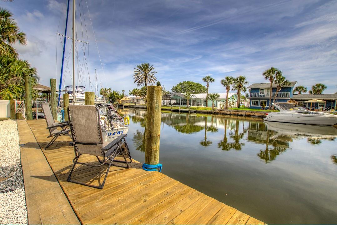 Come and Live the Dream. Beautiful completely redone waterfront canal home is a must see! This open floor plan 2 bedroom 2 bath home has been continously upgraded and improved. New hurricane windows, roof, air conditioner, water heater in 2018. 40' dock less than a year old. New contemporary wood grain tile floors give this home a contemporary beachy appeal. Walk to most of Flagler Beach's famous amenities. Seperate driveways provide room to store a boat, an RV or BOTH!! Use you golf cart to access all of the things you don't want to walk to. Large front porch easily covers a golf cart and leaves the garage for your car and or motorcycle. Granite counter tops in the kitchen and bathrooms as well as updated and upgraded bathroom cabinetry. This home is on one of the area's deepest and widest canals so there is plenty of room to dock your catamaran or large boat. This home is a must see!