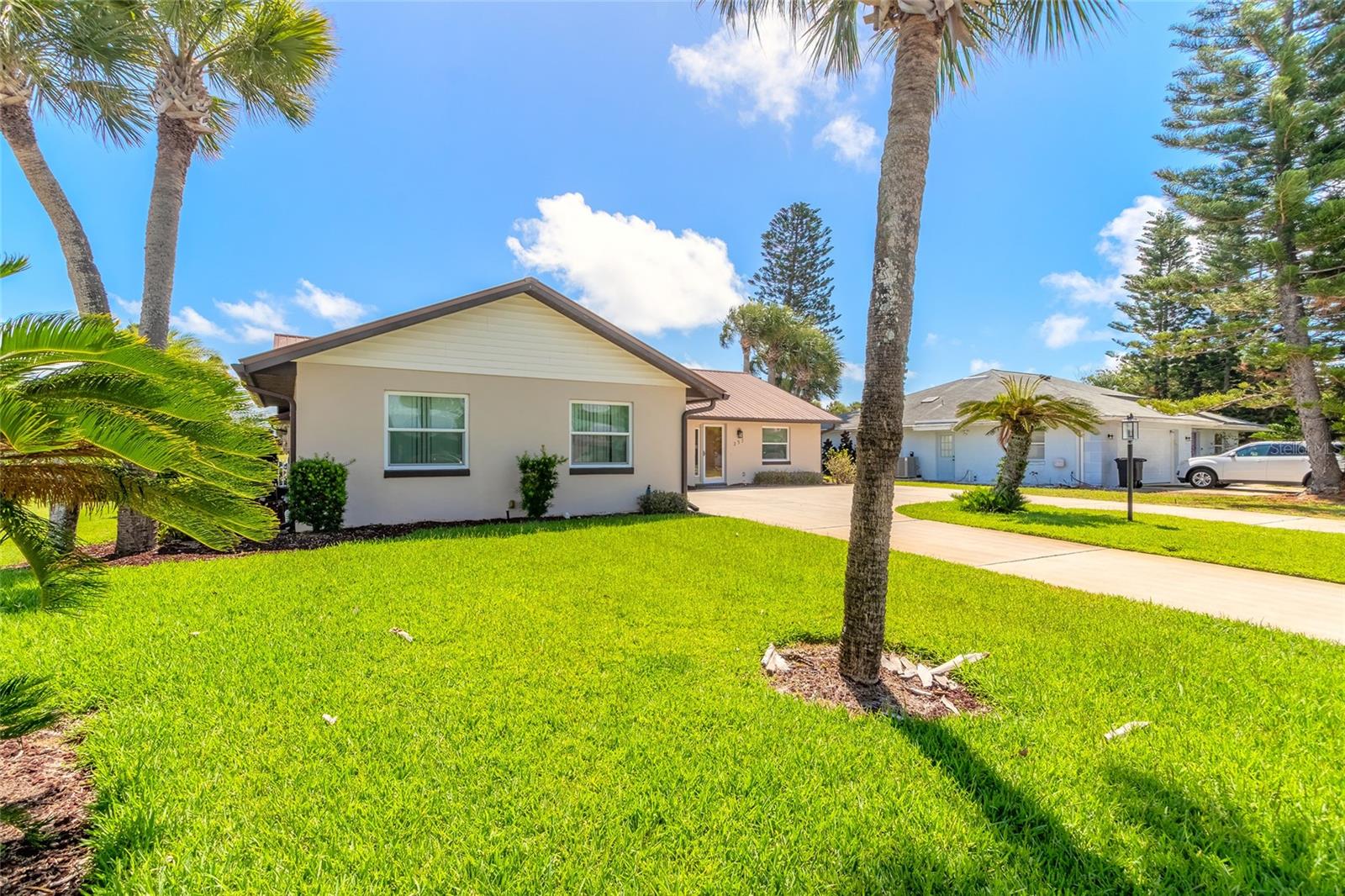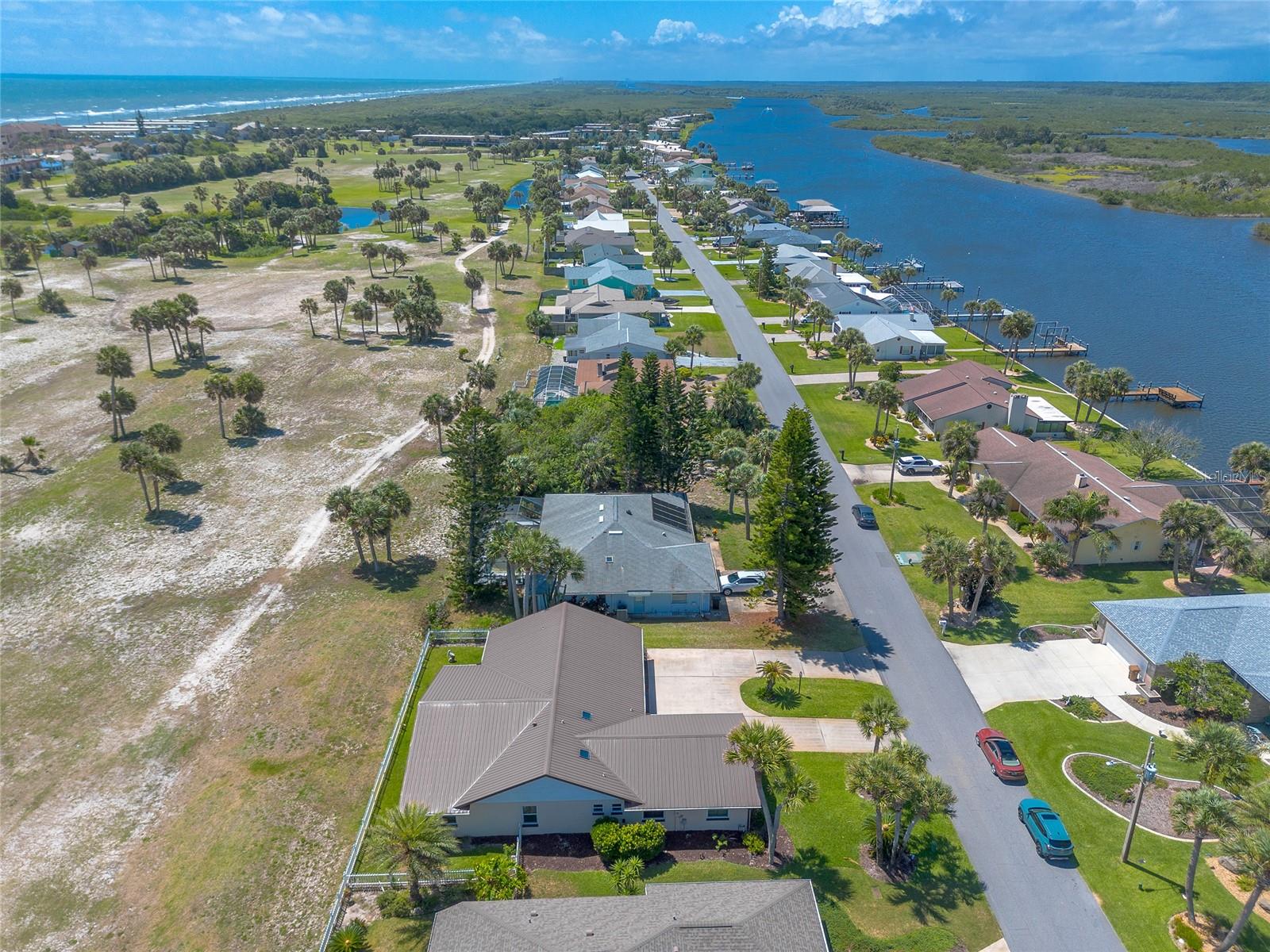 Private enclave home located between ocean and riveri in laid back Flagler Beach. Short walking distance to ocean with easy access, located on a 9 hole golf course offering beautiful, well-maintained views, and the proximity to two state parks that provide opportunities for outdoor activities. This single story 3 bdrm, 2 bath ranch-style home has a metal roof that is durable and long-lasting plus newer Hurricane impact windows and newer reinforced garage door. Underground utilities are a plus. It is well-maintained, reducing immediate upkeep, although some updating may be desired to modernize the space to your taste. NO HOA means fewer restrictions and no fees. This home provides an excellent foundation for a fulfilling lifestyle for an avid golfer, a beach enthusiast, or someone who appreciates the beauty of nature with state parks nearby. A must see!