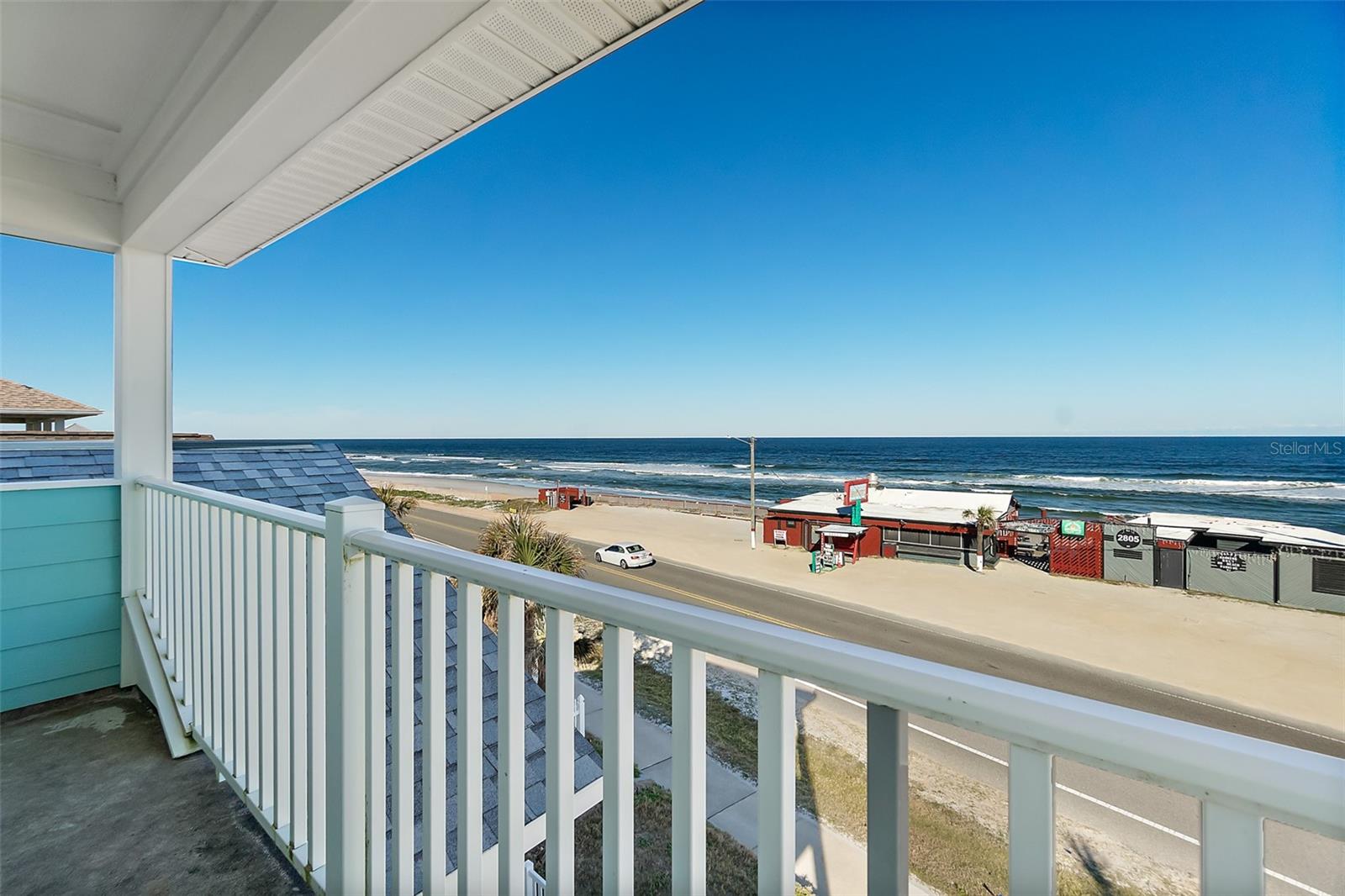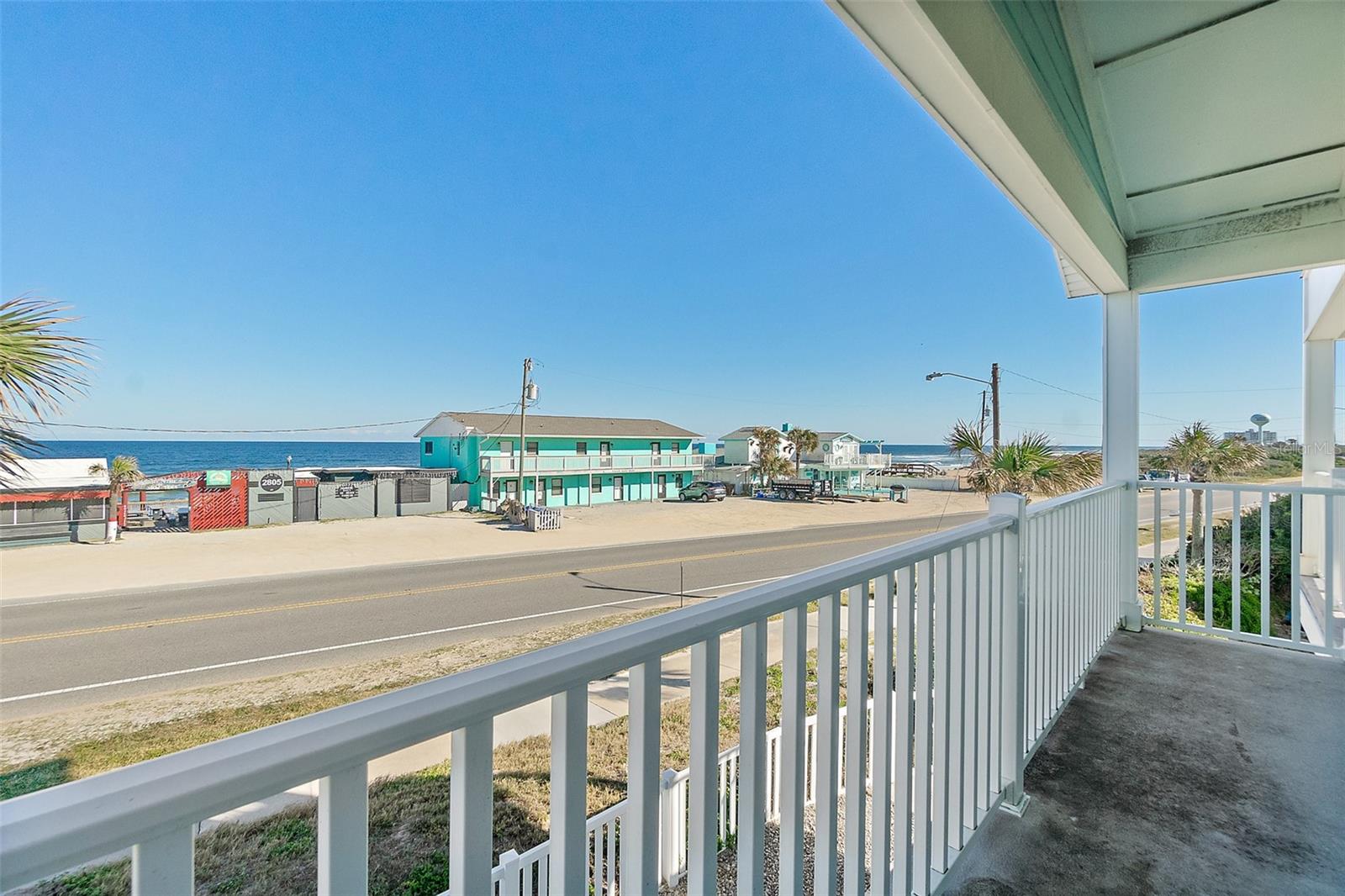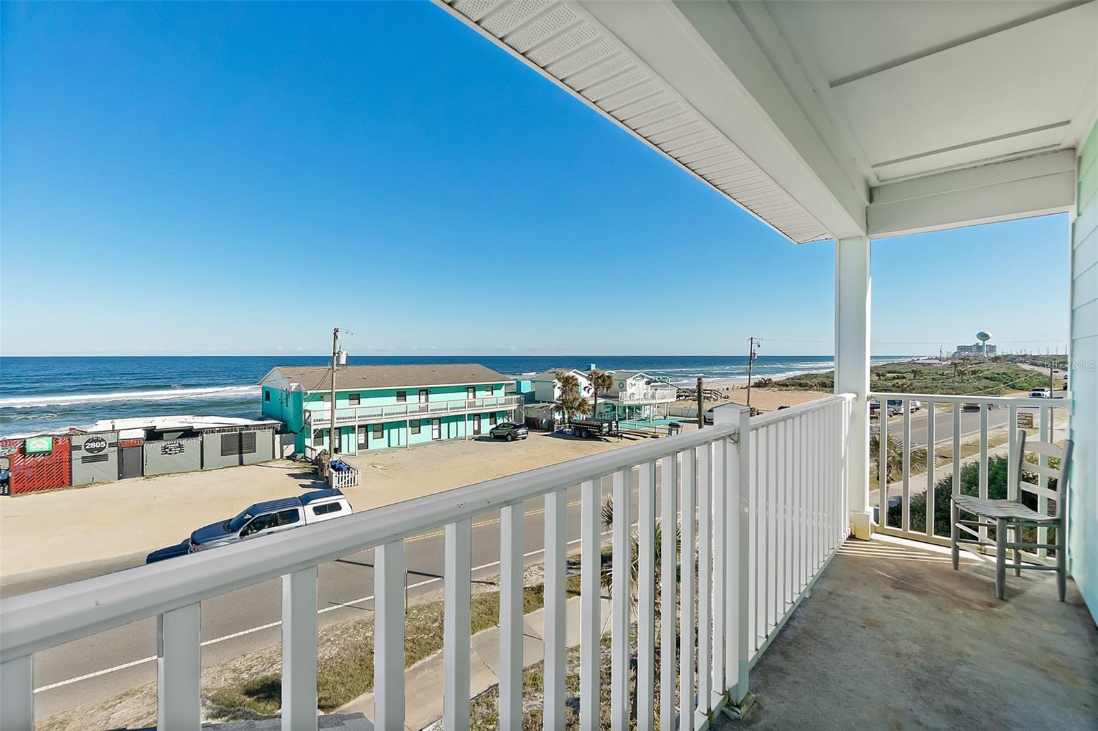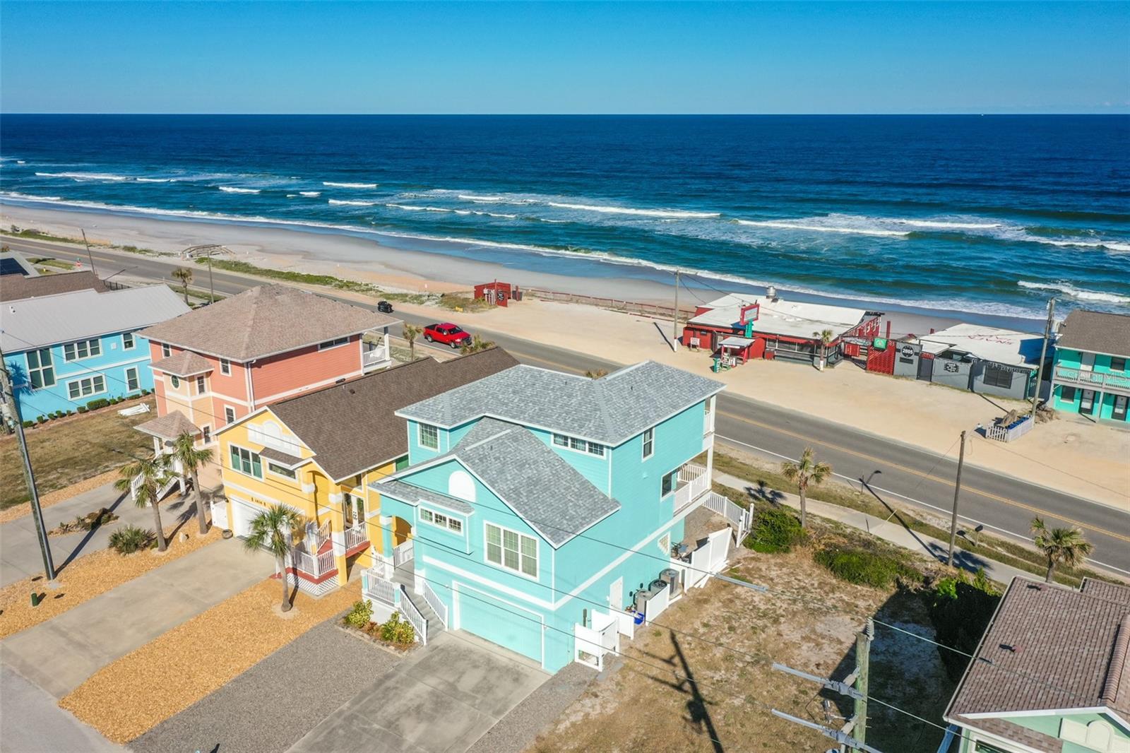 OCEAN VIEWS. Steps from the beach. Spend your days enjoying the cool sea breeze as you watch dolphins play in the surf and soak up the sweet sounds of the rolling ocean waves from the balcony of your beautiful beach house. This 3-story 4 bedroom 3.5 bathroom home offers a fantastic flowing floor plan with large living and dining areas and an array of balconies and decks to enjoy the fresh ocean air. The family cook will adore the spacious kitchen with gorgeous granite counters, stainless steel appliances, breakfast bar, and loads of cabinetry. When night falls, the large master suite on the main floor is an oasis with walk-in closet and ensuite bath boasting a large walk-in shower, soaking tub, and double vanity sinks. The home also features 2 spacious guest bedrooms, and 1 additional full bath on the 3rd floor and the remodeled bottom level features an additional living space with kitchenette, a bedroom, a full bath, separate laundry room and access to the garage. Buyers here will have amazing peace of mind with a NEW roof, and NEW hot water heater. This home makes a great primary home, vacation home, or rental investment since weekly short-term rentals are allowed. This could be an awesome opportunity to live upstairs and rent out the bottom of the home to offset your costs. Best of all, buyers are getting a beautiful beach home in an AMAZING LOCATION. Set just steps from the colorful coquina sands of Flagler Beach, sunset beach strolls will be your nightly norm or walk to High Tides at Snack Jacks to have dinner or a drink. And there's always something fun to do with Flagler's fabulous downtown area and pier just a short drive away, putting great fishing, restaurants, entertainment, festivals, flea markets and fun events at your fingertips!