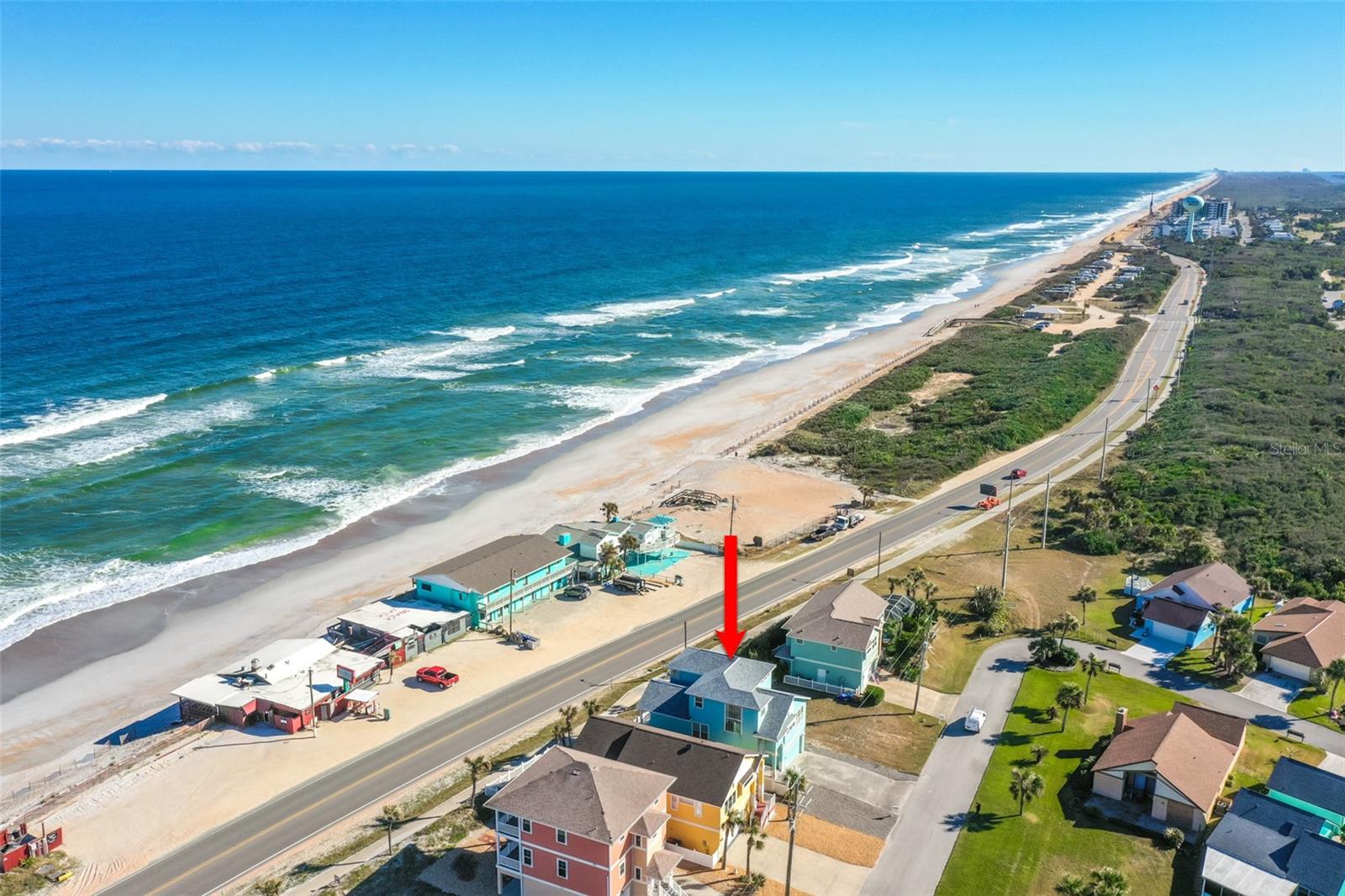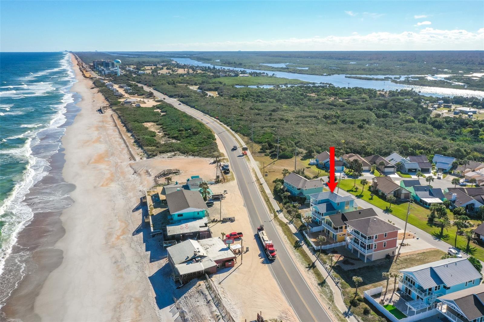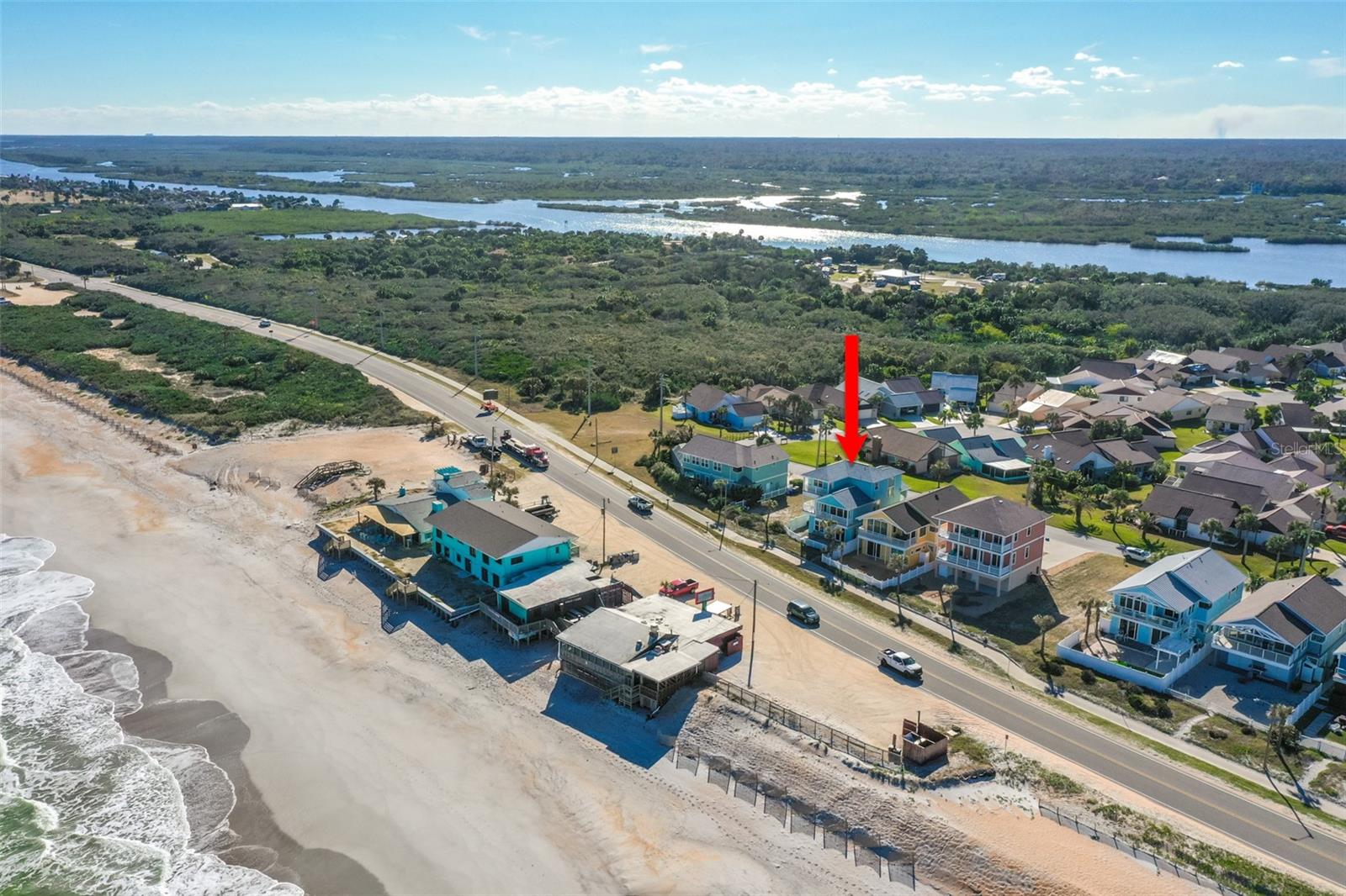 OCEAN VIEWS. Steps from the beach. Spend your days enjoying the cool sea breeze as you watch dolphins play in the surf and soak up the sweet sounds of the rolling ocean waves from the balcony of your beautiful beach house. This 3-story 4 bedroom 3.5 bathroom home offers a fantastic flowing floor plan with large living and dining areas and an array of balconies and decks to enjoy the fresh ocean air. The family cook will adore the spacious kitchen with gorgeous granite counters, stainless steel appliances, breakfast bar, and loads of cabinetry. When night falls, the large master suite on the main floor is an oasis with walk-in closet and ensuite bath boasting a large walk-in shower, soaking tub, and double vanity sinks. The home also features 2 spacious guest bedrooms, and 1 additional full bath on the 3rd floor and the remodeled bottom level features an additional living space with kitchenette, a bedroom, a full bath, separate laundry room and access to the garage. Buyers here will have amazing peace of mind with a NEW roof, and NEW hot water heater. This home makes a great primary home, vacation home, or rental investment since weekly short-term rentals are allowed. This could be an awesome opportunity to live upstairs and rent out the bottom of the home to offset your costs. Best of all, buyers are getting a beautiful beach home in an AMAZING LOCATION. Set just steps from the colorful coquina sands of Flagler Beach, sunset beach strolls will be your nightly norm or walk to High Tides at Snack Jacks to have dinner or a drink. And there's always something fun to do with Flagler's fabulous downtown area and pier just a short drive away, putting great fishing, restaurants, entertainment, festivals, flea markets and fun events at your fingertips!