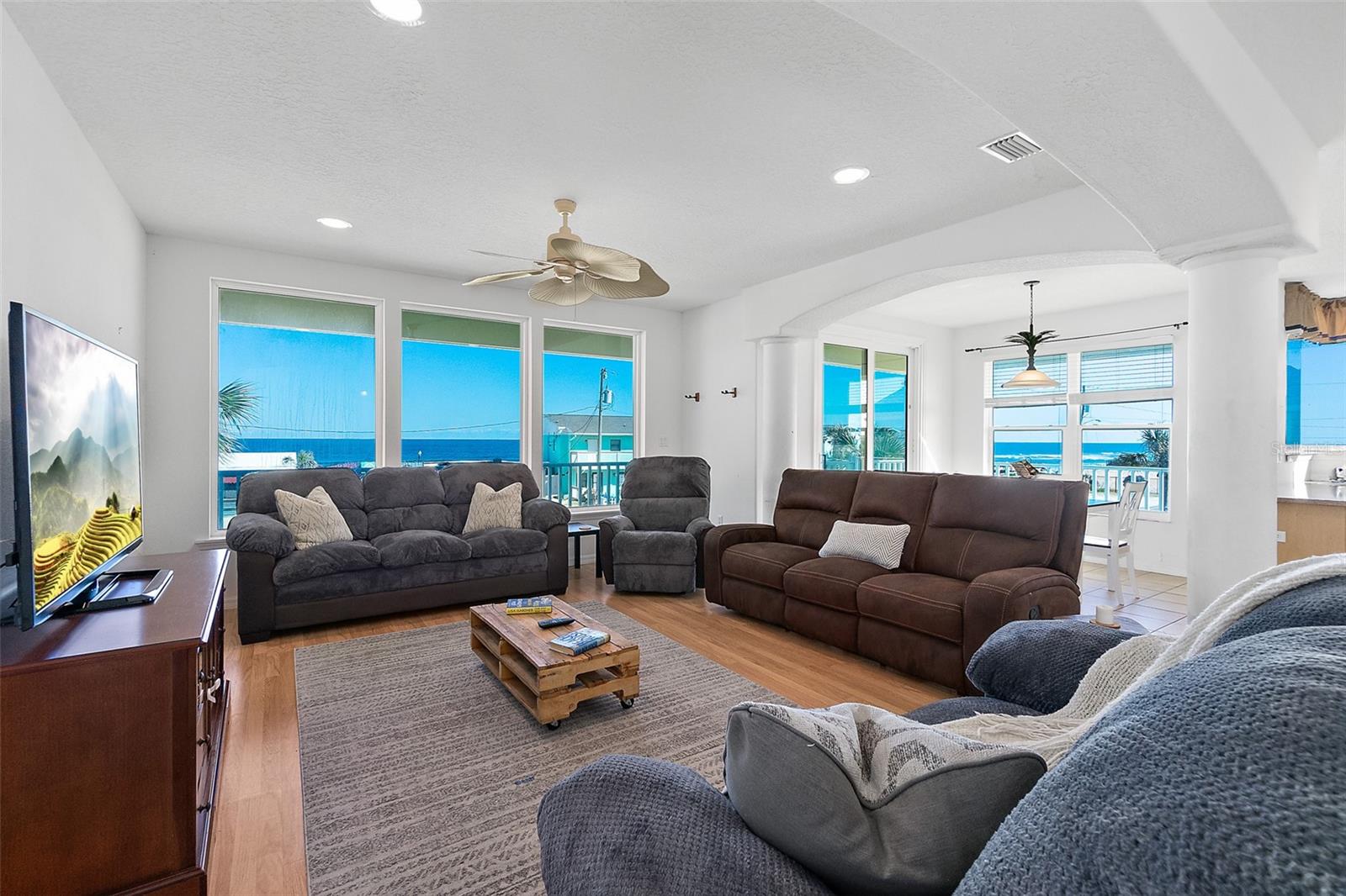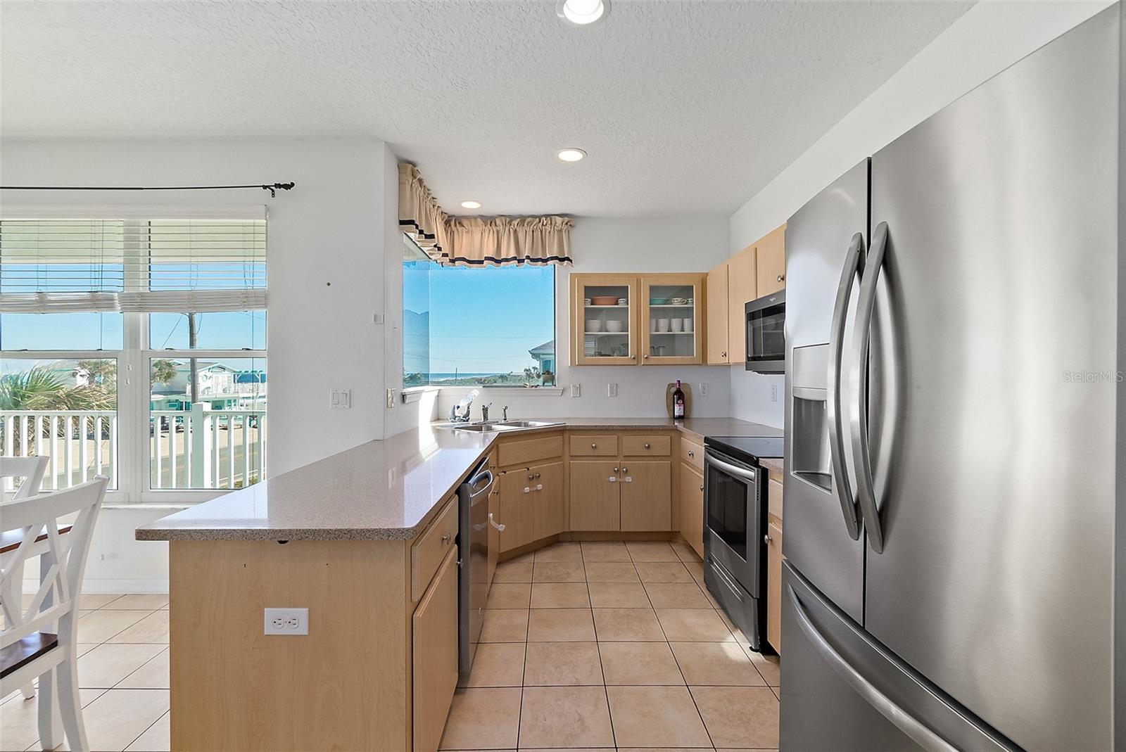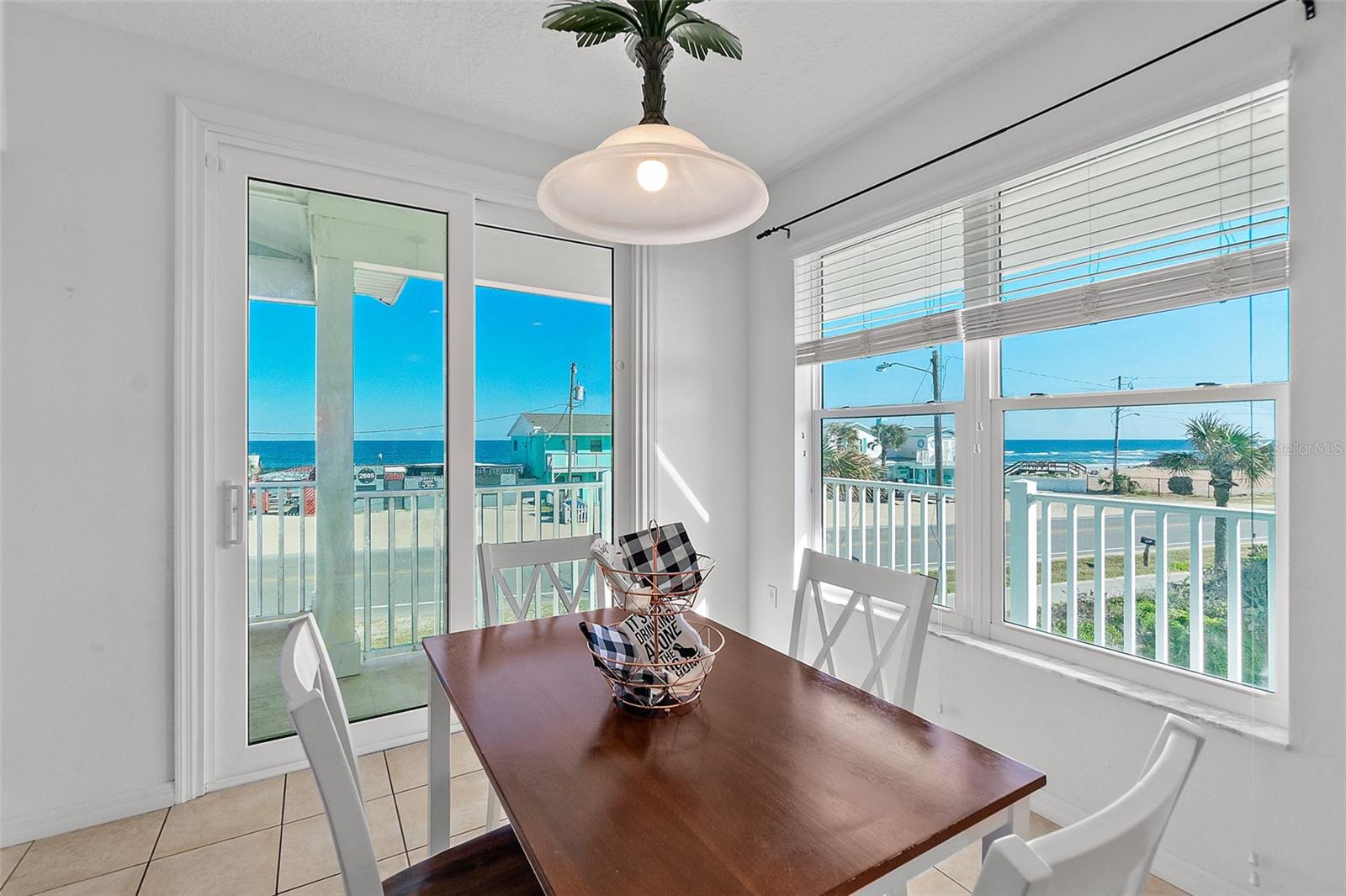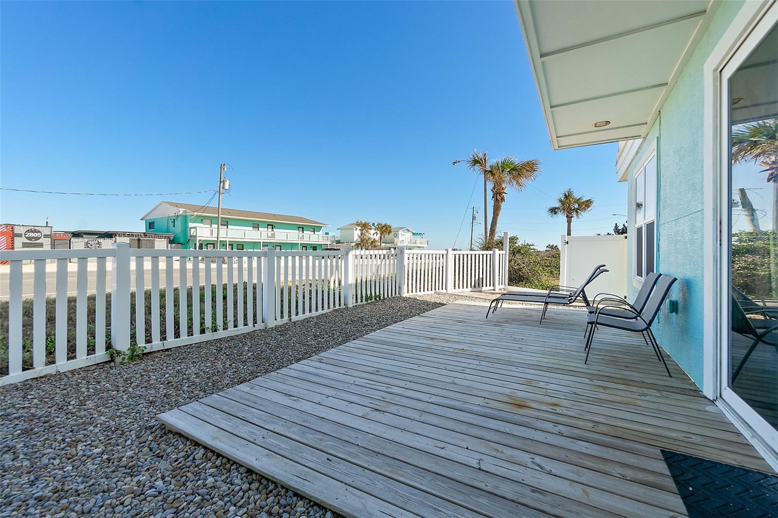 OCEAN VIEWS. Steps from the beach. Spend your days enjoying the cool sea breeze as you watch dolphins play in the surf and soak up the sweet sounds of the rolling ocean waves from the balcony of your beautiful beach house. This 3-story 4 bedroom 3.5 bathroom home offers a fantastic flowing floor plan with large living and dining areas and an array of balconies and decks to enjoy the fresh ocean air. The family cook will adore the spacious kitchen with gorgeous granite counters, stainless steel appliances, breakfast bar, and loads of cabinetry. When night falls, the large master suite on the main floor is an oasis with walk-in closet and ensuite bath boasting a large walk-in shower, soaking tub, and double vanity sinks. The home also features 2 spacious guest bedrooms, and 1 additional full bath on the 3rd floor and the remodeled bottom level features an additional living space with kitchenette, a bedroom, a full bath, separate laundry room and access to the garage. Buyers here will have amazing peace of mind with a NEW roof, and NEW hot water heater. This home makes a great primary home, vacation home, or rental investment since weekly short-term rentals are allowed. This could be an awesome opportunity to live upstairs and rent out the bottom of the home to offset your costs. Best of all, buyers are getting a beautiful beach home in an AMAZING LOCATION. Set just steps from the colorful coquina sands of Flagler Beach, sunset beach strolls will be your nightly norm or walk to High Tides at Snack Jacks to have dinner or a drink. And there's always something fun to do with Flagler's fabulous downtown area and pier just a short drive away, putting great fishing, restaurants, entertainment, festivals, flea markets and fun events at your fingertips!