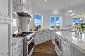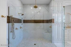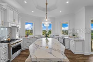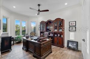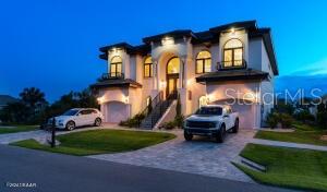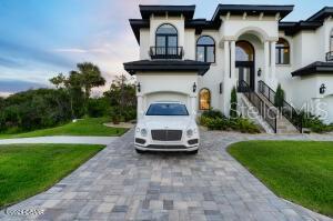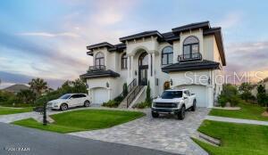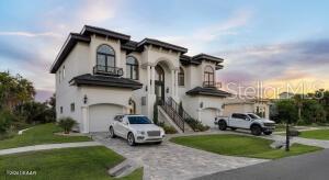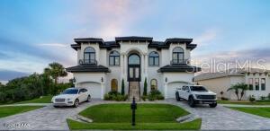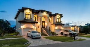 Imagine living in a home where every detail is meticulously crafted to provide the ultimate in luxury and comfort? Welcome to 801 N. Flagler Avenue, a stunning custom-built residence completed in January 2024. Located on a deep-water canal in picturesque Flagler Beach, this 3-bedroom, 3-bathroom home with a 4-car air-conditioned garage is the epitome of modern living. As you step through the double leaded glass doors, you are greeted by a porcelain tile foyer with soaring ceilings and modern light fixtures, setting the stage for the elegance that lies within. Ascend a few steps to discover the open floor plan of the upper floor, where no attention to detail has been spared. The spacious living room with an electric fireplace offers a the perfect spot to entertain guests and easily transitions to the covered, outdoor balcony offering see-through railings, outdoor speakers, and breathtaking views of the canal. The heart of the home is the chef-inspired kitchen, equipped with GE Monogram Energy Star appliances, quartz countertops and a large center island with electrical pop-ups. With 42" upper cabinets, a 6-burner gas cooktop, electric oven, a microwave drawer, soft-close cabinets with pull-out shelving and a 9' x 8.5' pantry, this kitchen is both beautiful and functional. The butler's pantry, featuring a side-by-side fridge, automatic ice drawer, and filtered water pitcher, opens into the formal dining room. The grand primary suite is a sanctuary of its own, featuring a massive walk-in closet and an opulent ensuite bathroom. Relax in the soaking tub, enjoy the spacious glassed-in shower, and appreciate the separate water closet and his-and-her vanities. Kohler and Savoy House fixtures add a touch of elegance, and built-in bidets in all commodes ensure comfort and convenience. Rounding out the remainder of the upper floor, you will find a sizable guest bedroom and second full bathroom with a walk-in glass shower and pedestal vanity. The laundry room, equipped with two lazy Susans, a built-in iron, sink, and stacking washer and dryer, adds practical convenience to your daily routine. Lastly, there is an office with east facing windows that flood the room with natural light. The lower level includes a versatile bonus storage/craft room, a cozy family room/gym, a third full bathroom, and a third bedroom currently used as a secondary office. The covered outdoor patio provides additional space for leisure and relaxation. Stroll along a pavered walkway to your private boathouse. The 6' wrought iron rear-yard fence with locking gates ensures your yard is your own private sanctuary. Additional highlights include porcelain tile wood-look floors throughout, back-lit custom tray ceilings, modern crown moldings, tall baseboards, and picture frame molding on several walls. Hurricane-impact doors, a 38kw Honeywell whole house generator fed by a 500 gallon propane tank and hurricane-impact roll-out casement windows provide peace of mind and security while retaining costal charm. Smart features include programmable thermostats, two tankless gas hot water heaters, garage door lifts and a security system featuring six outdoor cameras. With a four car air conditioned garage with an interior safe room and recessed LED light fixtures, you may never venture anywhere else. This home truly offers the perfect combination of luxury, comfort, size and location. Based on contractual negotiation, seller is willing to provide a credit to install an elevator.