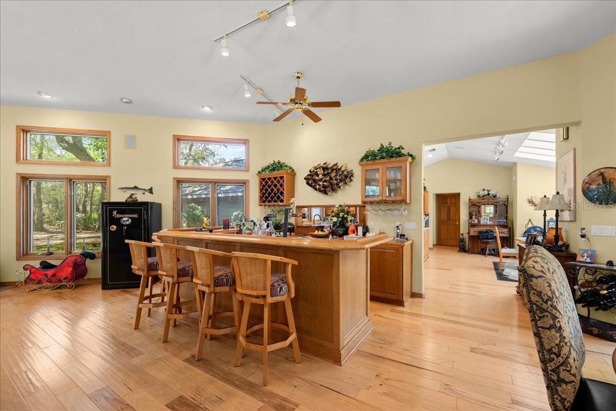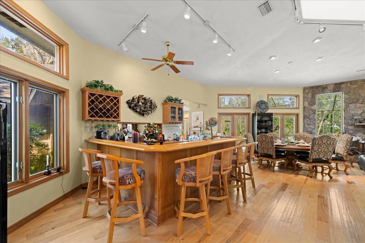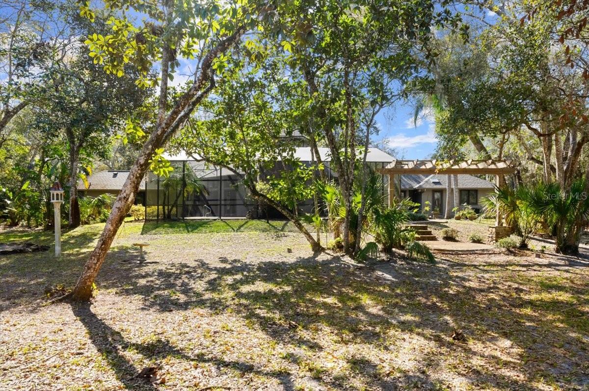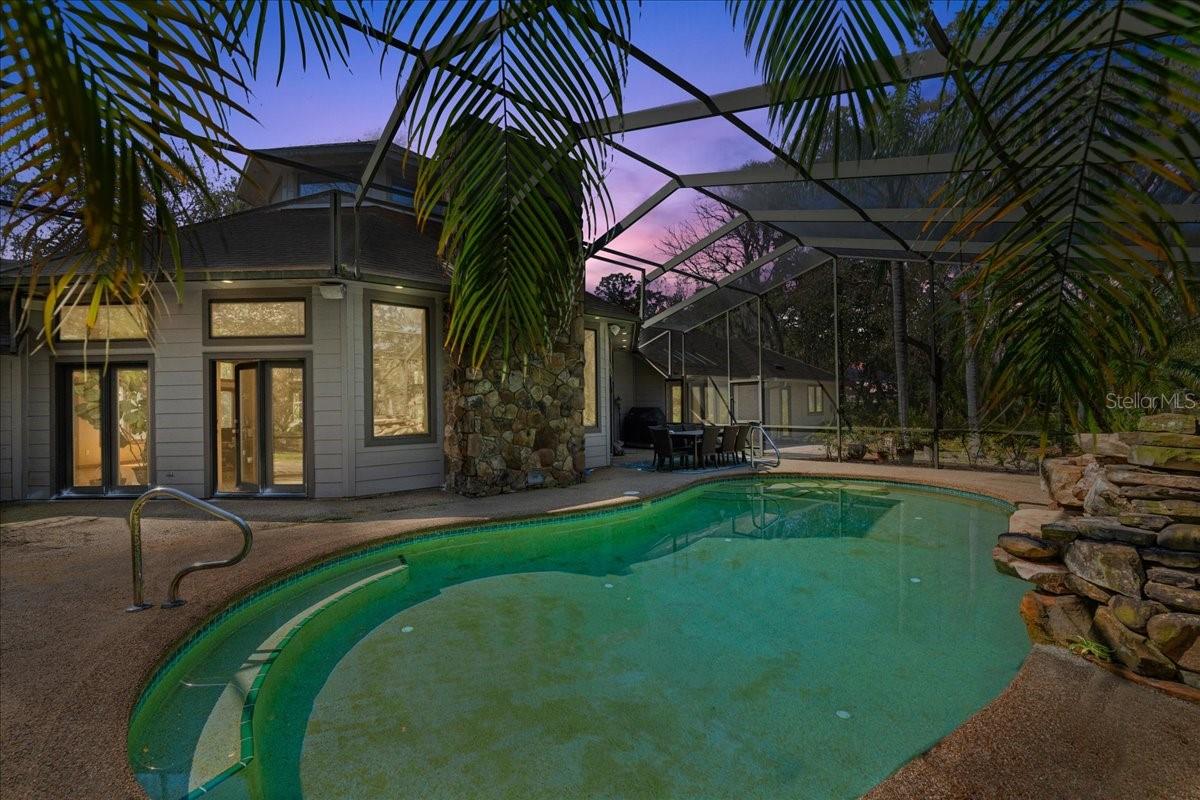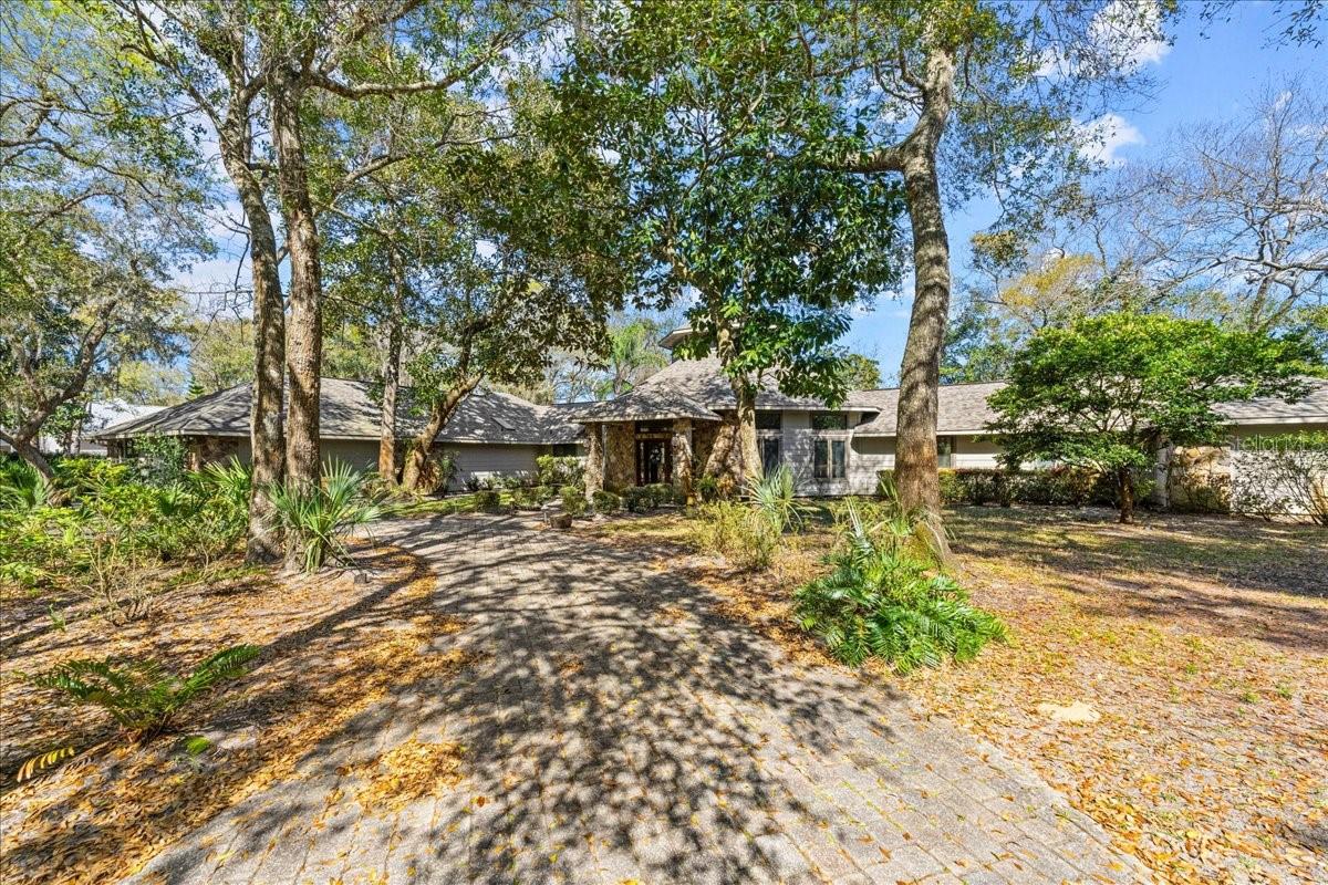 Escape to your private retreat in Flagler Beach! This custom-built, one-owner home sits on 11.5 acres that backs to canal that runs through marsh offering ultimate tranquility and a connection with nature. Located Enjoy the peaceful surroundings from both the front and back patios, or take a dip in the screened-in inground swimming pool. Inside, the grand main living area impresses with soaring 26' ceilings, tongue-and-groove wood floors, and an abundance of natural light from expansive windows. The open floor plan includes a living room with a wood-burning fireplace, a dining area, and a bar area perfect for entertaining. The spacious kitchen features a center island, breakfast nook, and ample cabinet and counter space. The extra-large master suite is a true retreat, boasting two walk-in closets and a private master bath with a stand-up shower and garden tub. Each of the three bedrooms has its own private bathroom, offering ultimate convenience and privacy for family and guests. Additional highlights include an inside laundry room and a 3-car garage. Nestled in a private location, this stunning home offers the perfect blend of nature and comfort, all just minutes from Flagler Beach. Square footage received from tax rolls. All information recorded in the MLS intended to be accurate but cannot be guaranteed.