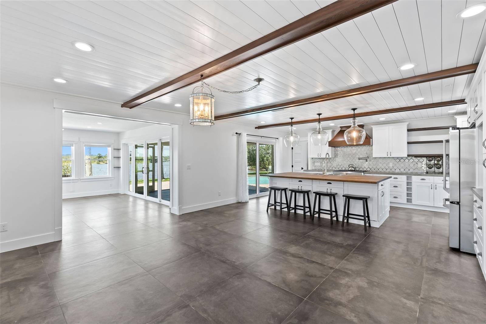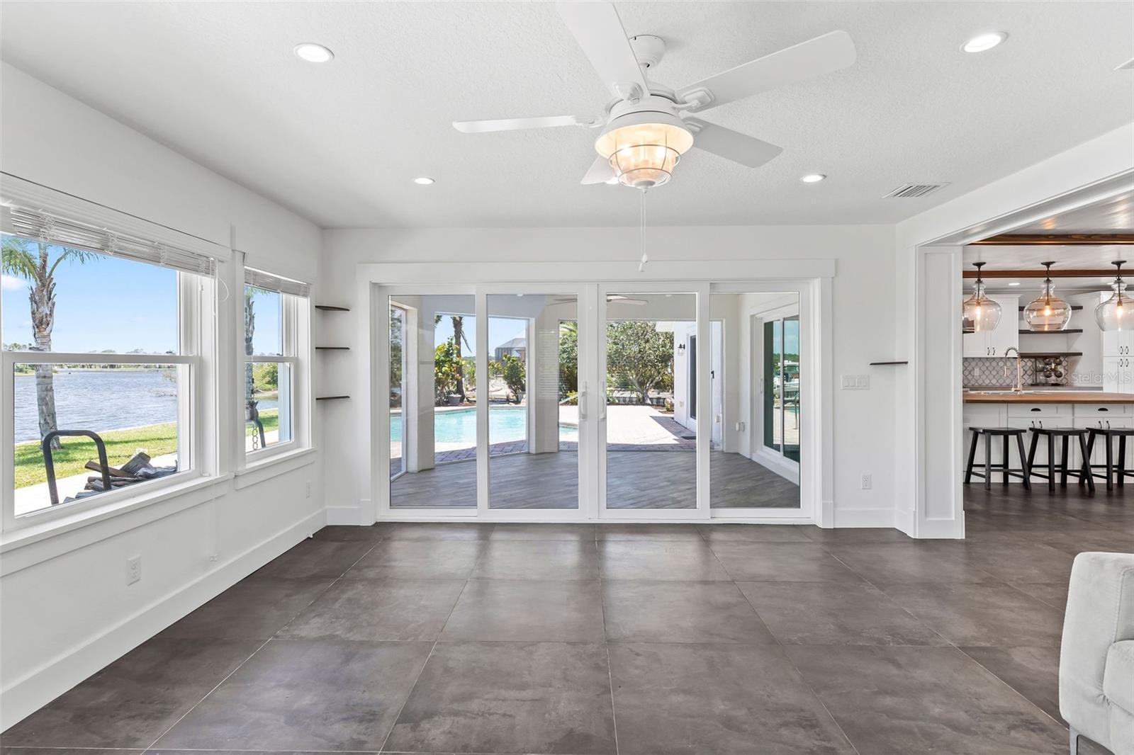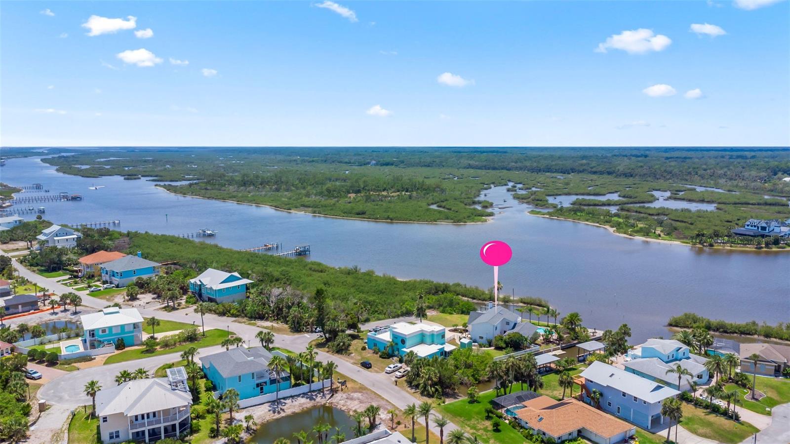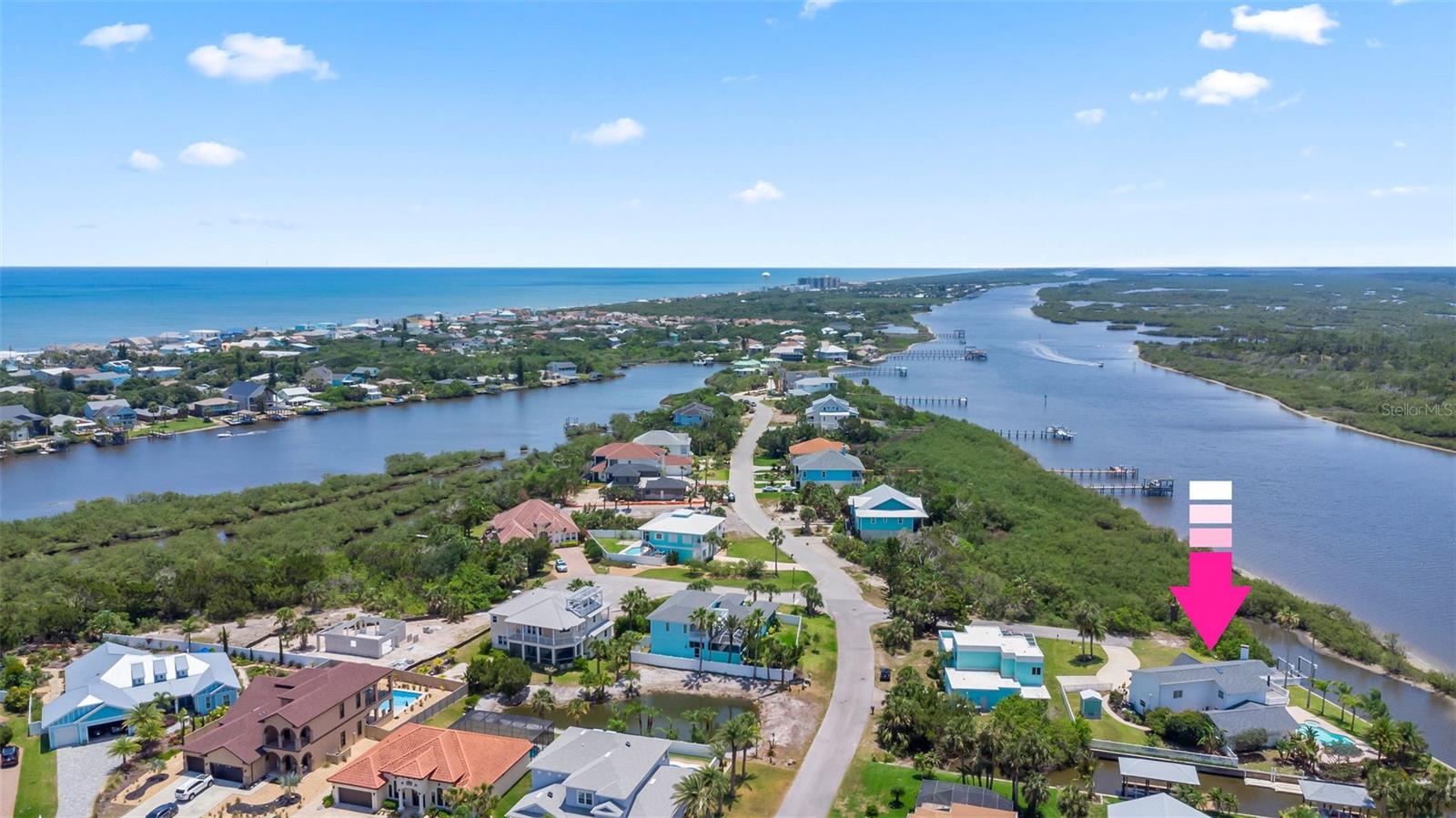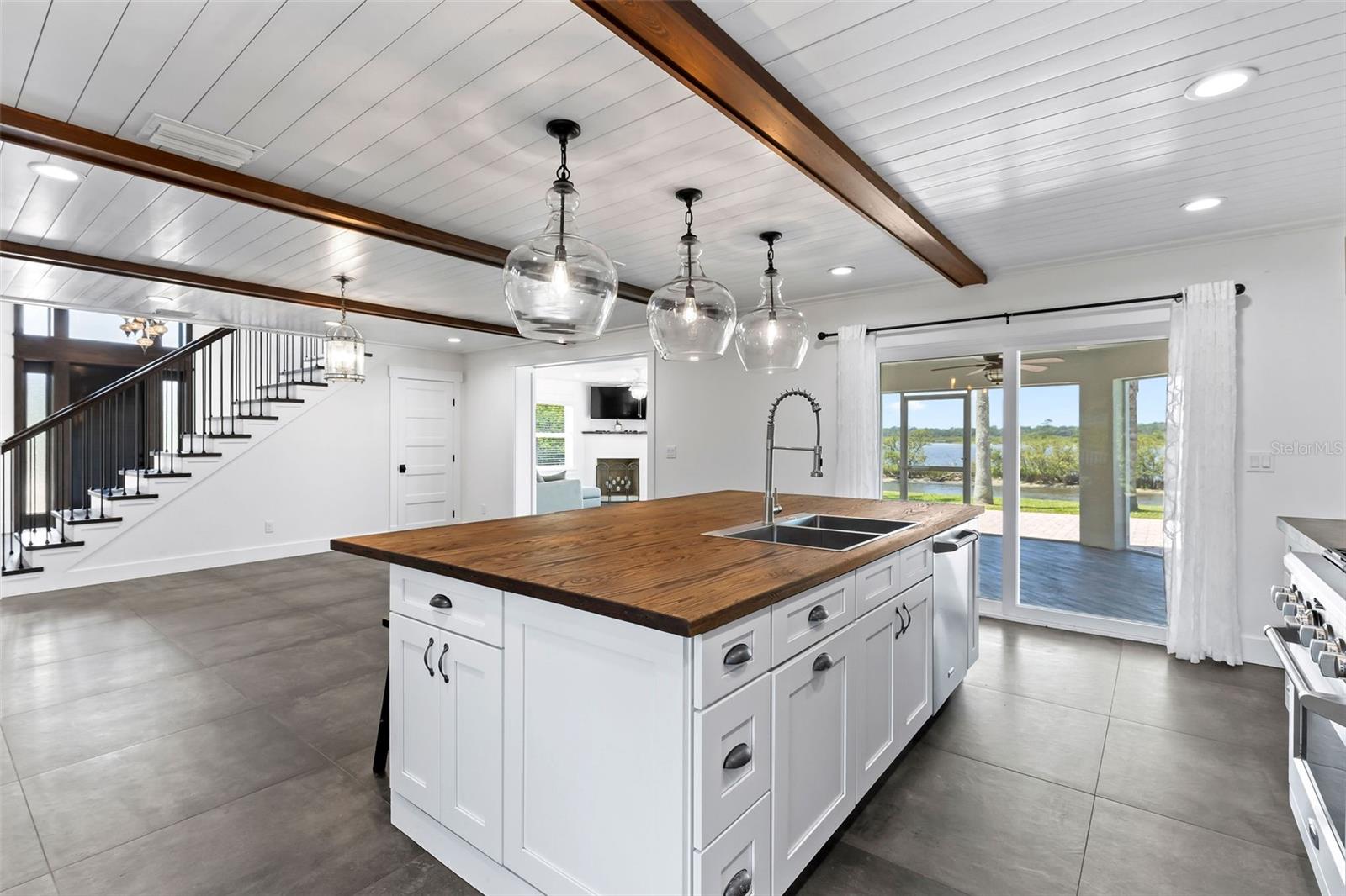 Experience the best of Florida living in this stunning two-story pool home, perfectly nestled on a spacious and private corner lot along a protected stretch of the Intracoastal Waterway. With your own boat lift and over 300 feet of waterfront, this home offers a rare blend of coastal charm, luxury, and convenience. From the moment you arrive, you’ll be drawn in by the exceptional curb appeal and thoughtfully designed interior. Step inside to find custom kitchen cabinetry that blends style and functionality, a dramatic open staircase that adds architectural flair, and a striking Moroccan chandelier in the living room for a touch of exotic elegance. The first-floor master suite serves as a peaceful retreat, featuring a beautifully updated en-suite bathroom with a freestanding soaking tub, dual vanities, and a spacious walk-in shower with elegant tile work, making it the perfect place to relax and recharge. Upstairs, two generously sized bedrooms provide comfort and privacy for family or guests. Step out onto the second-floor deck—partially covered and ideal for morning coffee or sunset cocktails—while enjoying breathtaking panoramic views of the Intracoastal, where dolphins play and sailboats glide by. Outside, the private pool invites you to unwind with stunning water views all around. Whether you’re entertaining or enjoying a quiet evening, this backyard oasis delivers unforgettable moments.