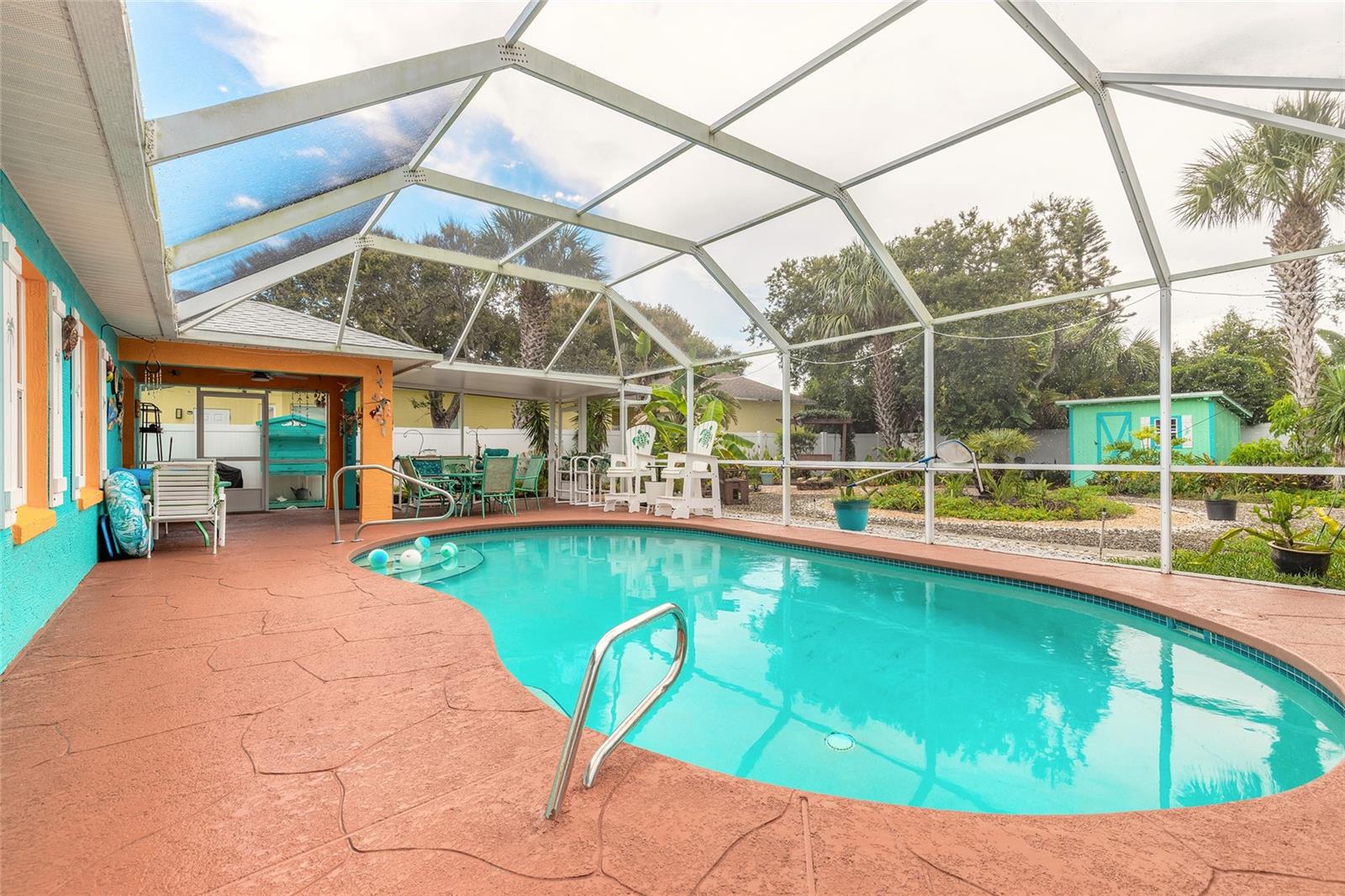 Welcome to your dream beachside retreat in Flagler Beach! Perfectly situated just one block from the sandy shoreline and one block from the tranquil Intracoastal Waterway, this move-in ready 3 bedroom, 2 bath pool home offers the ultimate Florida lifestyle. From the moment you arrive, you’ll be captivated by the beautifully landscaped yard and welcoming curb appeal. Step inside to discover an open concept floor plan with soaring ceilings and expansive windows that bathe the home in natural light while showcasing serene views of the pool and lanai. The spacious living areas flow seamlessly, making this home ideal for both relaxed everyday living and unforgettable entertaining. The heart of the home opens directly to a screened-in lanai with an in-ground pool, offering the perfect backdrop for outdoor dining, lounging, or hosting gatherings with family and friends. Imagine enjoying warm coastal evenings poolside, with the sound of ocean waves just steps away. Each bedroom is generously sized, providing comfort and privacy for family or guests, while the primary suite is a relaxing retreat. Both bathrooms are well appointed and designed for ease of living. Every detail of this home has been meticulously maintained, ensuring peace of mind for its next owner. Whether you’re looking for a full-time residence or a vacation escape, this property combines comfort, convenience, and charm. With the beach and the river both within walking distance, as well as easy access to local restaurants, shops, and community attractions, this home truly embodies the Flagler Beach lifestyle. Don’t miss this rare opportunity to own a coastal gem, your move-in ready beachside pool home awaits! HVAC 2021, pool pump 2016. Roof 2019.