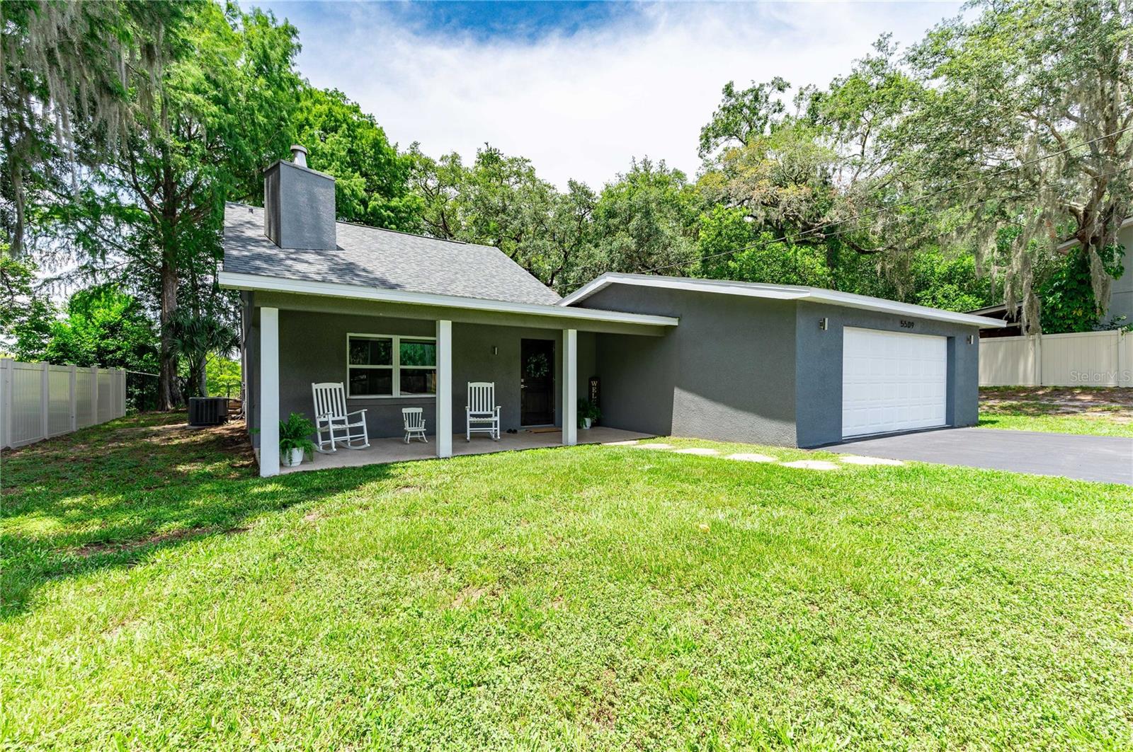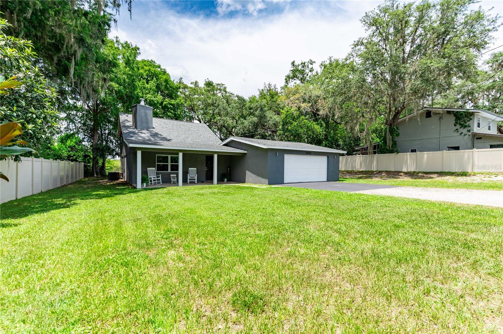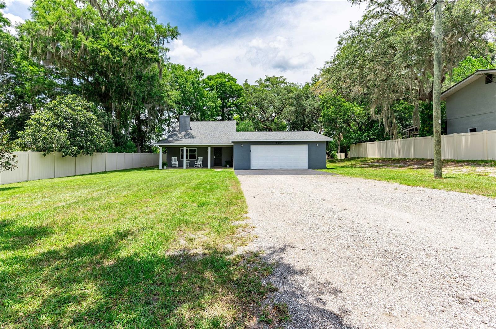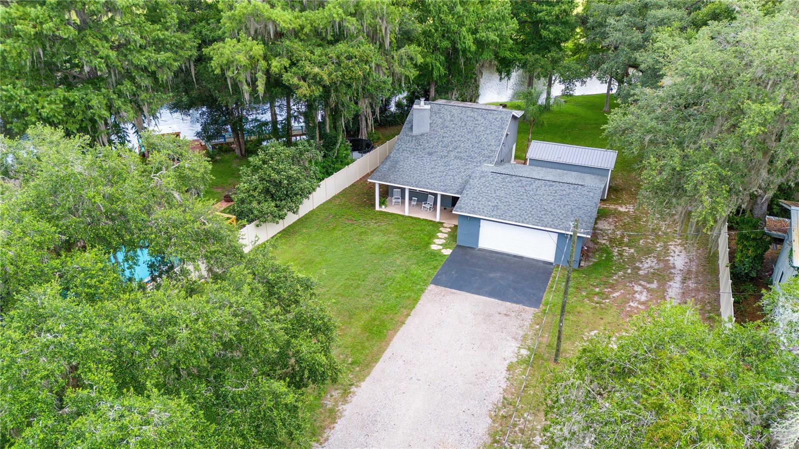 Come relax on the water with a view of old Florida. Situated on a canal to Tsala Apopka Chain of Lakes, this oversized back yard dotted with mature oak trees providing shade as well as a dreamy place to spend your time outside will not disappoint. This 2 bed 2 bath home was completely remodeled in 2018. Nothing was left untouched. Both Bedrooms overlook the water and the gorgeous backyard. The living room boasts high ceilings, complimented with a beautiful fireplace that adds so much charm we can hardly stand it! The stair way and lofted hall to the bedrooms upstairs is lined with beautiful dark railing creating a feeling of elegance and warmth. The first floor has wood look tile throughout with a kitchen that has stunning stone countertops and dark cabinets with stainless steel appliances. Through the kitchen is a door the back porch that is covered and lined with pavers, those pavers lead to the oversized two car garage that has a finished workshop inside. The workshop can easily be converted to an office, larger laundry room, or used for storage. Upstairs you will find both bedrooms, and a full bathroom. The stairs, lofted hallway, and bedrooms all carpeted, recently have been steam cleaned by a professional company. The property is home to a private boat ramp and plenty of room to store you own boat. The entire parcel is fenced with privacy fence and is gated with a large electric gate ran on a Viking motor, making Privacy a top priority. An Air-Boater's Dream, we know this property is hard to resist, but please do not approach the property without an appointment. Call today!