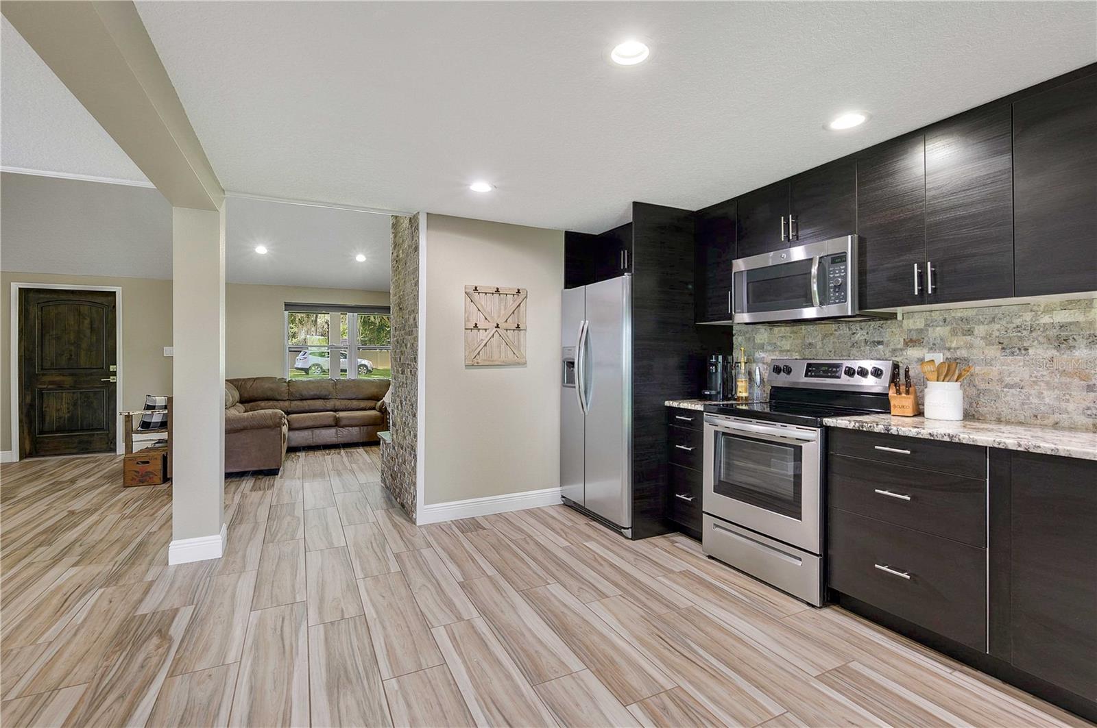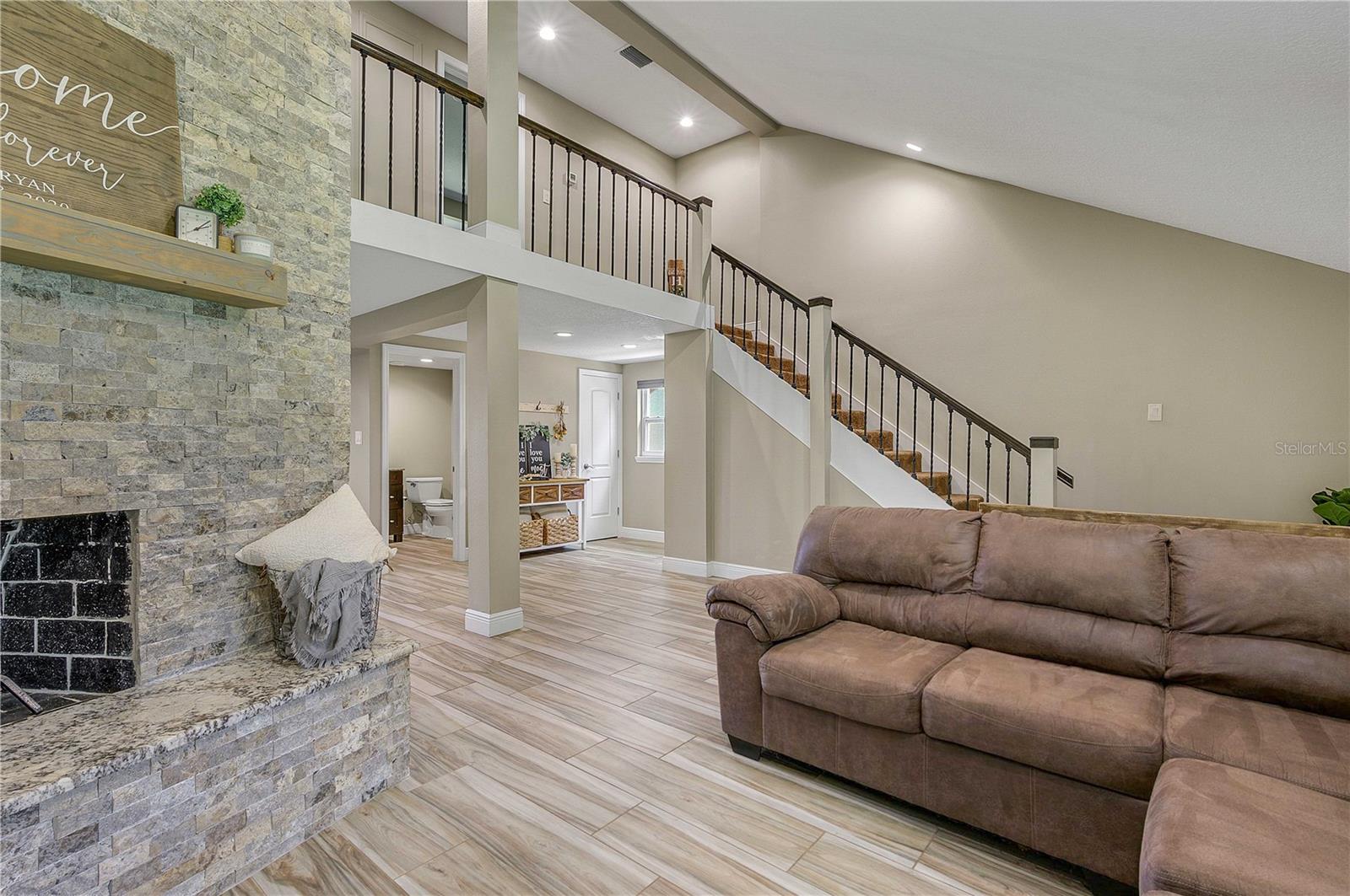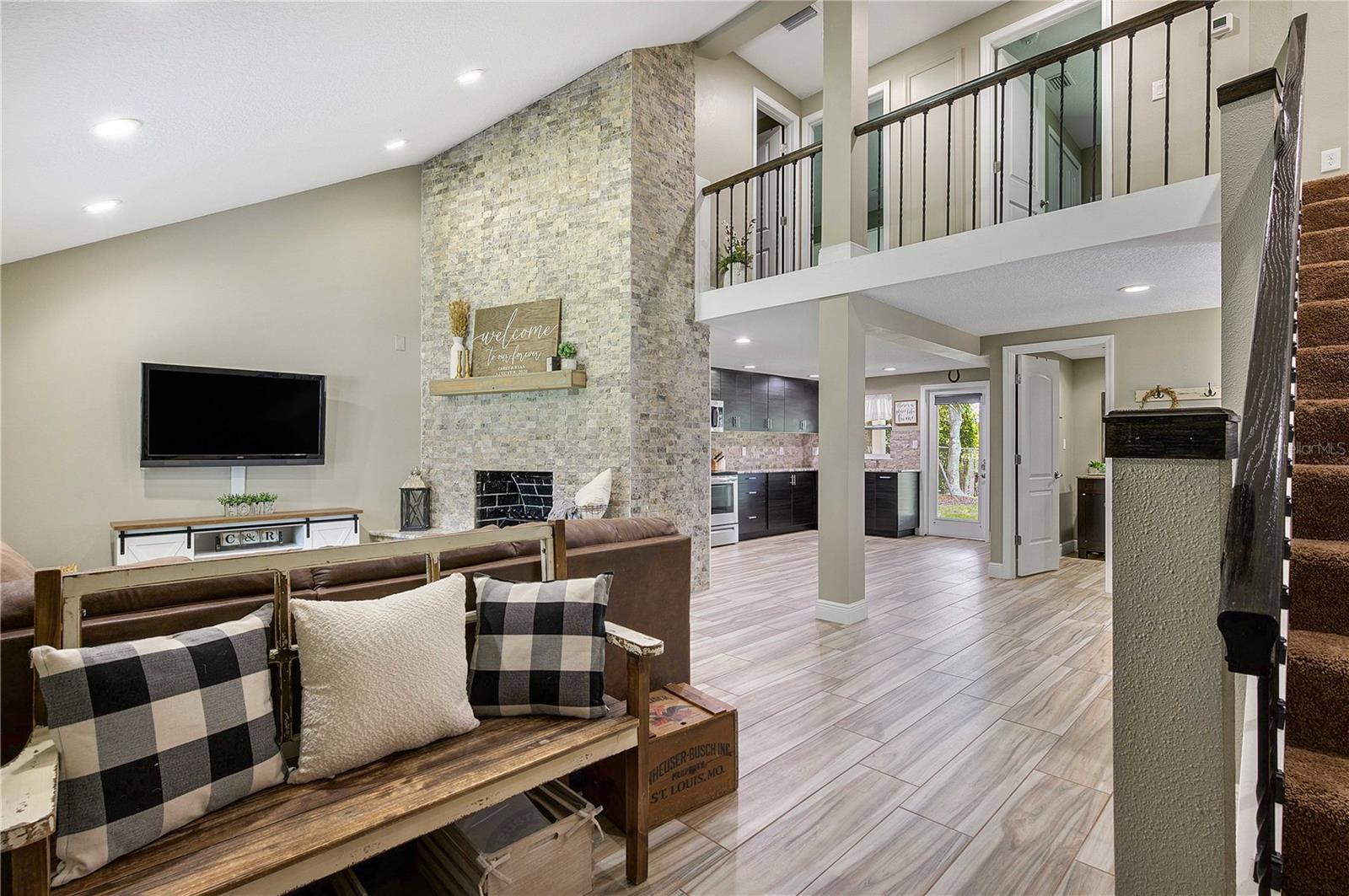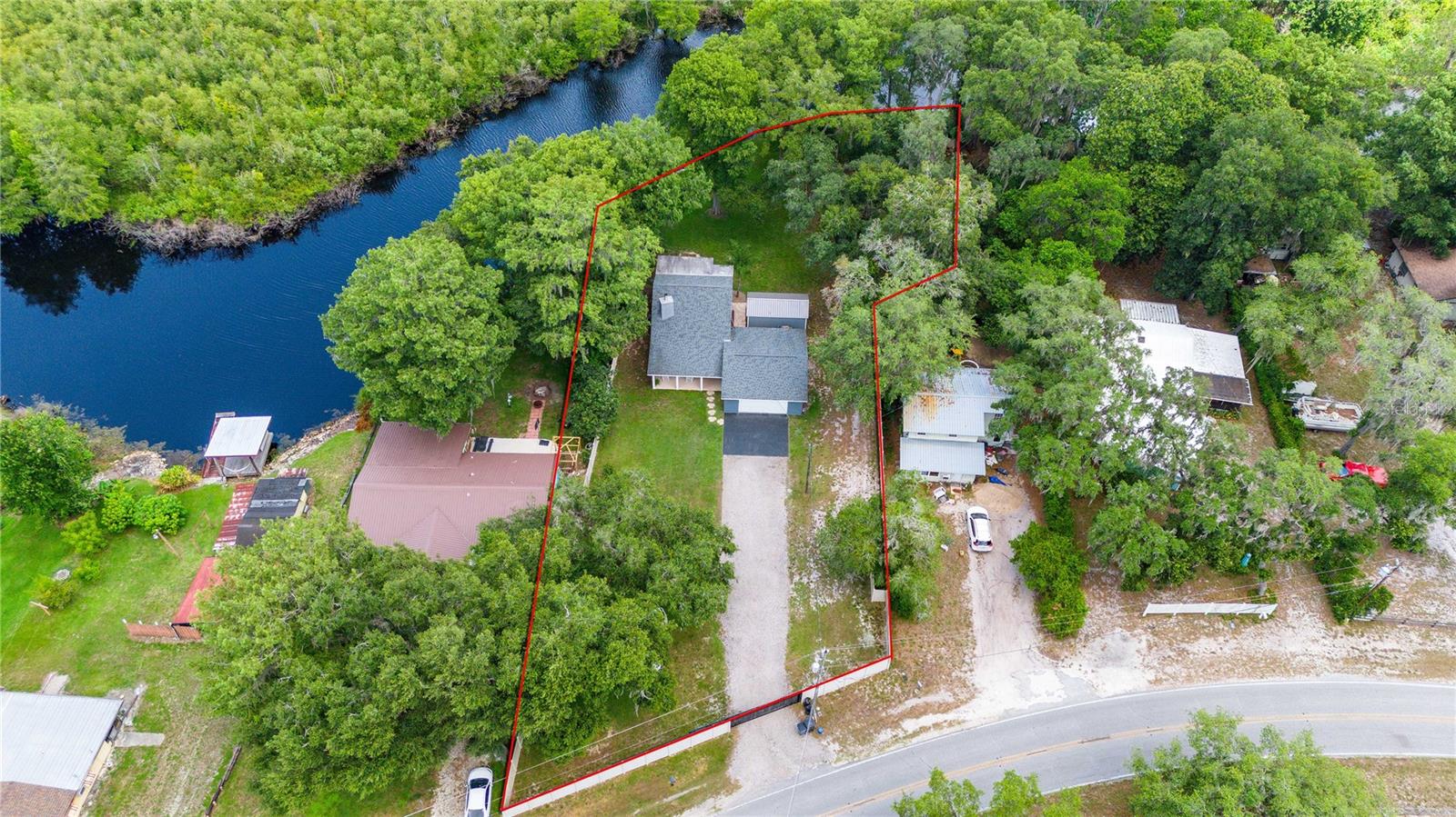 Come relax on the water with a view of old Florida. Situated on a canal to Tsala Apopka Chain of Lakes, this oversized back yard dotted with mature oak trees providing shade as well as a dreamy place to spend your time outside will not disappoint. This 2 bed 2 bath home was completely remodeled in 2018. Nothing was left untouched. Both Bedrooms overlook the water and the gorgeous backyard. The living room boasts high ceilings, complimented with a beautiful fireplace that adds so much charm we can hardly stand it! The stair way and lofted hall to the bedrooms upstairs is lined with beautiful dark railing creating a feeling of elegance and warmth. The first floor has wood look tile throughout with a kitchen that has stunning stone countertops and dark cabinets with stainless steel appliances. Through the kitchen is a door the back porch that is covered and lined with pavers, those pavers lead to the oversized two car garage that has a finished workshop inside. The workshop can easily be converted to an office, larger laundry room, or used for storage. Upstairs you will find both bedrooms, and a full bathroom. The stairs, lofted hallway, and bedrooms all carpeted, recently have been steam cleaned by a professional company. The property is home to a private boat ramp and plenty of room to store you own boat. The entire parcel is fenced with privacy fence and is gated with a large electric gate ran on a Viking motor, making Privacy a top priority. An Air-Boater's Dream, we know this property is hard to resist, but please do not approach the property without an appointment. Call today!