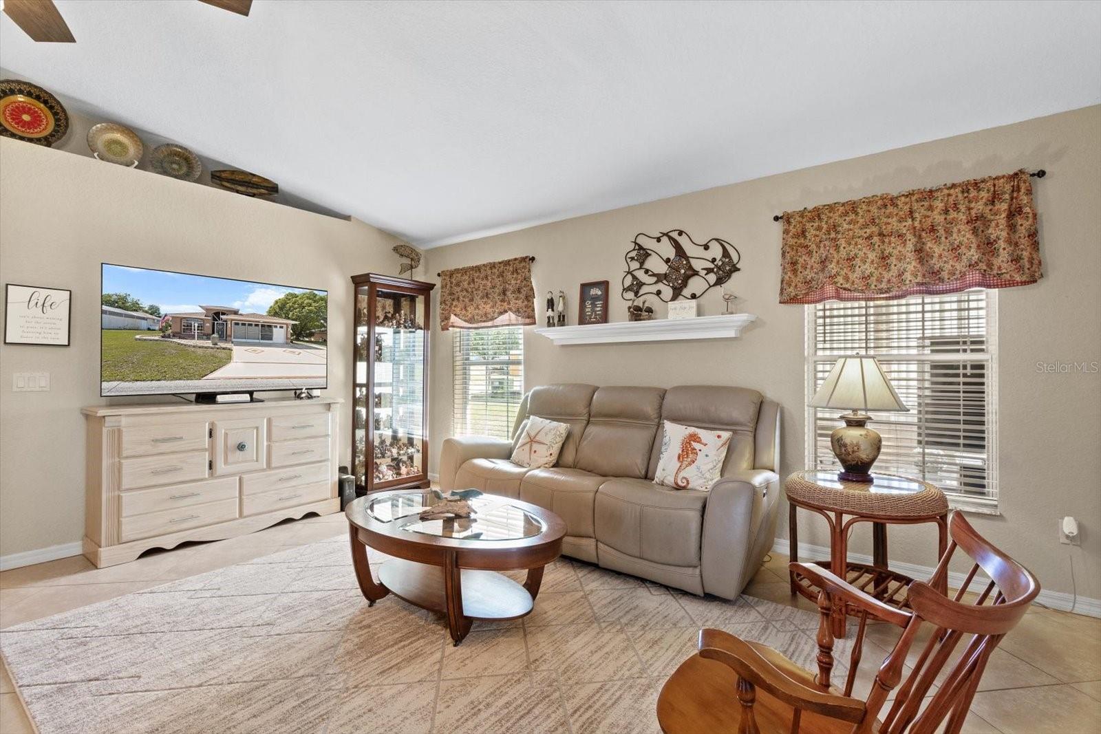 YOU WANNA BE WHERE EVERYBODY KNOWS YOUR NAME! This delightfully charming 2BD/2BA, 1641 sqft home sits on .16acres and is tucked away on a quiet street at the back of the distinguished and active Tarawood 55+ Gated Community. Upon approach the street-side charm is evident with the inviting “Sunburst Style” screen entry, medallion accented driveway, paver parking pad, block edging & manicured lawn w/ irrigation system. Once inside, the vaulted ceilings and neutral color palette make you feel right at home. The living & dining rooms are the heart of the home, where the food & fun are always at. The kitchen features a NEW stainless-steel microwave & frig, tiled backsplash, double basin sink & closet pantry. A pass-through window to the LARGE L shaped sunroom is a convenience when entertaining. Over 1300 acres of privately owned pasture and timberland in the rear of the property, assures you and your guests the opportunity to enjoy the beautiful Florida sunsets from your choice of either the fully enclosed sunroom or the 12’x22’ covered, screened lanai. Neither will disappoint. The master bedroom boasts a large walk-in closet and ensuite w/ linen closet, skylight, dual sinks and tiled shower. Friends and family will be comfortable w/ the guest suite that can be closed off for privacy. A NEW washer & a screened garage w/ recessed air handler and pull-down stairs for extra storage space are a plus! And for those who like to be prepared and have all their bases covered, a 50amp outside receptable (for a generator), a surge protector for the main electrical panel and a soft start for the a/c have all been newly installed in 2025. So much to do in a community where neighbors are friends! A 3 minute walk to the clubhouse features a pool, sauna rooms, banquet hall & kitchen, library, gym, shuffleboard & even a sewing room. Centrally and conveniently located about 10 miles from both Inverness & Brooksville. Enjoy boating, fishing, bird watching and spending time outdoors. Only 10 minutes to the Duval Island Public Boat Ramp for The Tsala Apopka Chain of Lakes while The Withlacoochee Trail-Floral City Trailhead is about 3 miles away for biking, skating and spending time outdoors. A FREE 1yr HOME WARRANTY is OFFERED as a GIFT to the BUYER!