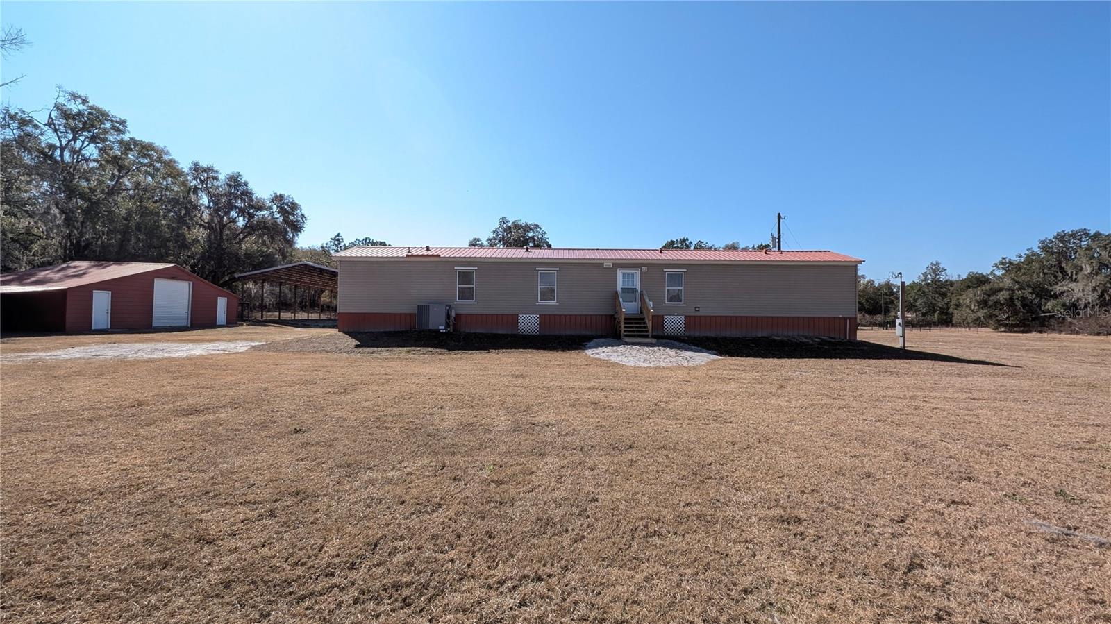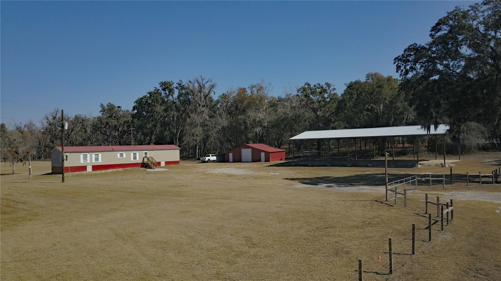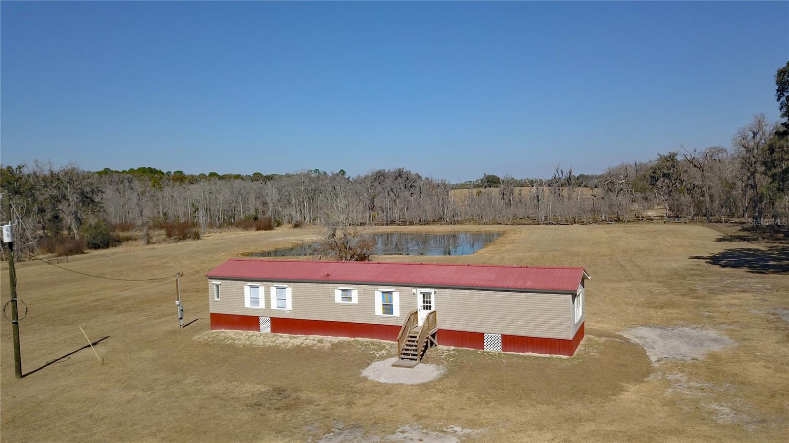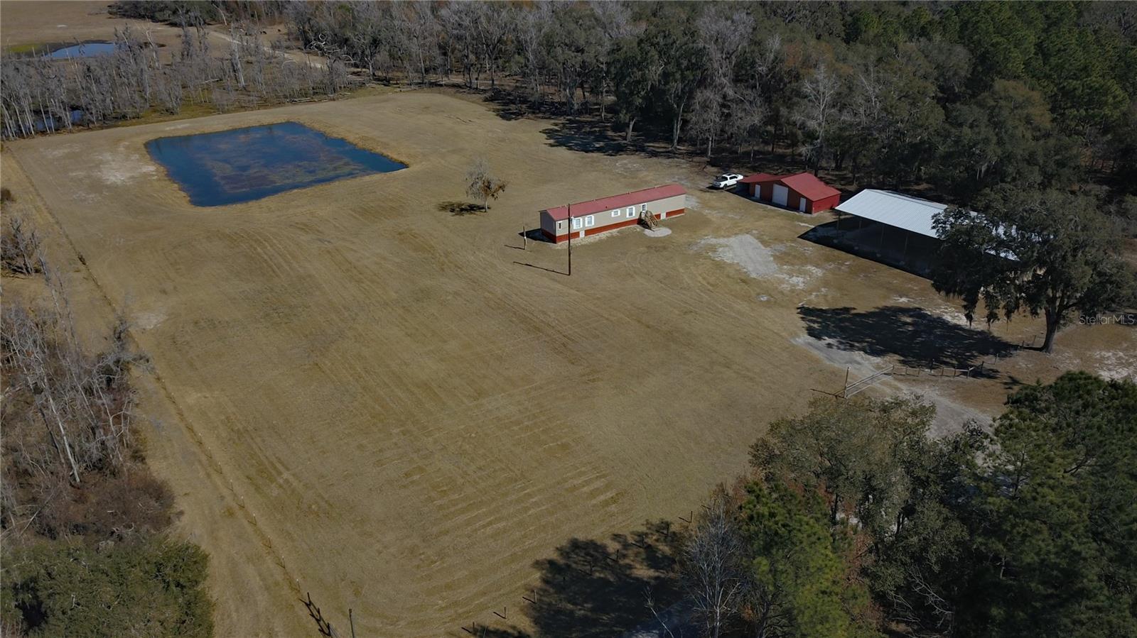 Situated on an expansive 5-acre parcel surrounded by acreage, this property offers a peaceful retreat with clear, open views and a sense of quiet isolation, bordered by distant timber that enhances the feeling of a private sanctuary. The home has been completely updated with a top-notch remodel that balances style and practicality. The interior features a spacious, open-concept living area with vaulted wood plank ceilings and clean, modern finishes throughout. The kitchen serves as the heart of the home, offering new cabinetry, updated countertops, and appliances that make the space both functional and inviting. Every room has been refreshed with new flooring and contemporary fixtures, ensuring a move-in-ready experience. Outside, the property is fully equipped for rural living or a dedicated hobbyist. A large, versatile pole barn provides plenty of room for a workshop, equipment, or vehicle storage. An additional workshop with 3 separate rooms offers loads of versatility. A tranquil pond adds a serene focal point to the landscape. This property is ideal for those seeking a quiet, updated home with the freedom of acreage and the utility of outbuildings.