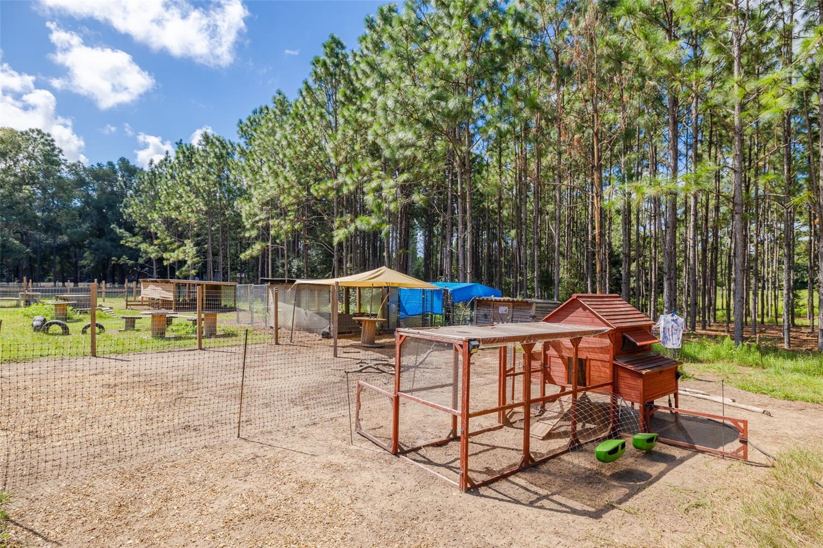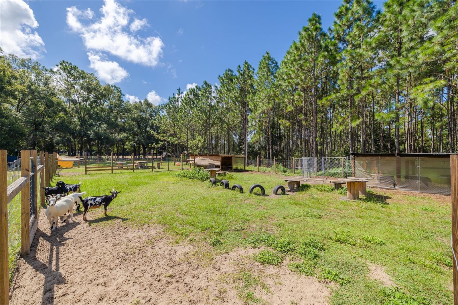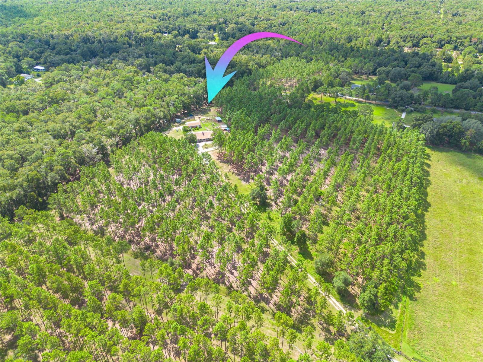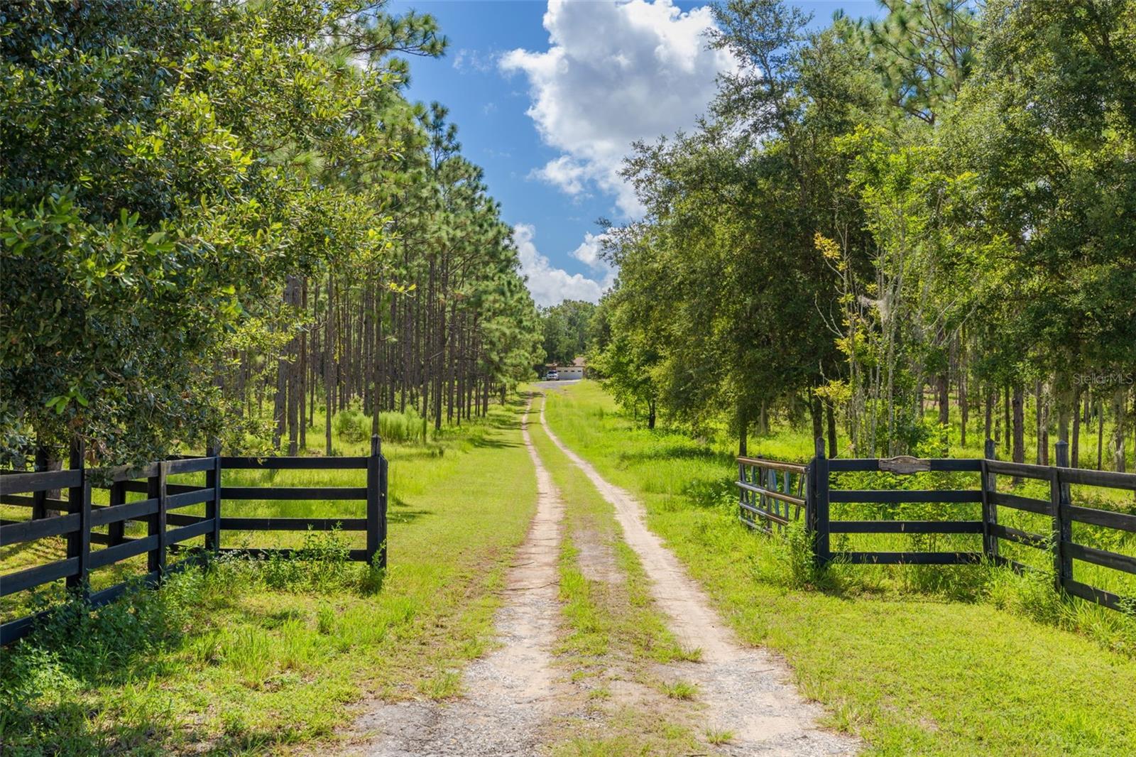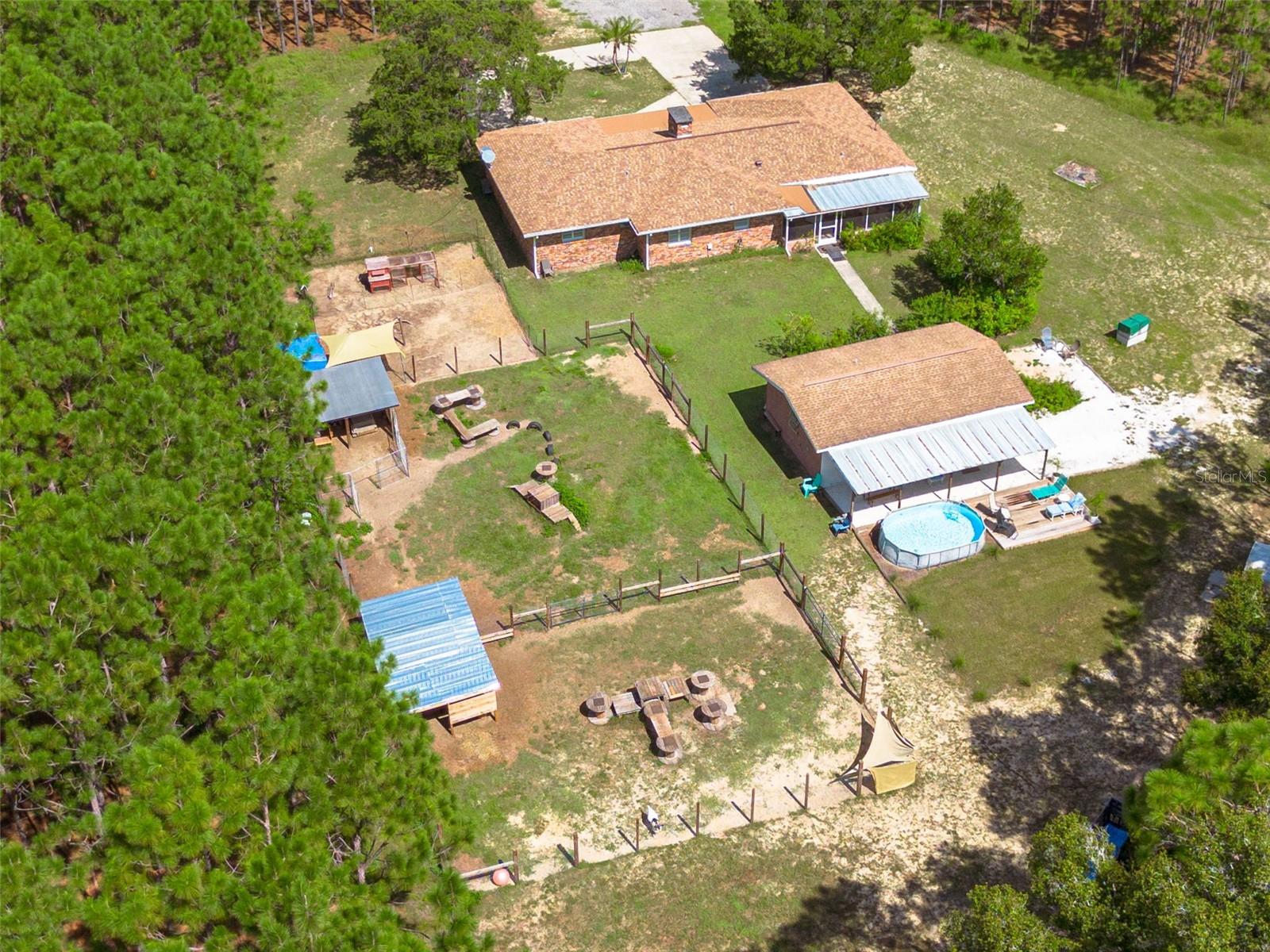 PRICE ADJUSTMENT!! HIGH & DRY!!! MOTIVATED SELLER!! Welcome to Peaceful Plantation, an idyllic retreat nestled on 10 lush, sprawling acres of long leaf pine trees that promises a serene escape from city life while offering ample space for your entire family and four- legged friends. This picturesque estate seamlessly blends modern comforts with rustic charm, creating a sanctuary designed for both relaxation and entertaining. The main residence appears at the end of a long uphill driveway featuring TWO generously sized bedrooms and TWO well-appointed bathrooms, one of which was recently upgraded. Other recent updates include a new roof, installed in June 2022, a new hot water heater added in May 2022, and in this past year modern enhancements such as a new, state of the art HVAC system, Spectrum high speed internet, septic drain field and large well water tank. The kitchen is a chef’s delight with white shaker solid wood cabinets, sleek quartz countertops, and an exquisite marble mosaic backsplash. High gloss, hickory flooring runs throughout the main living spaces, enhancing the home’s luxurious feel. The open living area is thoughtfully designed with dual fireplaces—one a built-in wood burning fireplace and the other a cast iron wood burning stove—providing warmth and ambiance. Large windows flood the home with natural light, while plantation shutters add a touch of elegance. The main house also includes a spacious 2 car garage, laundry room, pantry and a beautiful, screened lanai with new vinyl plank flooring surrounded by lush landscaping where hummingbirds and butterflies regularly visit. Step outside to discover expansive grounds perfect for gardening, recreation, or simply enjoying the tranquil scenery. Two wooden decks and above ground pool have been added in the past year. The property is equipped to accommodate animals, featuring two chicken coops and two fenced paddocks with sturdy well-built materials including shelters on each side, making it an ideal setting for horses, livestock or those yearning for a small farm lifestyle. Additionally, a charming separate dwelling on the property offers a versatile space that can serve as a mother-in-law suite, guest house, or rental unit. Current owner has used it as an Airbnb rental year-round. This secondary unit includes its own deck, driveway, kitchen, living area, bedroom, and bathroom, providing privacy and independence while keeping loved ones close. Other outdoor features include a versatile storage area or tack room attached to the separate dwelling and a sturdy metal shed for extra storage. This estate truly offers endless possibilities for peaceful living and entertaining. Don’t miss the chance to make this rare gem your own. Road leading up to the home has been updated as of 11/1/2024. PLEASE NOTE: THERE ARE 2 BEDROOMS, 2 BATHS IN THE MAIN HOME AND ONE BEDROOM AND ONE BATH IN THE COTTAGE.