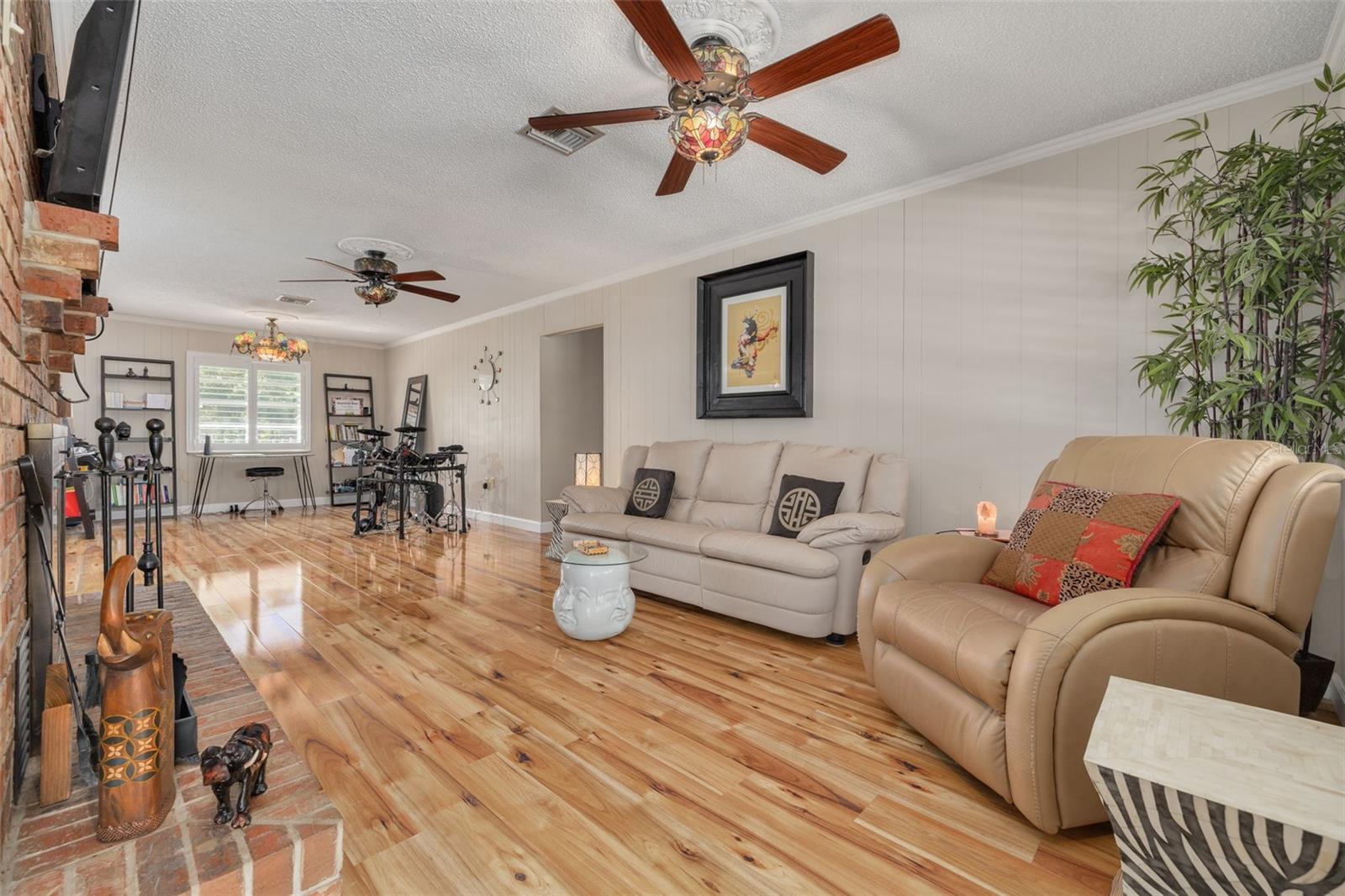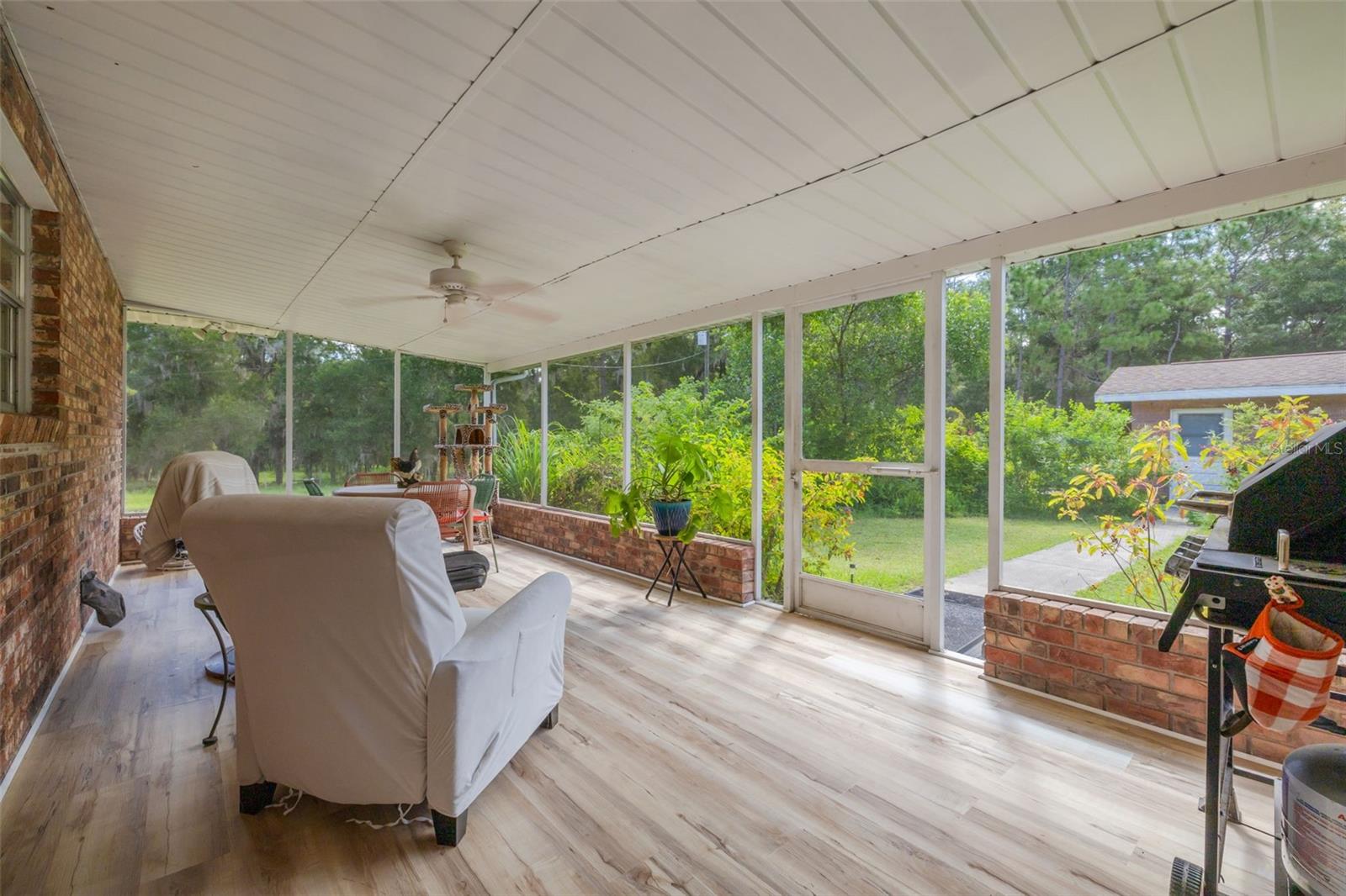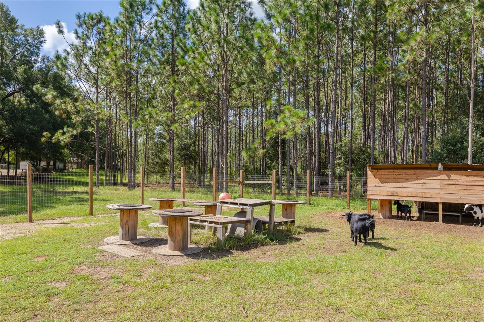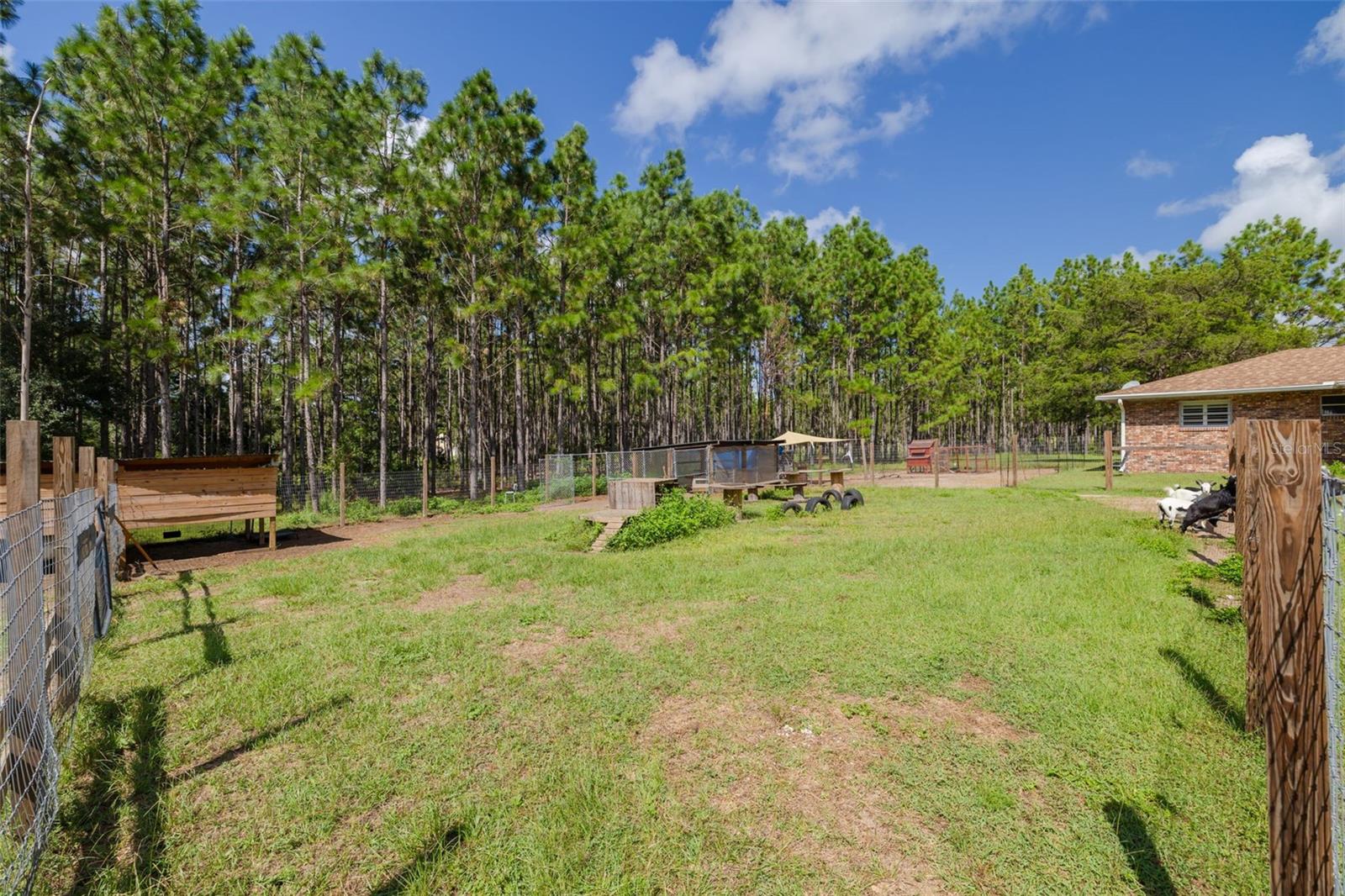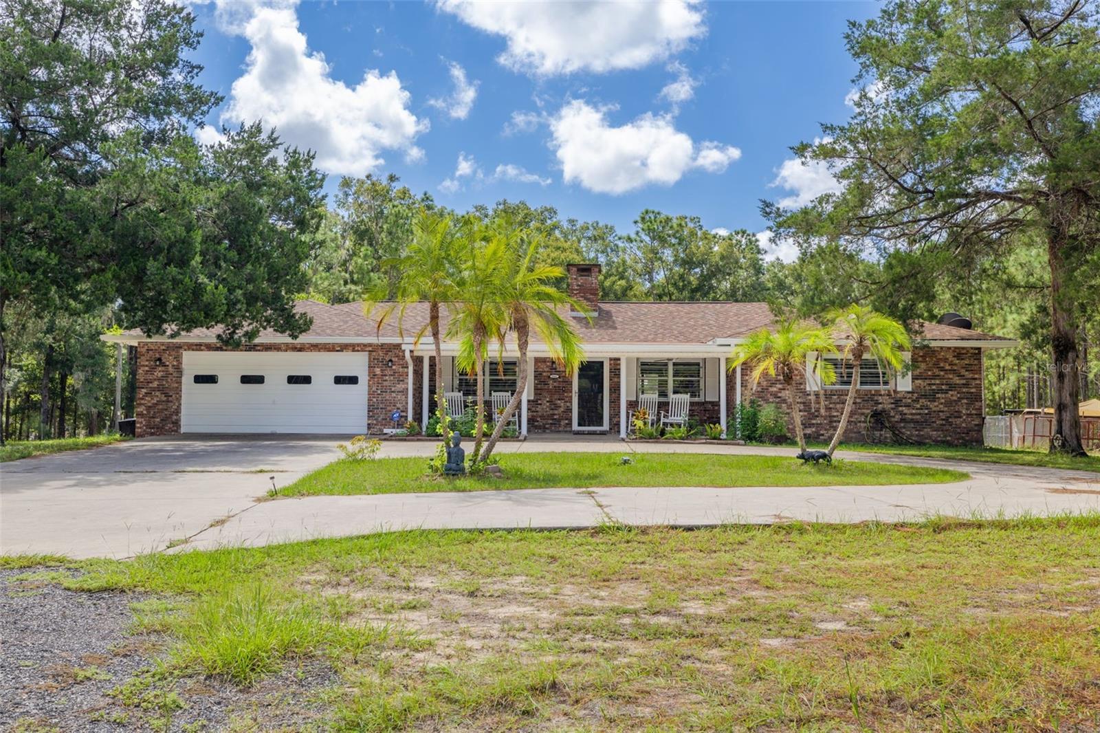 PRICE ADJUSTMENT!! HIGH & DRY!!! MOTIVATED SELLER!! Welcome to Peaceful Plantation, an idyllic retreat nestled on 10 lush, sprawling acres of long leaf pine trees that promises a serene escape from city life while offering ample space for your entire family and four- legged friends. This picturesque estate seamlessly blends modern comforts with rustic charm, creating a sanctuary designed for both relaxation and entertaining. The main residence appears at the end of a long uphill driveway featuring TWO generously sized bedrooms and TWO well-appointed bathrooms, one of which was recently upgraded. Other recent updates include a new roof, installed in June 2022, a new hot water heater added in May 2022, and in this past year modern enhancements such as a new, state of the art HVAC system, Spectrum high speed internet, septic drain field and large well water tank. The kitchen is a chef’s delight with white shaker solid wood cabinets, sleek quartz countertops, and an exquisite marble mosaic backsplash. High gloss, hickory flooring runs throughout the main living spaces, enhancing the home’s luxurious feel. The open living area is thoughtfully designed with dual fireplaces—one a built-in wood burning fireplace and the other a cast iron wood burning stove—providing warmth and ambiance. Large windows flood the home with natural light, while plantation shutters add a touch of elegance. The main house also includes a spacious 2 car garage, laundry room, pantry and a beautiful, screened lanai with new vinyl plank flooring surrounded by lush landscaping where hummingbirds and butterflies regularly visit. Step outside to discover expansive grounds perfect for gardening, recreation, or simply enjoying the tranquil scenery. Two wooden decks and above ground pool have been added in the past year. The property is equipped to accommodate animals, featuring two chicken coops and two fenced paddocks with sturdy well-built materials including shelters on each side, making it an ideal setting for horses, livestock or those yearning for a small farm lifestyle. Additionally, a charming separate dwelling on the property offers a versatile space that can serve as a mother-in-law suite, guest house, or rental unit. Current owner has used it as an Airbnb rental year-round. This secondary unit includes its own deck, driveway, kitchen, living area, bedroom, and bathroom, providing privacy and independence while keeping loved ones close. Other outdoor features include a versatile storage area or tack room attached to the separate dwelling and a sturdy metal shed for extra storage. This estate truly offers endless possibilities for peaceful living and entertaining. Don’t miss the chance to make this rare gem your own. Road leading up to the home has been updated as of 11/1/2024. PLEASE NOTE: THERE ARE 2 BEDROOMS, 2 BATHS IN THE MAIN HOME AND ONE BEDROOM AND ONE BATH IN THE COTTAGE.