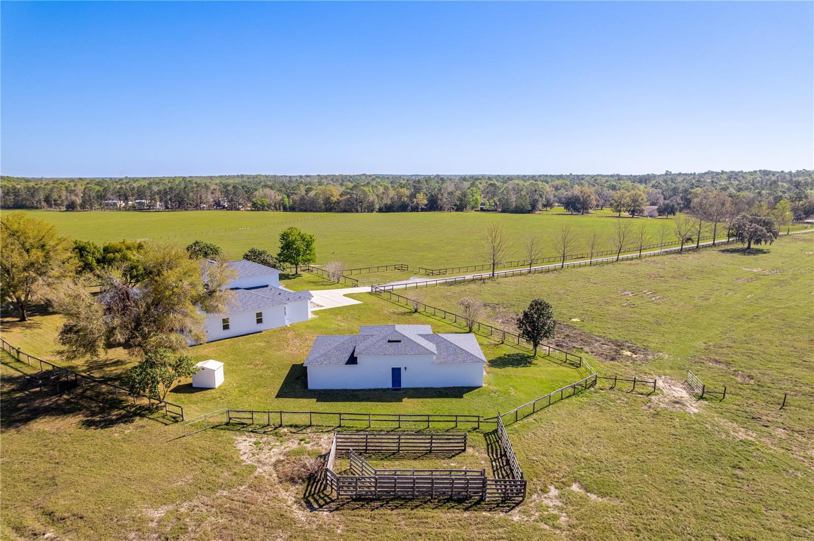 Driving through the gated entrance, you are greeted by a breathtaking expanse of land, offering a perfect blend of rural charm & modern convenience. Sit on the inviting front porch &nd take in the peaceful surroundings, where you can enjoy the beauty of nature while embracing the comforts of a well-appointed estate. This stunning Pastore built custom estate, nestled on 34.83 acres of pristine, high and dry, AG-zoned improved pastureland. This exceptional property offers luxury, functionality, and endless possibilities, featuring a 40 KW Generac generator capable of powering the entire home. With a 250-gallon & 500-gallon propane tank, the buried propane system efficiently runs the hot water heater, dryer, fireplace, and gas stovetop, ensuring convenience and reliability. On the first floor, you’ll find two spacious primary suites, each designed for comfort and privacy. Suite 1 features a large bedroom, dual sinks, large walk-in shower w/ two shower heads & massive walk-in closet. Suite 2 located on the opposite side of the home, offers an office, 2 walk-in closets, garden tub, dual sinks, snail shower, large linen closet, & dedicated HVAC system w/ humidity control. A third bedroom/office on the main floor with easy access to half-bath. The expansive eat-in kitchen is a chef’s dream, featuring a gas stovetop, smart refrigerator, wood cabinetry, ample counter space, a large pantry, and center island. The home includes a formal dining room & spacious living room with gas fireplace. Large enclosed back porch offers breathtaking views of lush pastureland, creating the perfect space to relax & unwind. Laundry room includes washer, dryer, & space for an additional refrigerator or freezer. As you enter the home through the double doors you will notice the sweeping staircase leading to the second floor where you’ll find a game room complete with pool table. Double doors open into the sunroom w/ acrylic windows which can be easily removed, allowing you to enjoy southern breezes through the screens. Two additional bedrooms & full bath complete the second level. The home is equipped with a three-car attached garage with additional washer and dryer hookup. A brand-new water softener with a water filtration system and sprinkler system with eight zones. The property is wired with Spectrum fiberoptic internet, ensuring high-speed connectivity. Important updates include a new roof in 2020, HVAC system in 2018, and energy-efficient double-paned windows installed in 2018. For those who appreciate ample storage and workspace, the estate includes a detached 26x54 garage with three roll-up doors, providing space for up to nine vehicles. A 40x24 hay barn, a 22x34 building with two roll-up doors capable of housing four vehicles, and a 22x35 pole barn with a drive-thru are perfect for storing an RV, trailers, or boats. The property features three wells, two located near the home and an additional well at the entrance. The beautifully landscaped grounds are adorned with mature trees, including loquat, Meyer lemon, peach, sycamore, crepe myrtles, and a magnolia tree. A dedicated dog run connects to a bonus room, making it an ideal space for a dog kennel or grooming area complete with a sink. The cross-fenced pastureland provides an exceptional opportunity for agricultural use, and the agricultural tax exemption is an added benefit. This extraordinary property is a rare find, offering unmatched space, luxury, and functionality.