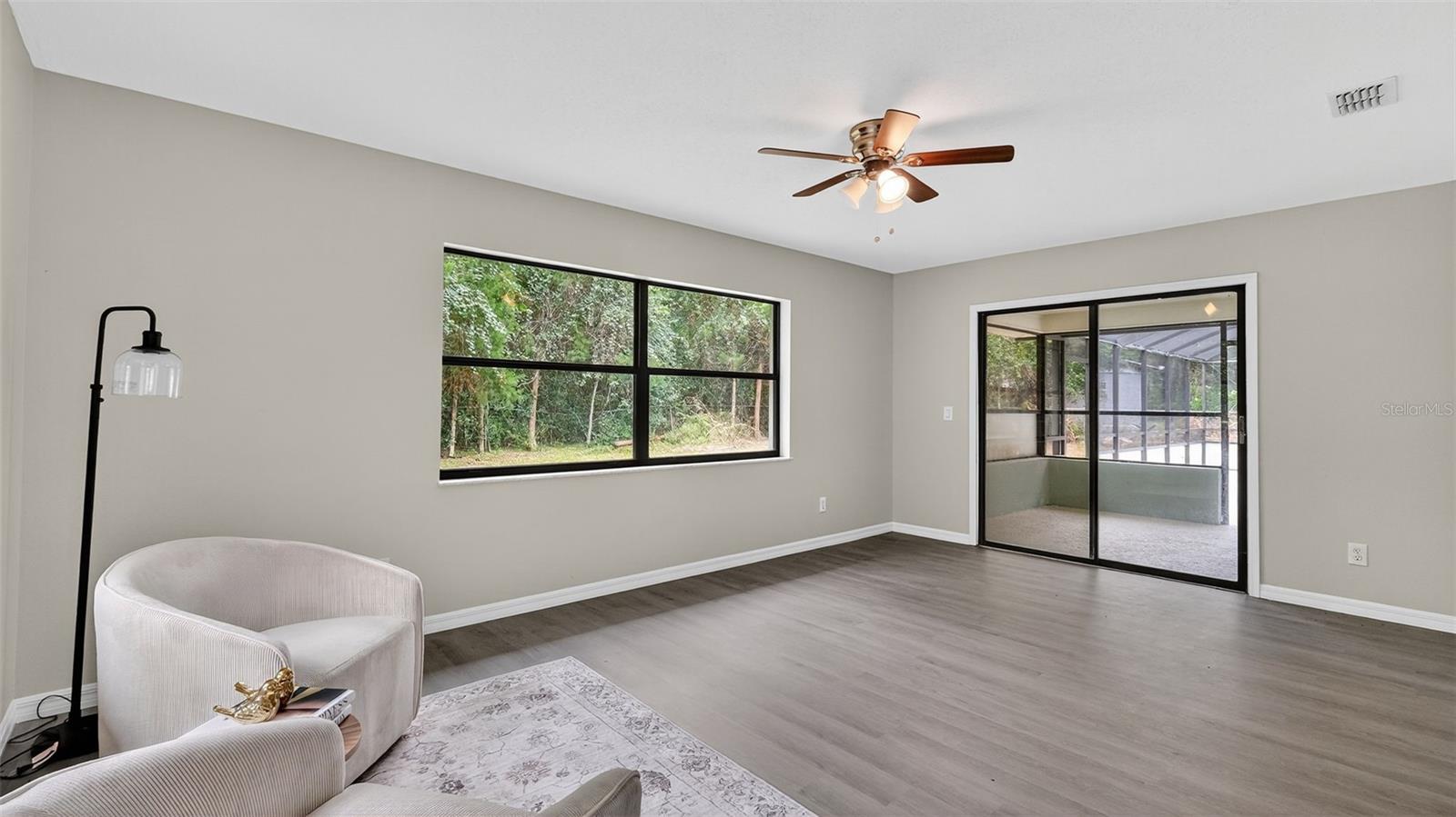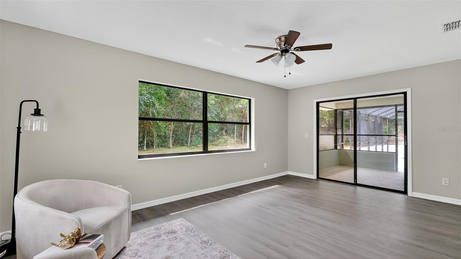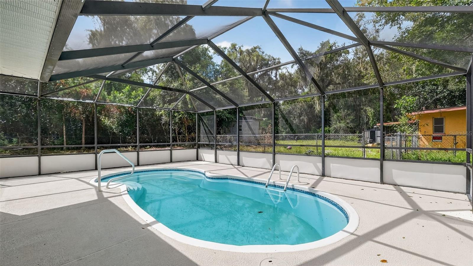 A beautifully updated 2-bedroom, 2-bath pool home with a versatile flex space perfect for a home office, den, or guest room. This spacious property includes a 2-car garage and an inviting open floor plan filled with natural light. Fully remodeled in 2025, the home features a brand-new roof, new water heater, modern cabinets with granite counters, stainless steel appliances, and durable LVP flooring throughout—every detail designed for style, comfort, and longevity. Step outside to enjoy the expansive screened-in pool area, ideal for entertaining or relaxing, overlooking a fenced yard shaded by a canopy of mature trees. Perfectly situated close to town and nearby waterways, yet securely in Flood Zone X with no HOA fees or dues, this home offers both convenience and peace of mind. A rare find that combines fresh 2025 upgrades, flexible living space, and an outdoor retreat—all in one move-in ready home.
