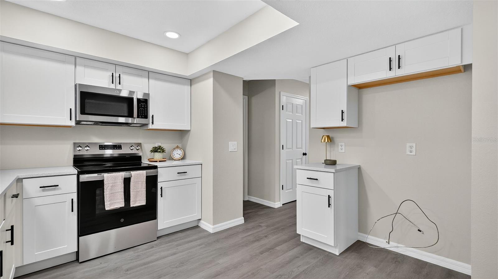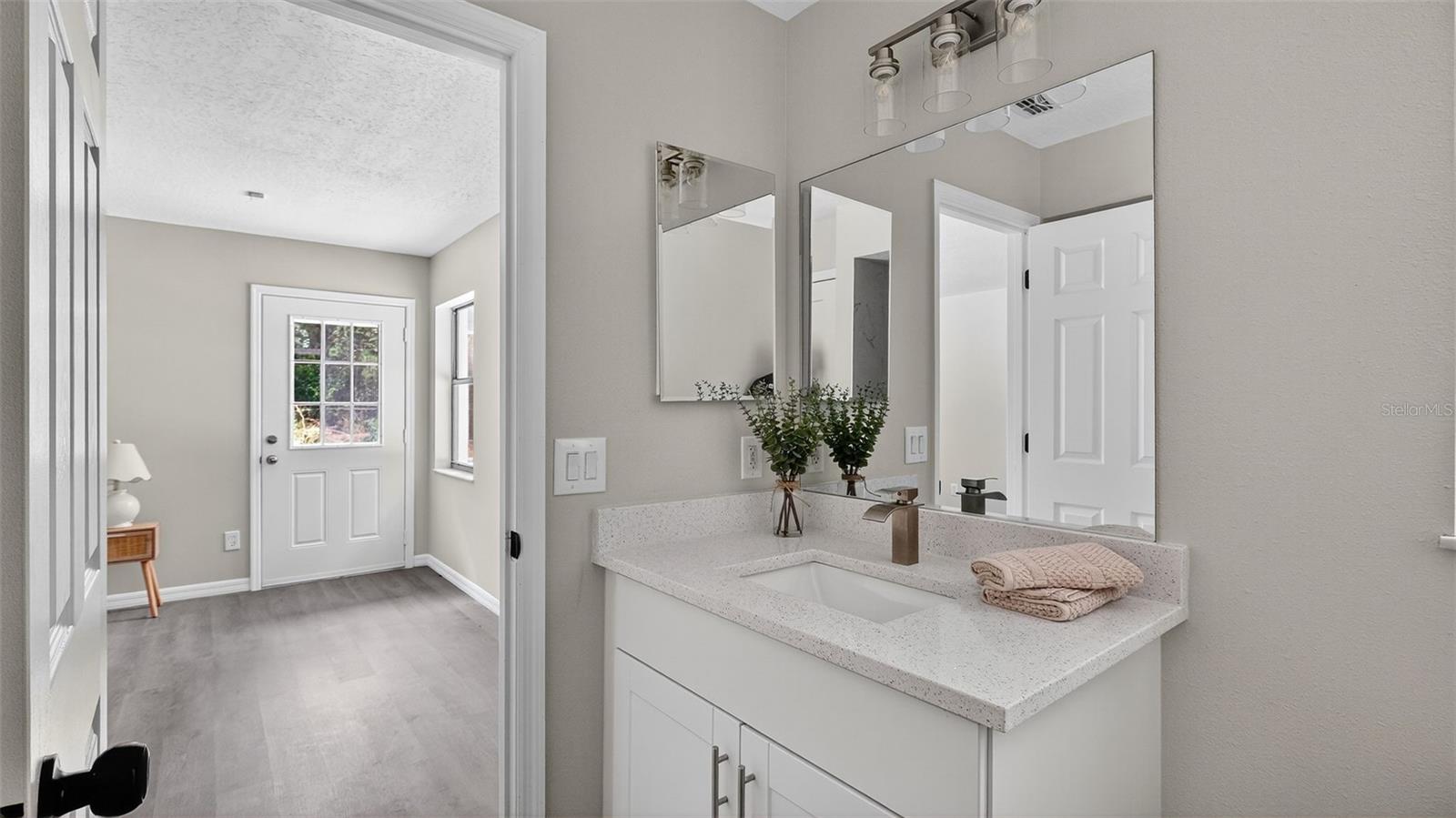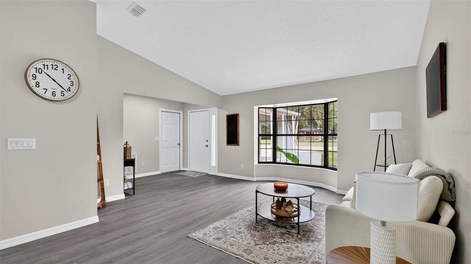 A beautifully updated 2-bedroom, 2-bath pool home with a versatile flex space perfect for a home office, den, or guest room. This spacious property includes a 2-car garage and an inviting open floor plan filled with natural light. Fully remodeled in 2025, the home features a brand-new roof, new water heater, modern cabinets with granite counters, stainless steel appliances, and durable LVP flooring throughout—every detail designed for style, comfort, and longevity. Step outside to enjoy the expansive screened-in pool area, ideal for entertaining or relaxing, overlooking a fenced yard shaded by a canopy of mature trees. Perfectly situated close to town and nearby waterways, yet securely in Flood Zone X with no HOA fees or dues, this home offers both convenience and peace of mind. A rare find that combines fresh 2025 upgrades, flexible living space, and an outdoor retreat—all in one move-in ready home.