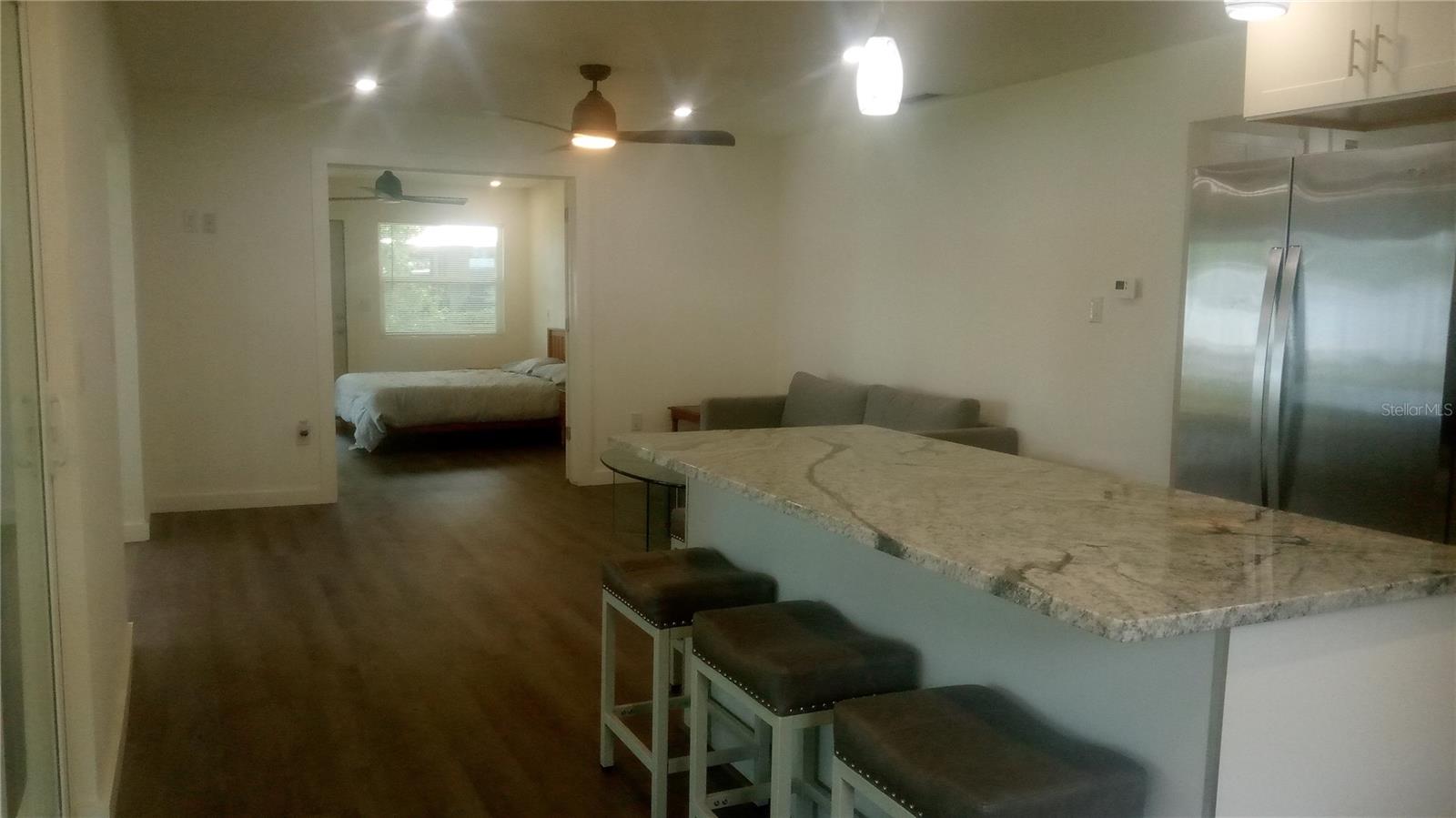 Island Lake – clear water, spring fed, with no public access. Great for fishing, boating, water-skiing, kayaking, and paddle boarding. Seller financing available with large down. No HOA. New roof, Hardie Board siding, windows, and appliances. Remodeled throughout including open concept kitchen with new cabinets, granite countertops, and large island. Updated bathrooms, flooring, recessed lights, remote ceiling fans, interior and exterior paint. Plans recently submitted to county adding 180 living square feet to front lake-facing room, bringing the total living square feet to 1,620. County records show 2/2, but shows as a 3 bedroom, 2 bath. The Master suite overlooks the lake with spacious walk-in closet, remodeled en suite, and separate access to laundry-room. Attached carport and storage sheds provide room for your boat and other toys. You may see the occasional small airplane land and take off from the lake. Large .79 acre fully fenced lot. Watch the beautiful sunsets from your 100 feet of lake frontage. Located on a paved road with a short drive to Ocala, Palatka and Gainesville for shopping, dining, and entertainment. 24 hours notice required, and proof of funds and/or pre-qual letter required prior to scheduling showings.