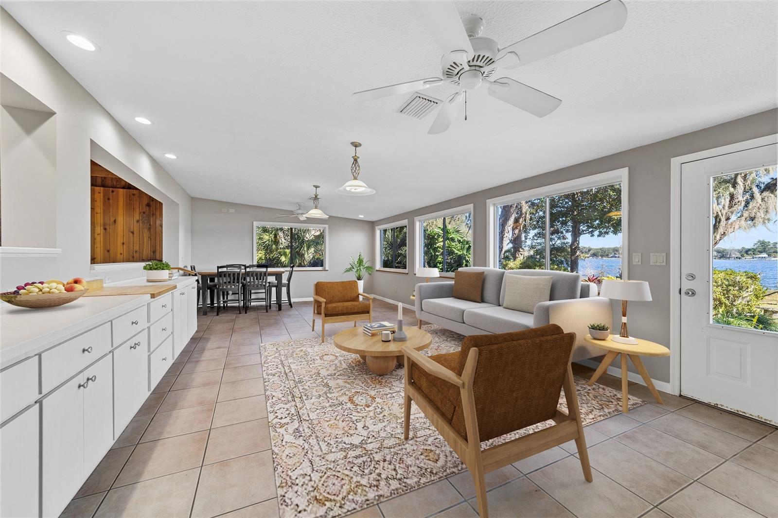 Spring fed, clear water Island Lake home features large windows w/picturesque views of the lake as well as gorgeous sunrises. This 3 bedroom, 2 bath home includes 2,296 square feet and was originally built in 1967. The lot is almost .5 acres (21,780 square feet) and has 100 feet of lake frontage. This property would be perfect as a primary residence or VRBO opportunity. The split open floor plan allows easy flow from living room, kitchen, and great room. The main bedroom is spacious with a large en suite bathroom. Two other bedrooms overlook the lake. Another flexible space could be a bunk room or office. The expansive laundry area has ample space for an extra refrigerator and freezer, or it could easily be transformed into another bathroom. The immense fenced yard includes a circular drive, attached carport/front porch seating area, 300 square foot storage building, 12’ x 16’ utility shed/workshop and a covered cabana that overlooks the lake. Recent improvements include a new roof, interior and exterior painting, new refrigerator and two new hot water heaters. This unique setting is close to Ft. McCoy, Orange Springs, Citra, Silver Springs, and Ocala. You or your renters could enjoy fishing, watersports (boating, skiing, tubing, wake surfing, etc.), canoeing, kayaking, paddle boarding, and hiking here and nearby.