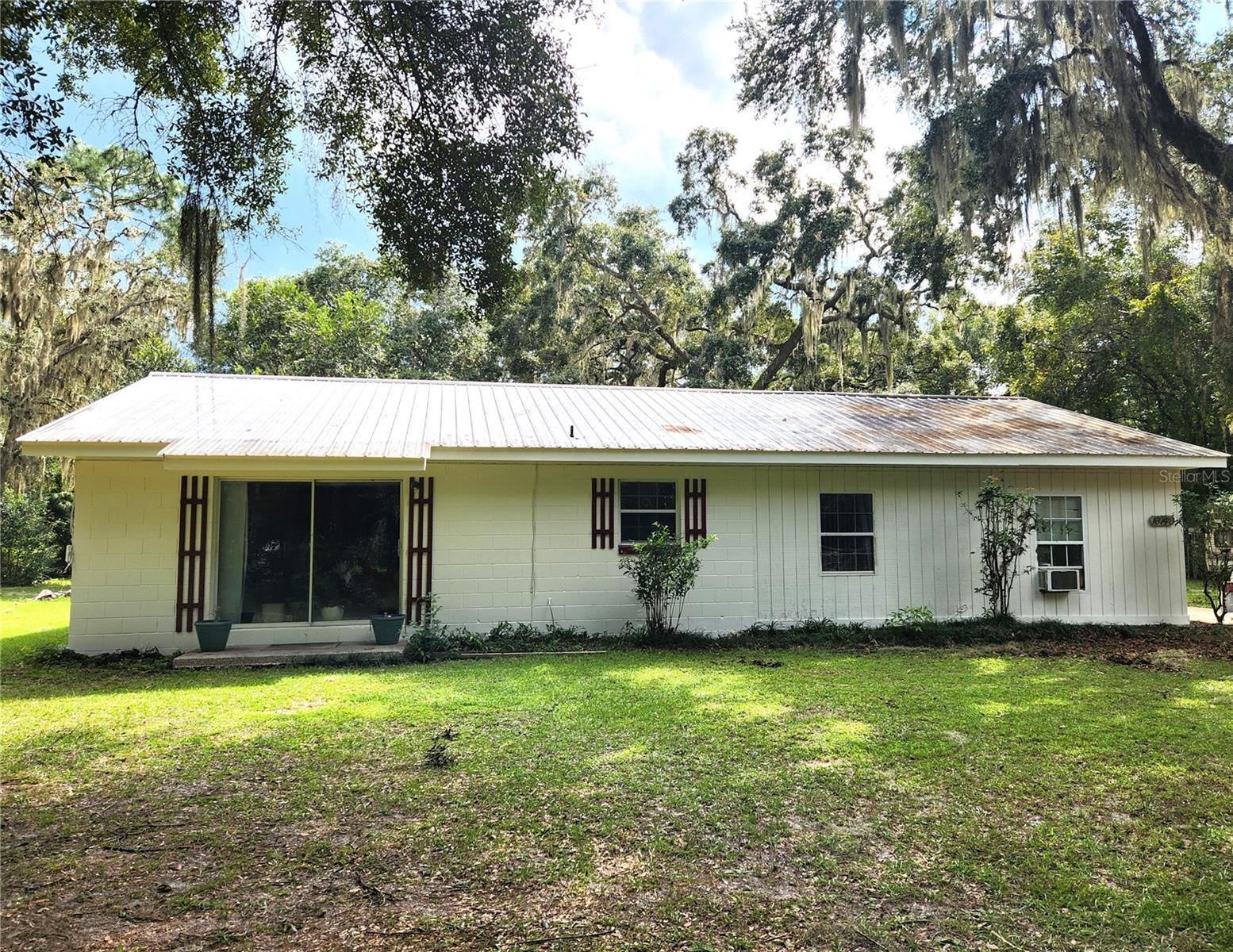 This 2 bedroom block and frame home sits on a large fenced 1.23 acre lot in the country. Features include a tiled living room with glass doors overlooking the front yard, kitchen with abundant cabinets, very large master bedroom, full bathroom with access from the master bedroom and hall, utility room/walk-in pantry, updated water heater. The bonus room off the kitchen would make a great home office, den, formal dining room or could be converted to a 3rd bedroom. Oversized laundry room with washer and dryer included - Large enough to easily add a 2nd bathroom. Concrete patio perfect for cookouts, 2 storage buildings, metal roof, freshly painted exterior. Generac generator included for peace of mind during power outages. Former greenhouse needs new roof panels or remodel the structure into additional storage space, gazebo, etc. Completely fenced corner lot extends from road to road. Not in a flood zone and no HOA fees. Conveniently located between Ocala, Gainesville and Palatka. 4 miles to Dollar General and less than 6 miles to the Orange Springs public boat ramp on the Ocklawaha River. The home could use a little TLC but it's hard to find a home with 1920 sq ft on over an acre at this price - Great Opportunity!