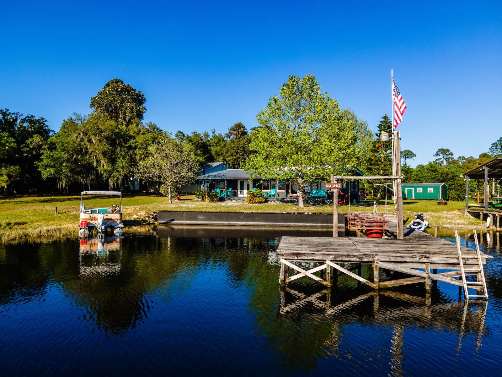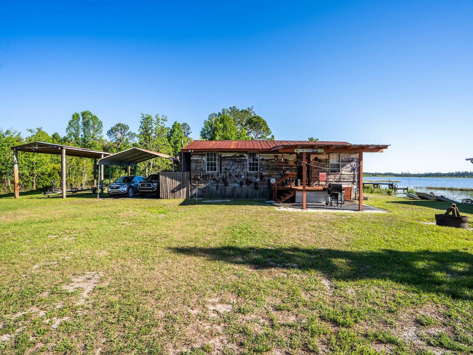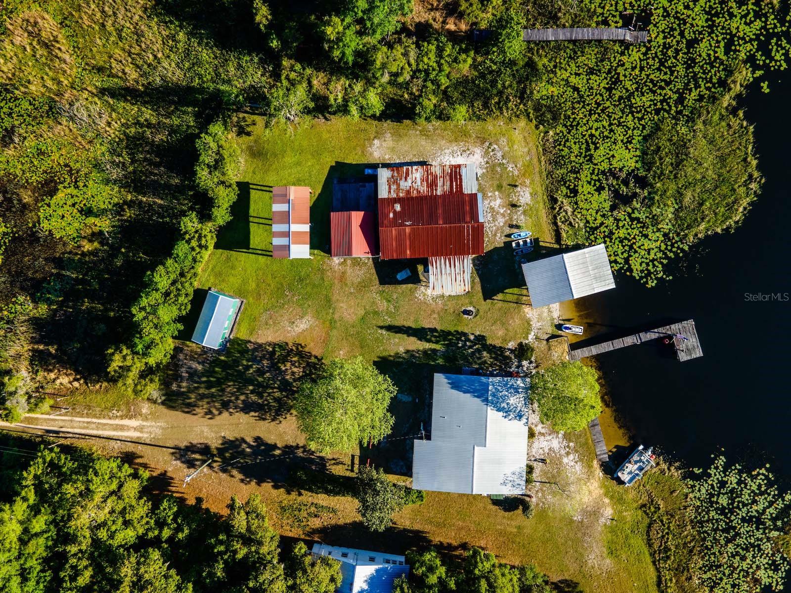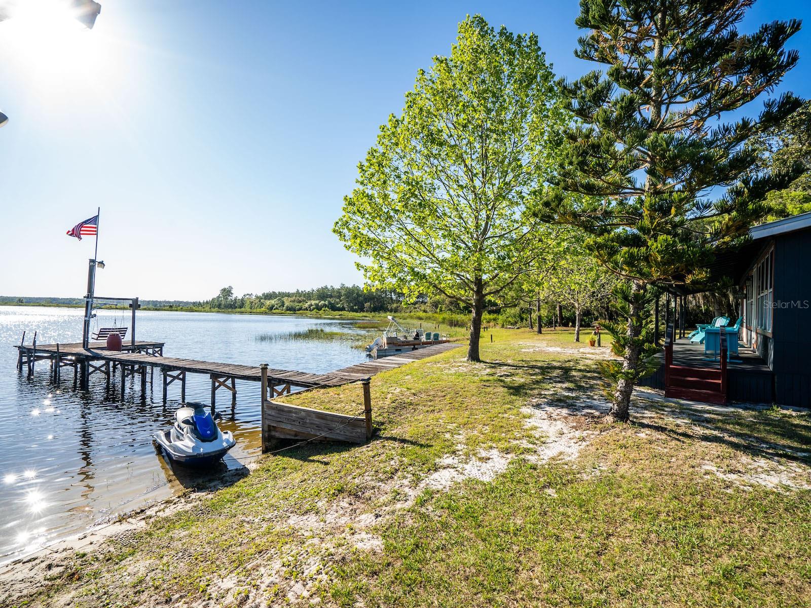 "Lake Delancy Delight" is the perfect description for this beautiful waterfront home on 1.81 acres. Lake front is approximately 200' with canal and pond approx. .80 acres. Waterfront included 2 docks, one is fishing pier and one is covered with open area and 14x14' screen room with power. Arriving at the home you are welcomed by spacious lot size with main home including 3 bedrooms, 2 bathrooms and 1519 living square feet. There is also 966 square foot lakeside building with open floor plan hang out room, kitchen area, half bath, workshop and storage(seller calls it the "The Dog House"). Entering the main home you will see open living room and dining room floor plan with french door and lots of windows inviting bright natural light and stunning lake views. Kitchen is nice size with solid wood cabinets, lots of counter space and includes range, microwave and refrigerator. Main bedroom is oversized with lots of windows, natural light and stunning lake views. Main bathroom is cozy with tiled shower, updated vanity with marble top. Guest bedrooms are cozy in size and guest bathroom includes steel tub/shower combo with subway tile, pedestal sink and single vanity. Rear covered porch is full length with lovely seating and wonderful sunset views overlooking lake. Property also includes several covered parking area and 14'x42' lean to for storage and bigger toys. There is also a metal storage shed which is perfect for your 4 wheelers and lawn equipment. Also, hand water pump just in case power ever goes out. Located in the heart of the Ocala National Forest w/ beautiful Salt Springs swim area, boat launch and short ride to Lake George and the St. Johns River. Close to local shopping including grocery store, Dollar General, hardware, gas station, great restaurants, entertainment and more. Salt Springs is also home to miles and miles of ATV/SxS, Horseback and hiking trails. If you’re a fisherman, or hunter or simply love hiking, canoeing or kayaking you are in luck! Minutes to Ocklawaha River, Ocala National Forest, and many natural springs(Salt Springs, Silver Glen Springs, Juniper Springs), horseback and walking trails, and off-road vehicle trails await your explorations. One-of-a-kind property and location! Ready for new owners! Deer, turkey, sandhill cranes and more will be your new neighbors and visit regularly.