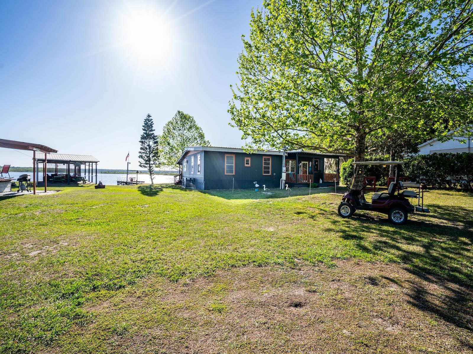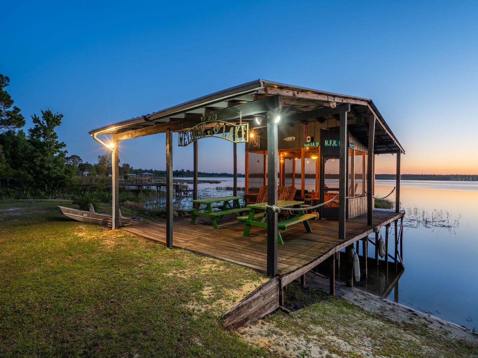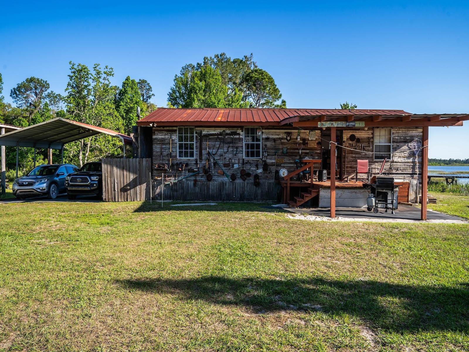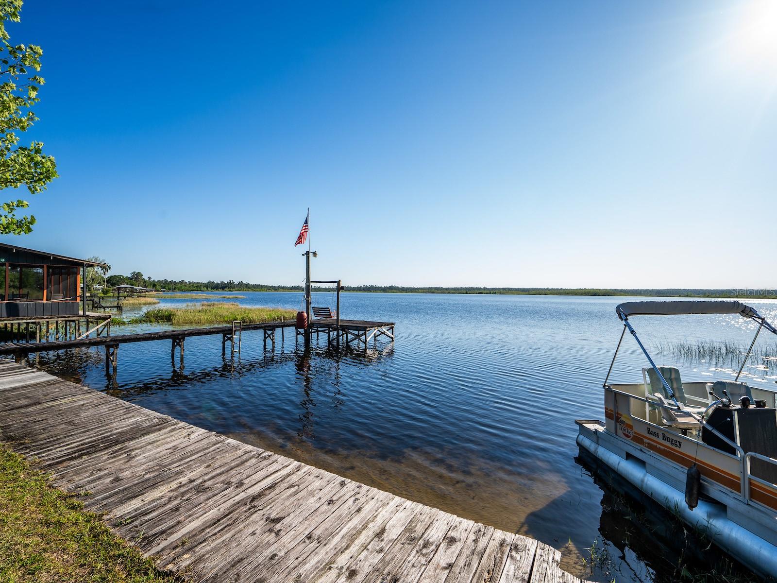 "Lake Delancy Delight" is the perfect description for this beautiful waterfront home on 1.81 acres. Lake front is approximately 200' with canal and pond approx. .80 acres. Waterfront included 2 docks, one is fishing pier and one is covered with open area and 14x14' screen room with power. Arriving at the home you are welcomed by spacious lot size with main home including 3 bedrooms, 2 bathrooms and 1519 living square feet. There is also 966 square foot lakeside building with open floor plan hang out room, kitchen area, half bath, workshop and storage(seller calls it the "The Dog House"). Entering the main home you will see open living room and dining room floor plan with french door and lots of windows inviting bright natural light and stunning lake views. Kitchen is nice size with solid wood cabinets, lots of counter space and includes range, microwave and refrigerator. Main bedroom is oversized with lots of windows, natural light and stunning lake views. Main bathroom is cozy with tiled shower, updated vanity with marble top. Guest bedrooms are cozy in size and guest bathroom includes steel tub/shower combo with subway tile, pedestal sink and single vanity. Rear covered porch is full length with lovely seating and wonderful sunset views overlooking lake. Property also includes several covered parking area and 14'x42' lean to for storage and bigger toys. There is also a metal storage shed which is perfect for your 4 wheelers and lawn equipment. Also, hand water pump just in case power ever goes out. Located in the heart of the Ocala National Forest w/ beautiful Salt Springs swim area, boat launch and short ride to Lake George and the St. Johns River. Close to local shopping including grocery store, Dollar General, hardware, gas station, great restaurants, entertainment and more. Salt Springs is also home to miles and miles of ATV/SxS, Horseback and hiking trails. If you’re a fisherman, or hunter or simply love hiking, canoeing or kayaking you are in luck! Minutes to Ocklawaha River, Ocala National Forest, and many natural springs(Salt Springs, Silver Glen Springs, Juniper Springs), horseback and walking trails, and off-road vehicle trails await your explorations. One-of-a-kind property and location! Ready for new owners! Deer, turkey, sandhill cranes and more will be your new neighbors and visit regularly.