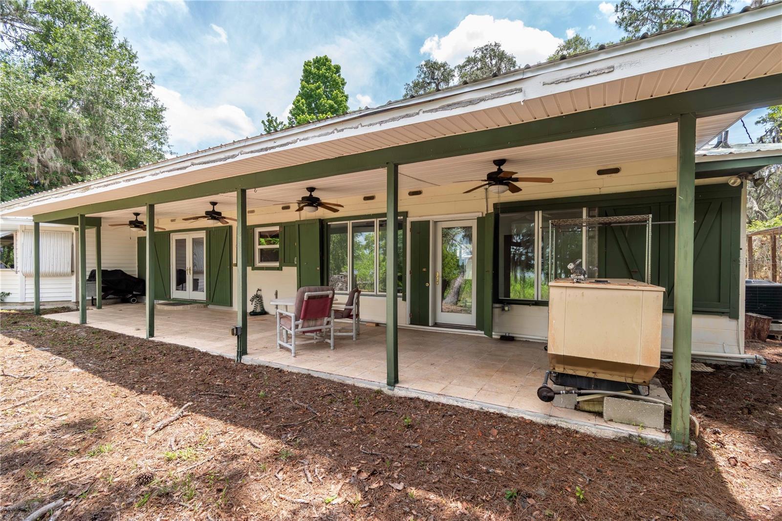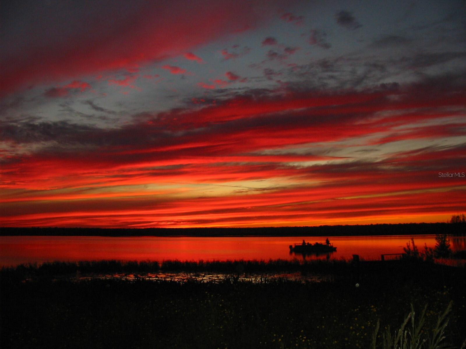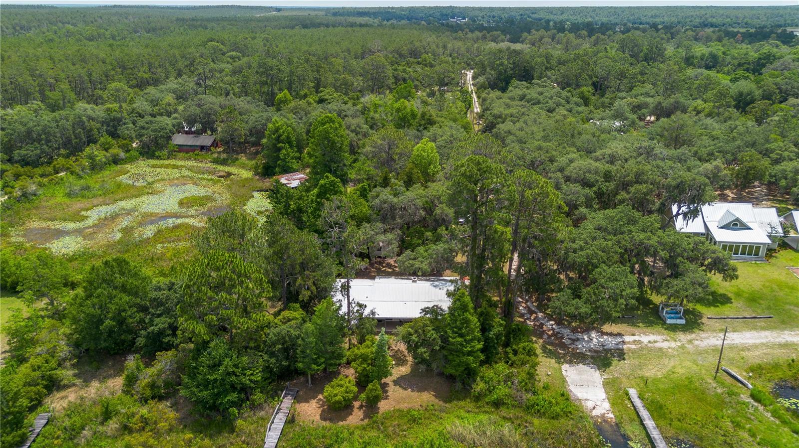 Nestled along shores of the private, spring-fed Lake Delancey in Fort McCoy, this inviting lakeside retreat is an ideal option for those who crave nature, water recreation, and room to personalize! Lake Delancey is accessible only by property owners along the lake, making it a perfect option for fishing, boating, and exploring year-round. Set on just under an acre, the home features a total of 2-bedrooms and 1-bath with over 1,200 sqft of comfortable living space. Stepping inside from the covered front patio, the living area has rustic appeal with a wood-burning stone fireplace and some built-in shelving, open directly to the dining area and the functional kitchen. Those who work from home will love the large formal office, which features breathtaking lake views through a semi-circular area with large bow-windows. This is an ideal space for remote work and has a rustic raw-wood finish that adds a sense of warmth to the room. There is plenty of opportunity to update and customize the home to suit your tastes, especially the large secondary bedroom/flex space that is suited for a variety of uses, even a future guest suite! Along the back of the house is a large covered patio with three ceiling fans and plenty of space for seating and entertaining, all overlooking the nearby lake. A private wooden dock with built-in seating and a table provides the ideal spot to cast a line, launch a kayak, or take in the serene view of the protected Ocala National Forest across the water— a feature that ensures your view remains untouched and natural. Additional features of note include the solid concrete construction, the durable metal roof, and the extensive hurricane shutters along the house that ensure safety during hurricane season. A separate powered workshop shares the same solid construction and provides even more options for projects, added storage space, and a covered area for vehicle parking or large equipment storage. With 100 feet of shoreline and endless natural beauty, this property is ready for your vision. Whether as a full-time residence or your weekend lakeside escape, the lifestyle here is all about fresh air, calm waters, and limitless outdoor enjoyment!