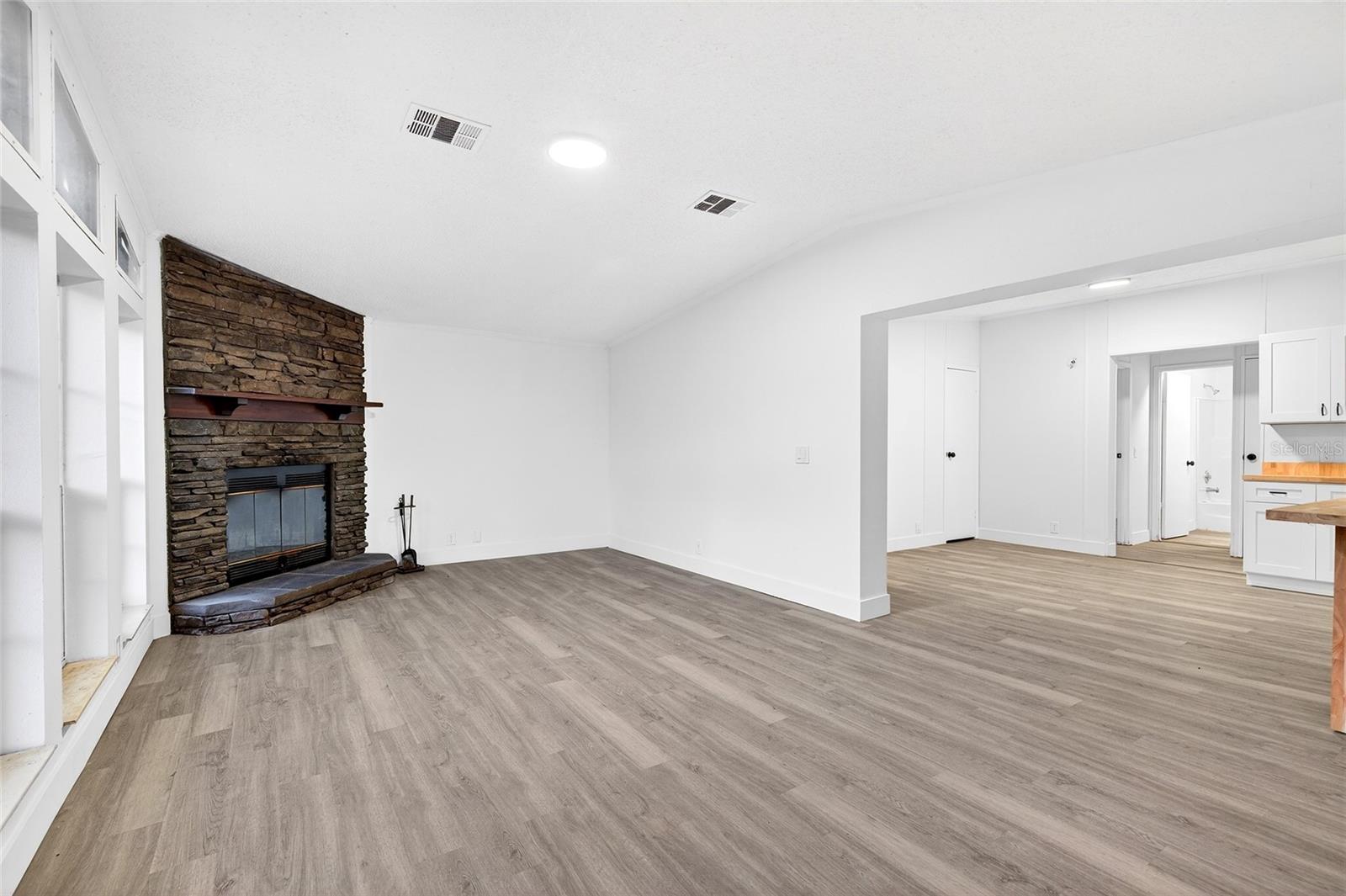 Welcome to this NO HOA and COMPLETELY RENOVATED home where space, style, and value come together in a home that’s truly move-in ready. This spacious 3-bedroom, 2-bath home offers over 2,200 square feet of living space and has been completely updated from top to bottom. Inside, you’ll find brand new luxury vinyl plank flooring throughout, fresh interior paint, modern lighting, updated utilities, and a full suite of brand new appliances. The open-concept layout is highlighted by expansive living areas filled with natural light, creating a bright and inviting atmosphere. A stunning stone fireplace serves as a focal point, adding warmth and character to the main living space. Oversized windows and French doors further enhance the home’s airy feel. The kitchen features updated cabinetry, butcher block countertops, modern fixtures, and a functional layout perfect for everyday living and entertaining alike. The primary suite offers generous space and includes a large en-suite bathroom with dual vanities, a soaking tub, and a separate shower—creating a comfortable private retreat. Situated on a .28-acre lot, this property offers a balance of outdoor space and low maintenance. If you’ve been waiting for a home that offers real space, modern updates, and unbeatable value—this is it.