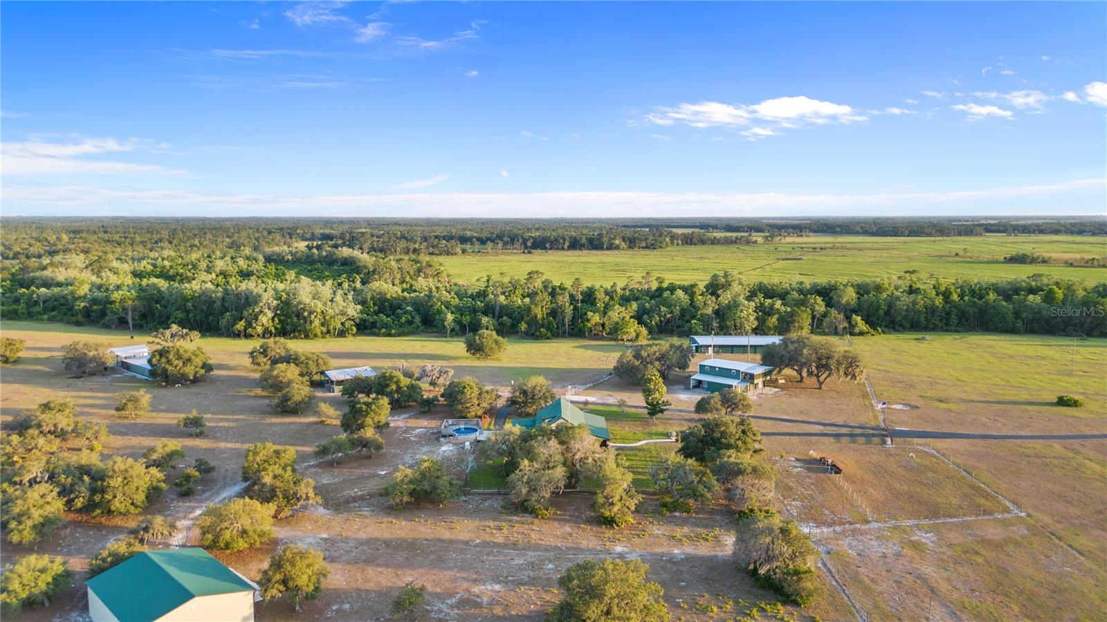 Spectacular, NATURAL FLORIDA SANCTUARY awaits the ultimate outdoor enthusiast! This outdoor hideaway with 285+/- acres boasts a custom-built 3,194 GSF home, pool, party barn, guest apartment, 5-stand for sporting clays, a 13+/- acre private fishing pond- stocked with largemouth bass and dock, improved pastureland, ideal hunting grounds with native, untouched oak hammocks, pine stands and palmetto scrub. Also included with the property are 5 buildable acres directly on Lake Buffum for quick access to some of the best fishing found in Polk County! This property has it all! Hunting, Fishing, entertaining, and relaxing in the beauty and privacy this sanctuary provides. Enjoy the picturesque sunsets on the private dock, while casting a line for largemouth bass on this 13-acre private fishing pond. The 5-acre buildable lot on Lake Buffum provides 225 feet of direct access on Lake Buffum. You will enjoy 1,268 acres of ideal fishing for largemouth bass, bluegill, and catfish right from the shoreline. Imagine waking up to the tranquil sound of lapping waves and the promise of a day filled with fishing adventures steps away from your doorstep, without the hassle of traveling, leaving you with more quality time spent outdoors. Explore the many winding trails through native oak hammocks, pine stands, and palmetto scrub, buffered by 3,178± acres of conservation land. Enjoy the outdoors and all the wild game this property has to offer! The custom-built main house is the heart of the ranch. Designed for entertaining and family gatherings, the home offers glorious waves of natural sunlight and spectacular views of the surrounding ranch. The welcoming front porch boasts gorgeous sunset views across Lake Buffum and the land. The timeless exterior is built to withstand the Florida seasons with a metal roof, and a 25 kW whole home generator. As you step through the front doors you will be welcomed into the open and airy main living area that flows seamlessly into the dining room and kitchen. Custom cypress woodwork, vaulted ceilings, hickory hardwood floors and cabinets, exposed beams, high-end finishes, and meticulous maintenance are some of the reasons why this home makes such a unique and lasting impression. The two-story home provides extreme privacy as the second bedroom and full bath are upstairs, next to the loft office. The master bedroom suite provides a sanctuary to relax with a gas fireplace, an ensuite bathroom with double vanity, walk-in-closet, and private access to the front porch where a hot tub awaits for you to unwind and enjoy the breathtaking country sunsets. Guess can make themselves at home within the privacy of their own 2-bedroom barn apartment, Located on the second floor of the the toy storage barn, the 784 SF apartment is equipped with a full kitchen, living room, and bathroom. The space is functional and spacious, with the best views of the property from the large screened-in porch. Good times will abound within the air-conditioned party barn with a built-in wet bar, private bathroom, outdoor fire pit, custom-built 5-stand for shooting sporting clays, two deer stands, and three wildlife feeders. This sportsman's paradise has it all! Flora, Fauna, Farm and FUN! Make an appointment to explore and experience this paradise today!