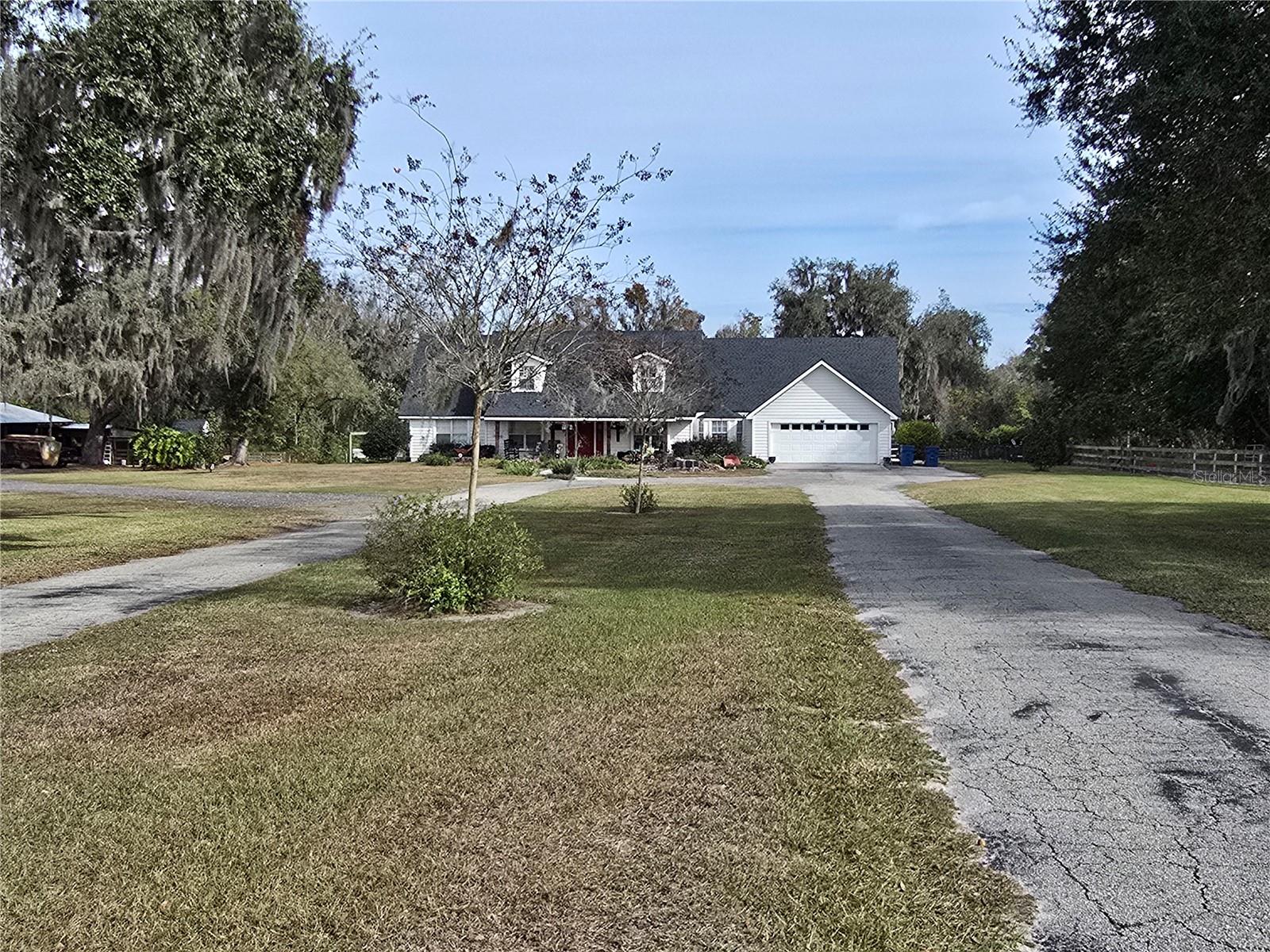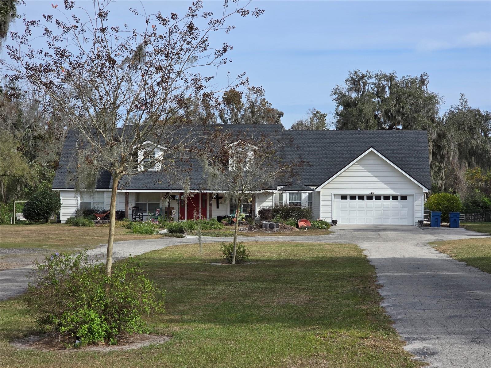 Enjoy peaceful country living in this spacious 4-bedroom, 2.5-bath home on over 5 acres. Features include ceramic tile flooring on the first floor, a first-floor primary suite with en suite bath and large walk-in closet, remodeled kitchen (Fall 2024) with new appliances and gas stove, and an oversized 2-car garage with butler’s pantry. The property is ideal for animals with various paddocks, feed barn, new lean-to, and metal barn. Outdoor highlights include a screened patio with brick flooring, above-ground pool with filtration system, and both county water and a well for irrigation. Paid-off solar system, newer roof (2022), one new A/C unit and another just 6 years old. USDA eligible!