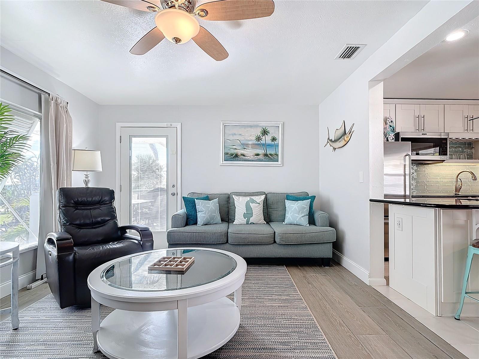 Welcome to your dream coastal retreat on Fort Myers Beach! This beautifully renovated Main house with attached efficiency apartment offers the perfect combination of modern comfort and beachside living. Located just steps from the sand, this gem is ideal as a full-time residence, vacation getaway, or lucrative rental investment. The main house features 2 spacious bedrooms/2 baths. The bright open floor plan connects living, dining, and kitchen areas, creating an inviting atmosphere for entertaining or family time. Fully renovated kitchen features stainless steel appliances, quartz countertops, range hood and ample storage space. The efficiency apartment offers flexibility and added privacy for guests or tenants. The functional kitchen is compact yet fully equipped for convenience. And a full bathroom with walk-in shower. Step outside to the shared balcony perfect for outdoor dining and lounging. The tropical landscaping complements the relaxed beach vibe of the property. Situated on the highly sought-after Oak Ridge Ave, you’ll enjoy easy access to pristine Fort Myers Beach. Nearby dining, shopping, and entertainment options as well as a vibrant community with a laid-back coastal lifestyle. Whether you’re seeking a personal oasis or a versatile income producing property, this duplex offers unmatched value and charm. Don’t miss your chance to own a piece of paradise!
