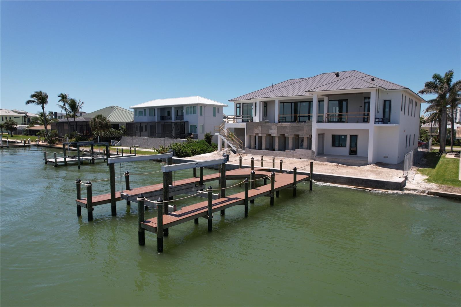 One or more photo(s) has been virtually staged. Under Construction. Imagine waking up daily to breathtaking panoramic views of the Back Bay and seamless access to the open Gulf, this is more than a home; built by renowned custom home builder, Alair Homes: it’s a lifestyle redefined. Nestled in Fairview Isles, which is well known as one of the island’s most vibrant and premier boating communities, this elevated pool home is an invitation to embrace the extraordinary. Skip the traffic and launch into adventure with your own 20,000 lb boat lift and new wood composite dock, designed for welcoming friends and family. Picture lively gatherings where you can invite guests to moor at your dock before heading upstairs to the elevated pool, spa, and outdoor lounge. This prime location was made for creating unforgettable memories together with the in-pool barstools, beverage ledge, water features, and fully equipped pool bathroom. Step inside to be captivated by a chef’s kitchen complete with a Butler's pantry, double waterfall edge islands, sub zero refridgation, gas Wolfe range, top tier appliances, just to name a few of the impeccable expectations of any culinary pro who's bringing their thoughtful dishes to life. Experience the timeless elegance of the Primary VIP suite, featuring a morning bar, decorative designer installation wall, 2 water closets, volume walk-in closets, and separate vanities – a perfect retreat designed for your comfort and privacy. Each of the remaining 3 Junior VIP suites have been thoughtfully prepared with fully equipped bathrooms and scenic views from each room. The Den is an ideal quiet sanctuary and the expansive, open living space is enhanced by impressive 12-foot floor-to-ceiling pocket sliding doors that invite the shimmering outdoors into your living area, blurring the lines between inside and out. Every detail of this home has been meticulously crafted, showcasing thoughtful designer features and a blend of contemporary vibes with warm woods and industrial dark metals. With everyone together on one level, entertaining is effortless, and maintaining this luxurious home is a breeze. The grand entryway sets an impressive tone, ensuring every visit feels like a special moment. This home has been designed and reinforced for all weather conditions. Such improvements include a 18 inch raised seawall that spans 100 feet wide with protective returns, elevated living space over parking matched with the current code requirements, all impact glass windows/doors, storm rated garage doors, and the entryways were all built with protective measures for year round peace of mind. This property has underbuilding parking to accomodate up to 12 vehicles and a "H shaped driveway" to accomodate more curbside vehicles. This is not just a home; it’s an unparalled opportunity that promises a dynamic lifestyle where unforgettable moments await to be curated. Seize the opportunity to own this legacy property on Fort Myers Beach and embark on your next experience today!