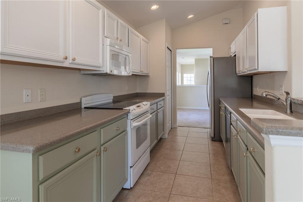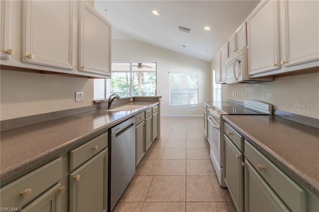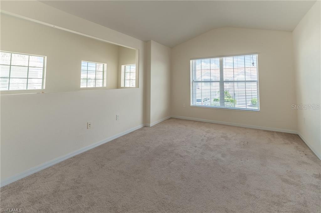 Discover this spacious 1,650 sq ft carriage home nestled in the desirable Majestic Palms community of Fort Myers! This property boasts a new tile roof, freshly painted exterior, and convenient accordion storm shutters, providing peace of mind during our stormy Hurricane season! Recently vacated by tenants, this home presents an excellent opportunity for those looking to add their personal touch and remodel to their liking. The sellers have priced this home to reflect its potential, making it an attractive investment for buyers eager to create their dream space in one of Fort Myers' most sought-after communities. With vaulted and elevated ceilings throughout the unit, the space seems larger than what the tax record reflects! HVAC is 3 years old and blows cold! Master bath features dual-sink vanities and spacious walk-in shower. Den can be used as an extra sleeping space or makes a perfect office! Tons of counter and cabinet space in the kitchen. This very peaceful, well-maintained and pet-friendly community is where it's at!!! With easy access to nearby beaches, shopping, dining, and entertainment, this carriage home offers both convenience and the opportunity for customization. Don't miss your chance to own in Majestic Palms and make this property uniquely yours!