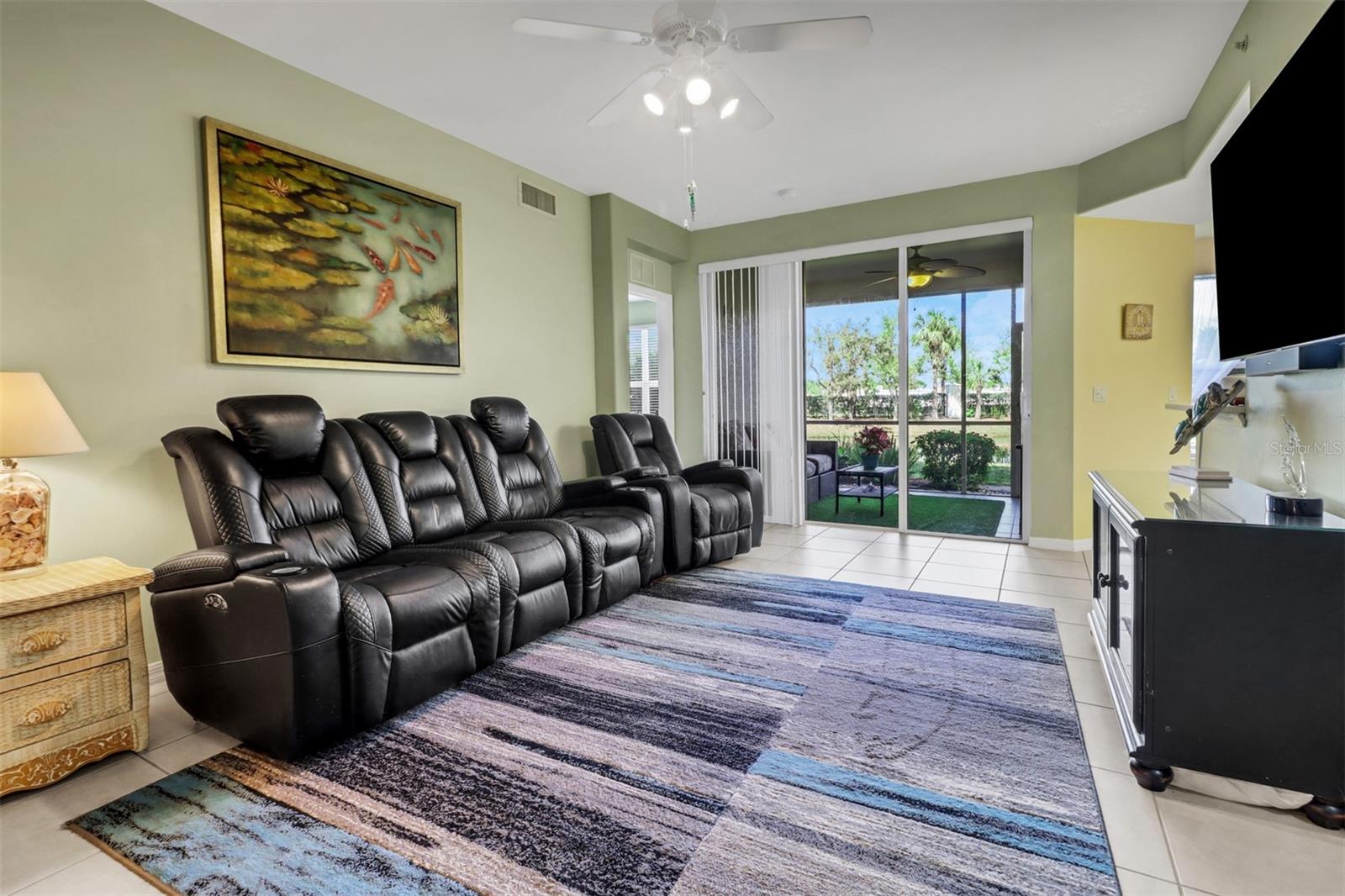 Immaculate 2-Bedroom Plus Den, First-Floor End Unit with Stunning Lake Views This beautifully maintained 2-bedroom, 2-bathroom plus den end unit offers an abundance of natural light and breathtaking lake views. Situated on the first floor, this home is perfect for those who want easy access and extra privacy with additional windows providing an open and airy feel. Key Features: This end-unit home boasts extra windows, filling the living spaces with natural light and providing serene, sweeping views of the lake. The sleek, modern kitchen features top-of-the-line stainless steel appliances, gorgeous quartz countertops, and plenty of space for meal prep. The dinette includes a movable island, offering flexibility for extra storage and workspace. The open floor plan allows for easy flow from the kitchen to the living area, perfect for entertaining or relaxing with family and friends. Custom Built-In Entrance: A stunning custom-built, lit glass curio in the entranceway is ideal for showcasing your prized possessions, creating an impressive focal point. Updated Bathrooms: Both bathrooms feature updated quartz countertops for a modern and fresh look. The guest bathroom is enhanced with a unique glass bowl sink for a stylish touch. The enclosed lanai is a versatile space, where all windows can be opened to enjoy cooler weather. It’s the perfect room to unwind or take in the beautiful surroundings year-round. One-Car Garage: The attached one-car garage provides ample storage space, keeping your home organized and clutter-free. Additional Updates: Included with the home are a brand new AC unit, washer, and dryer for your convenience and comfort. Home also has Accordian type hurricane protection This stunning property is a true gem, offering comfort, style, and lakefront living in one amazing package.