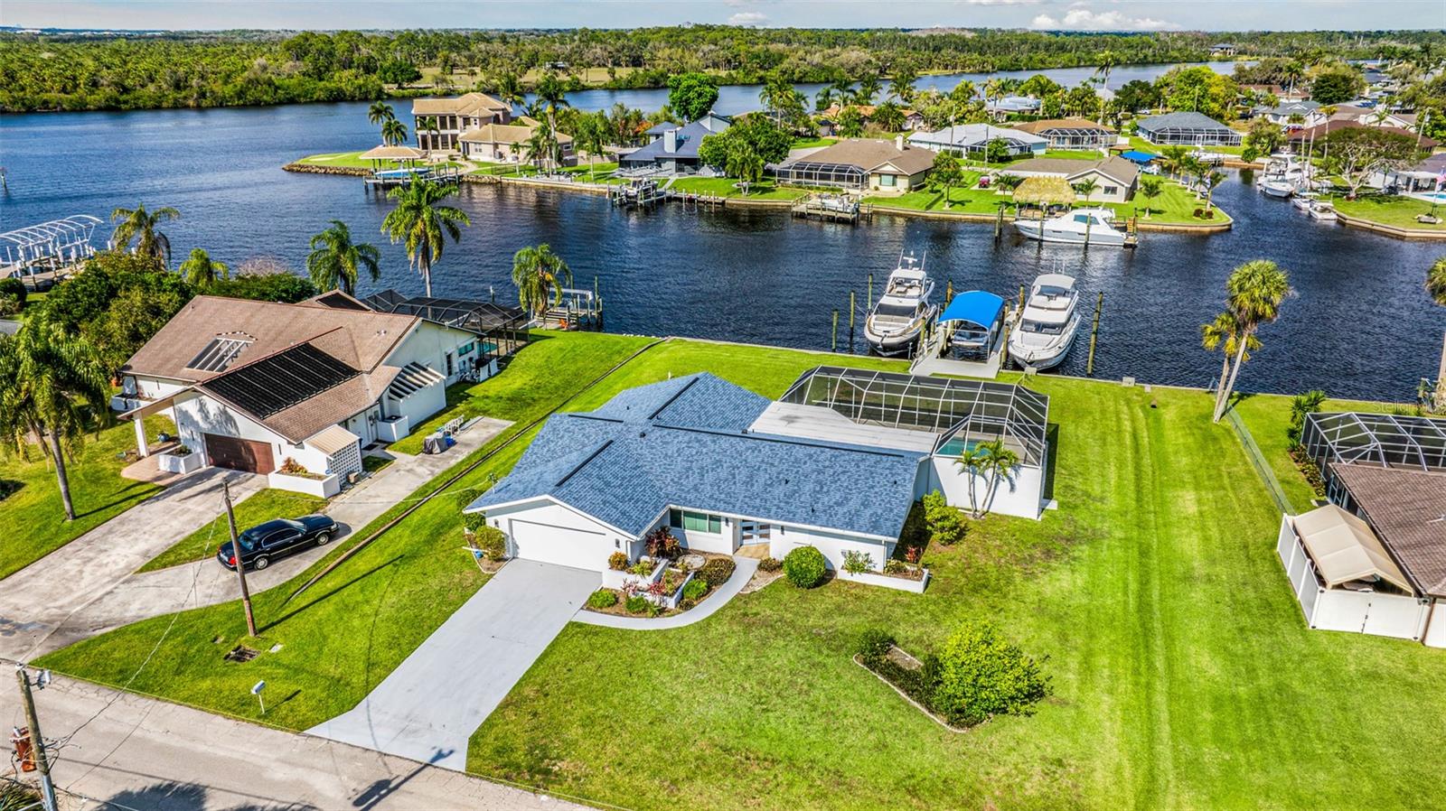 A boaters dream! This gorgeous 3 bedroom, 2 bathroom pool home sits on an oversize waterfront lot and has been meticulously renovated with thoughtful design. The home features top of the line appliances, laminate flooring, custom cabinetry, a seperate island w/ a wine cooler, impact resistant doors and windows, and a large screened in pool. The house is perfect for those boating enthusiasts, as it features a large composite dock, with two 58' boat slips, a 10,000lb lift, and a 50 amp hookup. Not to mention the location allows for direct Gulf Access, and protective harborage for larger boats. This opportunity is sure to go fast, so don't miss your chance to own the perfect boaters home!