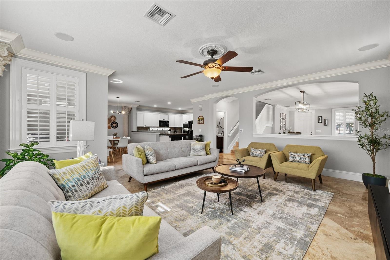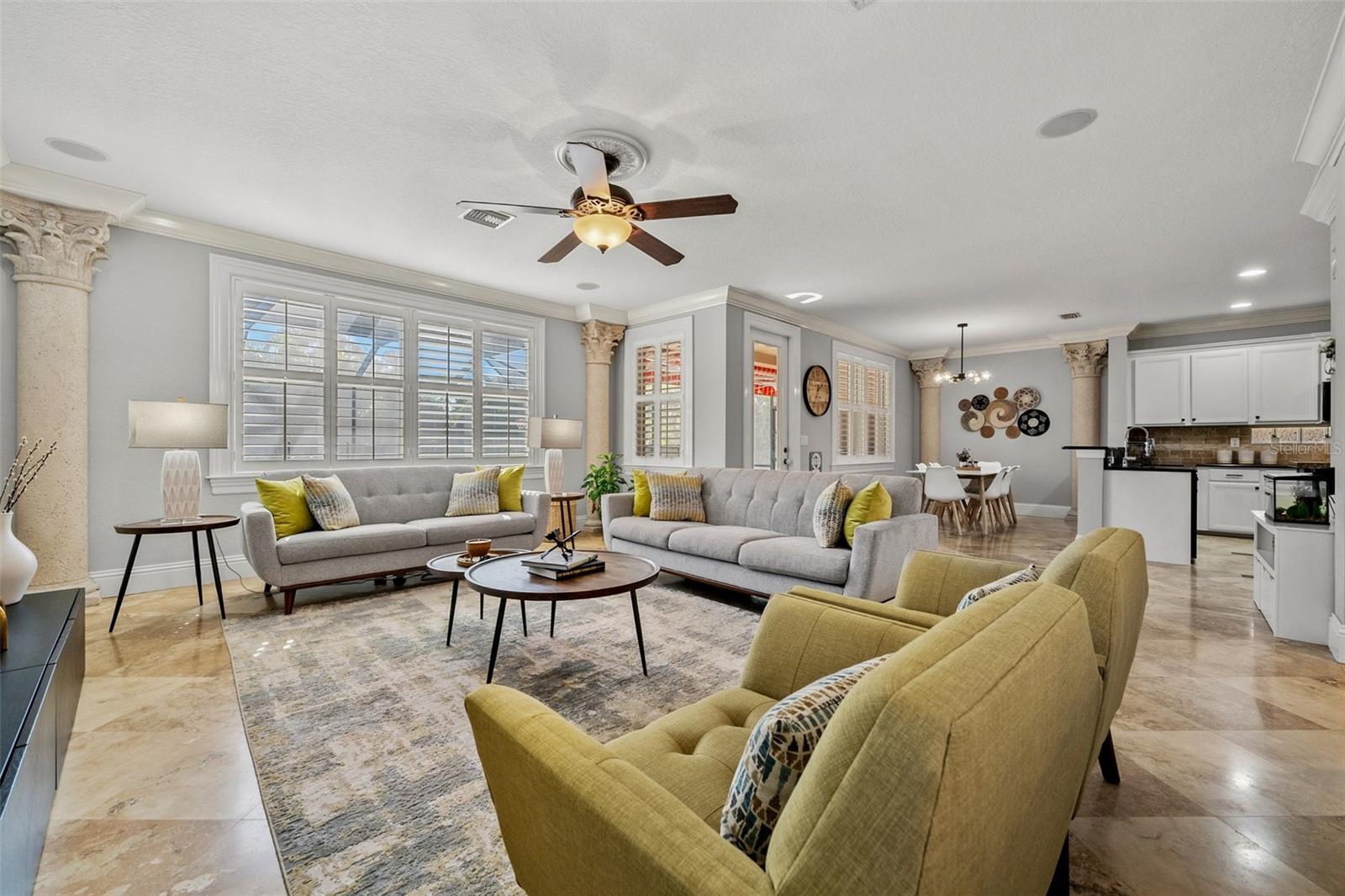 Huge Price Adjustment - Don't Miss Out!! This spacious 5-bedroom, 4.5-bathroom heated in ground pool home in the gated community of Catalina Isles offers the perfect blend of style, comfort, and functionality with over 3,100 sq ft of living space. The first floor features an OPEN-CONCEPT LAYOUT with a SPACIOUS KITCHEN, dining area, living room, family room, pantry, laundry room, and guest half-bathroom, making it ideal for entertaining. High-end finishes include TRAVERTINE TILE FLOORS, CROWN MOLDING, and PLANTATION SHUTTERS. Upstairs, you will find all FIVE BEDROOMS PLUS A LOFT, currently used as an office, providing ample space for a growing family or guests. The PRIMARY SUITE is a true retreat with TWO WALK-IN CLOSETS WITH CUSTOM SHELVING and TWO SEPARATE PRIMARY BATHROOMS CONNECTED BY A SHARED SHOWER, a rare and luxurious feature. Step outside to your HEATED INGROUND POOL and EXPANSIVE BRICK PATIO with lush landscaping for added privacy, perfect for enjoying Florida's year-round sunshine. This home also features a DURABLE TILE ROOF and is situated in a community with RESORT-STYLE AMENITIES, including a POOL, GYM, PLAYGROUND, and SCENIC LAKE. Catalina Isles offers a LOW HOA FEE of just $375 per month, which INCLUDES CABLE, INTERNET, LAWN CARE, and COMMUNITY MAINTENANCE. Located in South Fort Myers, this community provides QUICK ACCESS TO BEACHES, SHOPPING, TOP-RATED SCHOOLS, DINING, HOSPITALS, ENTERTAINMENT AND MORE. Check out the VIDEO and 3D VIRTUAL TOUR and schedule your PRIVATE SHOWING today!
