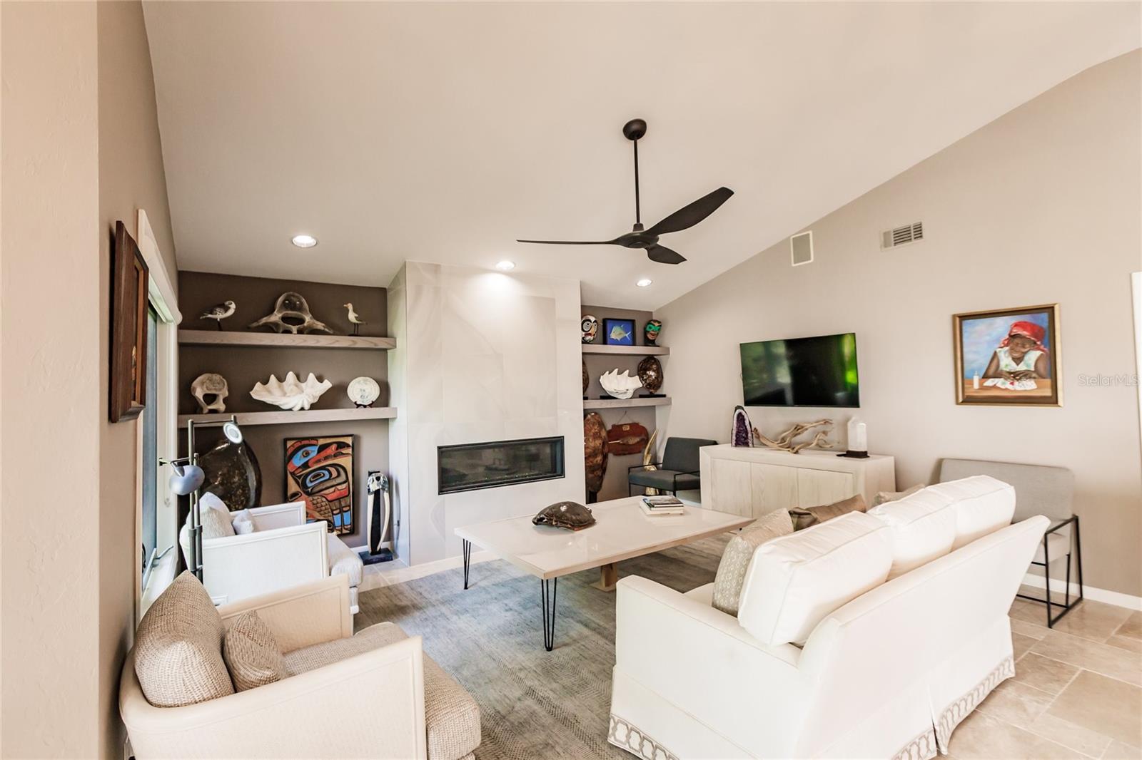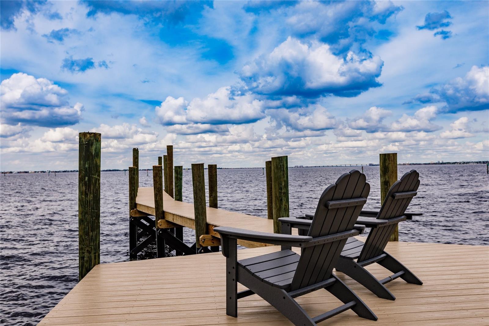 Enjoy resort style living in this sailboat gulf access riverfront 4 bedroom pool home located in the gated community of The Shores of Caloosa which is part of the Caloosa Yacht & Racquet Club. Spectacular view of the river from all main living areas with bright and open floor plan. There’s plenty of room for family and friends with almost 3,000 square feet of living space, great room, dining room, family room, 4 bedrooms, and 3 baths. Stroll down the brick paved walkway surrounded by lush tropical foliage to the new dock with observation deck to watch the sunsets or fish. Park your boat at your private dock or keep your boat at the community marina. This fabulous home has been totally updated and remodeled including newer tile roof, 2 new AC Units (zoned 1st & 2nd floor), new tile and wood flooring, soaring volume ceilings with plant shelves, built-in bar in great room complete with wine fridge, custom decorated baths, color accent walls with crown molding, custom window treatments & plantation shutters, and decorator light and fan fixtures. Kitchen is a chef’s dream with warm wood cabinetry, quartz countertops with tile back splash, stainless appliances, including 3 door fridge, island with cook top, and pantry. Enjoy your morning coffee at the casual dining area adjacent to the kitchen with wall-to-wall windows overlooking the river and pool area. Kitchen opens to the family room for easy entertaining that has a contemporary gas fireplace to cozy up to on those cooler evenings. Retreat to your 2nd floor master suite with 2 walk in closets and surrounded by windows to enjoy the spectacular water view. Or relax in your separate sitting area for some quiet time. Then unwind in your luxurious en suite bath with custom tiled Roman shower, his and her sinks, and soaking tub. You will spend much of your leisure time lazing in your pool overlooking the river. And entertaining will be a breeze under your spacious brick paved covered patio, grilling area, and additional patio with trellis. Other key features include dedicated laundry room with front load washer & dryer, overhead cabinets and work counter, impact windows and storm shutters, whole house generator with underground propane tank for peace of mind during inclement weather, irrigation system, paver stone driveway, pool deck, and patio, and professionally designed landscaping with mature trees and lush tropical foliage. Caloosa Yacht & Racquet Club amenities include access to the restaurant, clubhouse, community boat slip/dock, Olympic sized pool, marina, park, tennis, and pickleball. Plus The Shores at Caloosa amenities include gated entrance and lawn care. This spectacular home has it all and is the ideal home for the Florida lifestyle. Don’t miss this one!