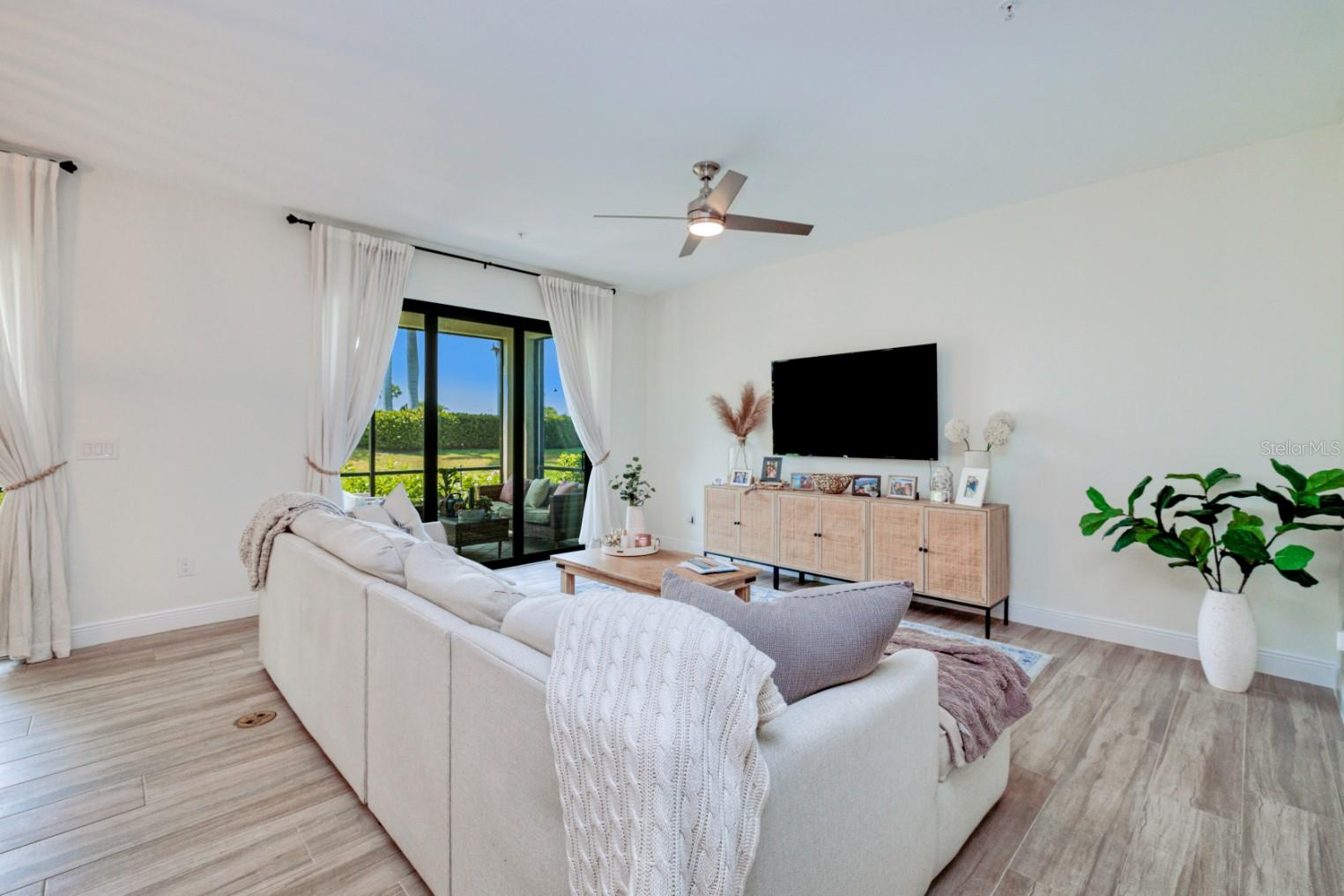 Enjoy the BEAUTIFUL SUNSETS from your lanai with this Stunning Resort Style first floor end unit. This 2 Bedroom, 2 Bathroom, 1 Car Garage home PLUS a Den is MOVE IN READY and is Located in the Amazing Community of Arborwood Preserve. Have PEACE OF MIND knowing this home had NO FLOODING and NEVER LOST POWER during Hurricane Helene or Hurricane Milton. Featuring plank tile flooring in the main living areas, a bright & open floor plan, recessed & pendant lighting and SO MUCH MORE!! Spend quality time with friends and family in the open living and dining room while you cook up family favorites in the kitchen. The kitchen offers ALL stainless-steel appliances, granite countertops, a closet pantry, and an island with a breakfast bar. The spacious master bedroom has a tray ceiling and a private bathroom with dual sink vanity, tiled walk-in shower, private toilet and a large walk-in closet. The guest bedroom is on a split floor plan offering plenty of privacy with a built-in closet and nearby guest bathroom. The covered lanai is the perfect spot to sip your morning coffee or wind down with your favorite even beverage with a lovely water view! UPDATES INCLUDE NEW AC 2023 - PLANK TILE FLOORING 2022 - KITCHEN BACK SLASH 2022 - PAINT 2022 - CUSTOM MASTER CLOSET 2022 - CEILING FANS IN EACH ROOM 2018. Arborwood Preserve has a variety of activities to keep your social with a clubhouse theater, card/craft & board rooms, fitness studio, coffee lounge, resort style pool, tennis/pickleball/bocce ball courts, outdoor dining & bar, and a fire pit. Don't miss out on Resort Style Living, schedule your showing TODAY!!!
