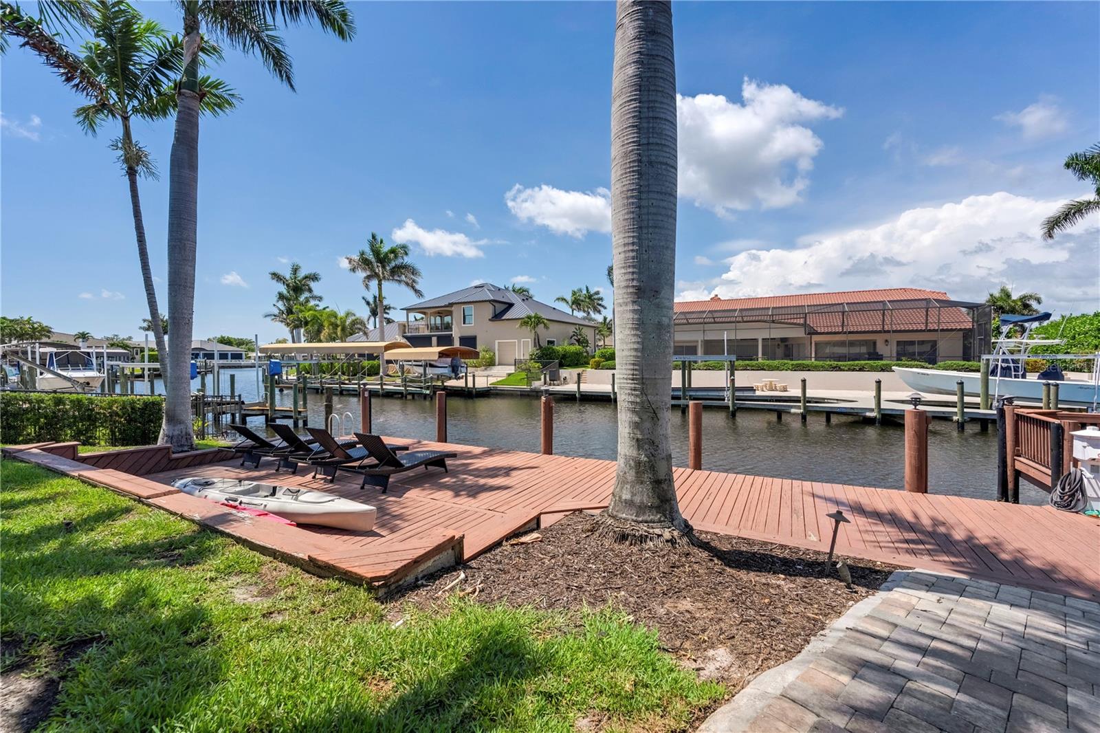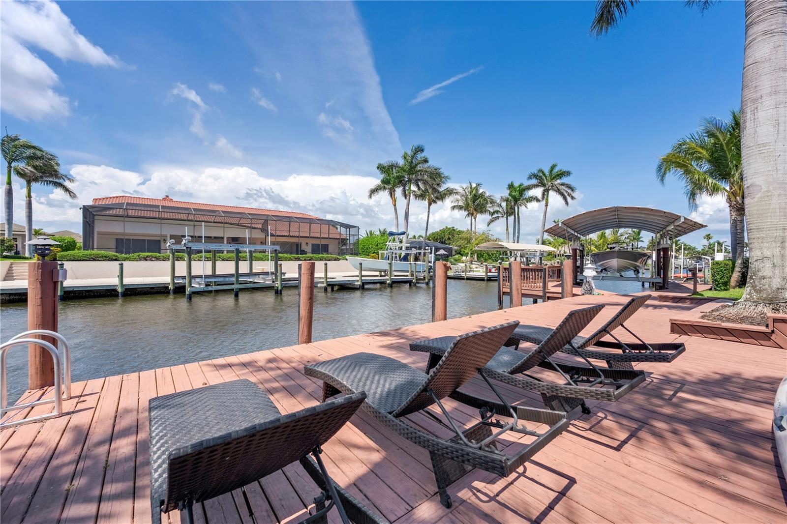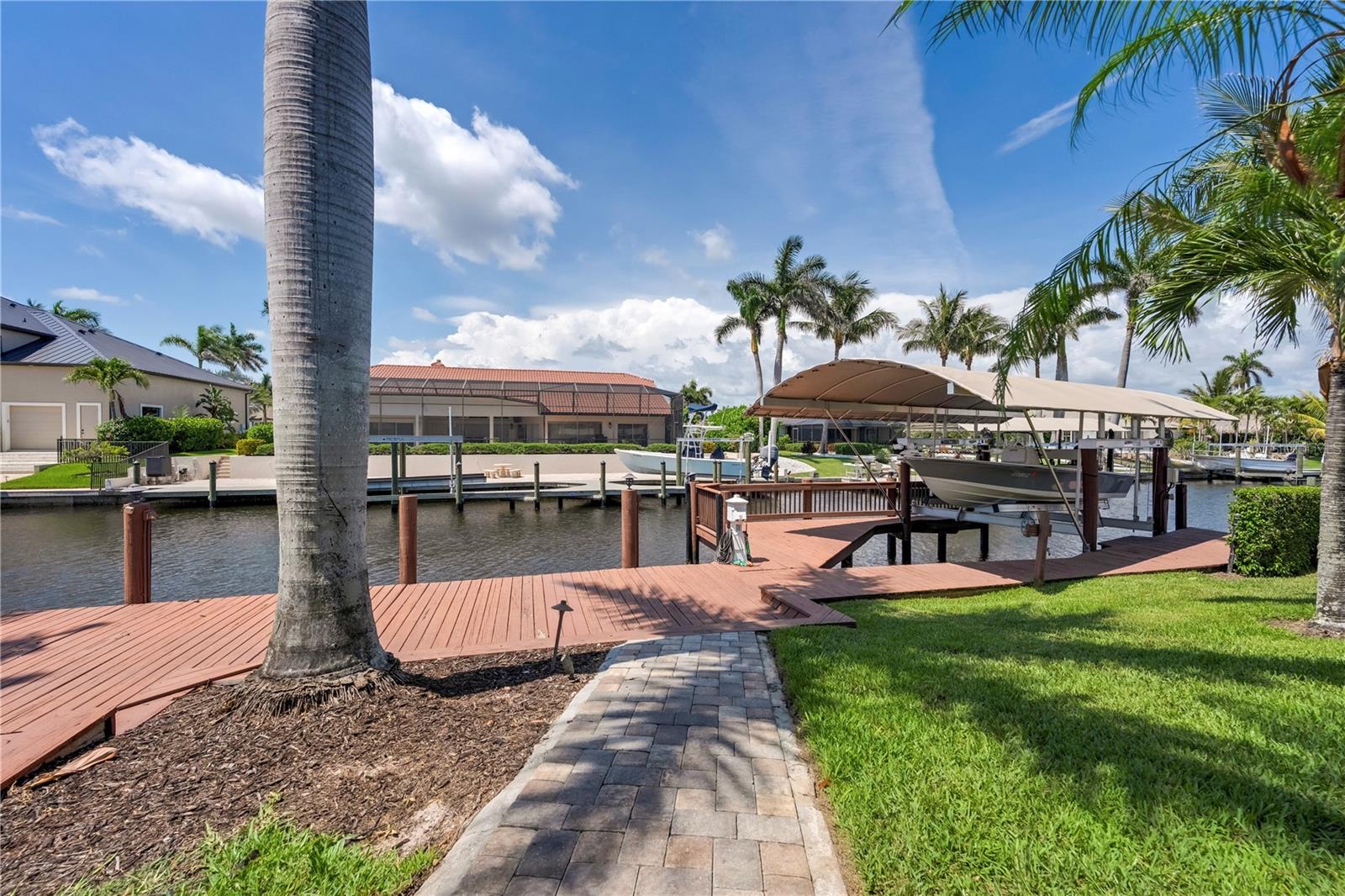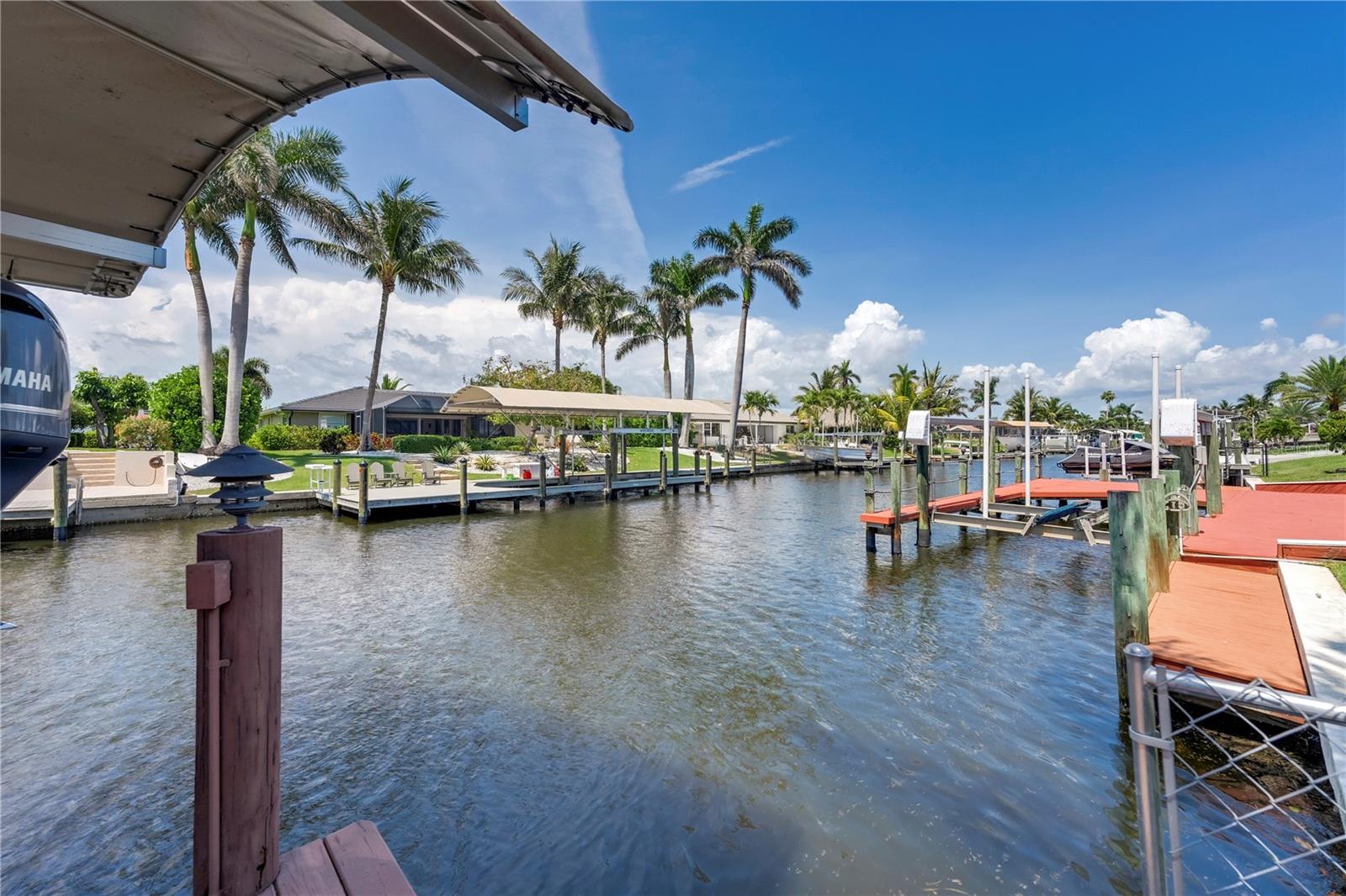 Nestled in one of Southwest Florida’s most prestigious Gulf-access communities, this impeccably remodeled residence offers a refined blend of elegance, functionality, and location. Boasting nearly 2,700 square feet of living space, this 4-bedroom, 3.5-bathroom home is designed to impress both inside and out. From the moment you step onto the charming front patio and through the entry, you’re greeted by expansive water views and a seamless open-concept layout that invites you to relax and entertain. Two luxurious primary suites provide ultimate comfort, each with custom-designed closets and spa-inspired bathrooms—one featuring a sleek bidet and both offering ample space for privacy or hosting. Two additional guest bedrooms ensure space for family and visitors alike. The kitchen is a chef’s dream, complete with granite countertops, premium cabinetry, and open sightlines to the living and family rooms, all of which flow effortlessly to the outdoors. The property features also a built-in wine cooler and wet bar. Disappearing sliders lead to an oversized screened lanai and pool deck—perfect for year-round enjoyment. A brand-new pool heater ensures comfortable swims in any season, while the expansive dock with newly repaired decking provides a spectacular space for gathering or taking in the stunning long canal views. The 14,000 lb boat lift and 60' slip, equipped with water and electric, make this a boater’s paradise—offering direct access to the Caloosahatchee River, Pine Island Sound, and the Gulf of Mexico. Additional upgrades include two brand-new A/C units (2024), a new roof (July 2024), hurricane-impact doors and windows, Sonos surround sound throughout, and a fully finished garage. The entire home has been meticulously remodeled, offering modern finishes, a comprehensive security system, and sophisticated custom cabinetry throughout. Perfectly located in the heart of South Fort Myers, with quick access to beaches, RSW Airport, hospitals, dining, and Sanibel-Captiva, this waterfront gem is move-in ready and truly one-of-a-kind.