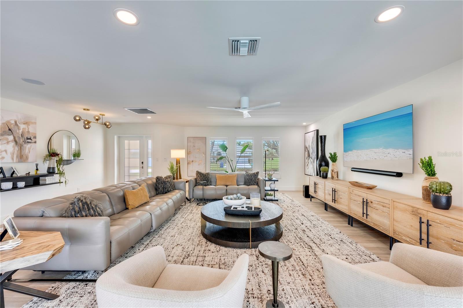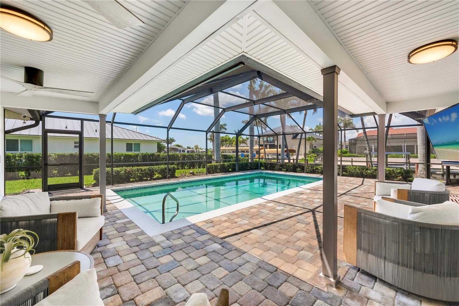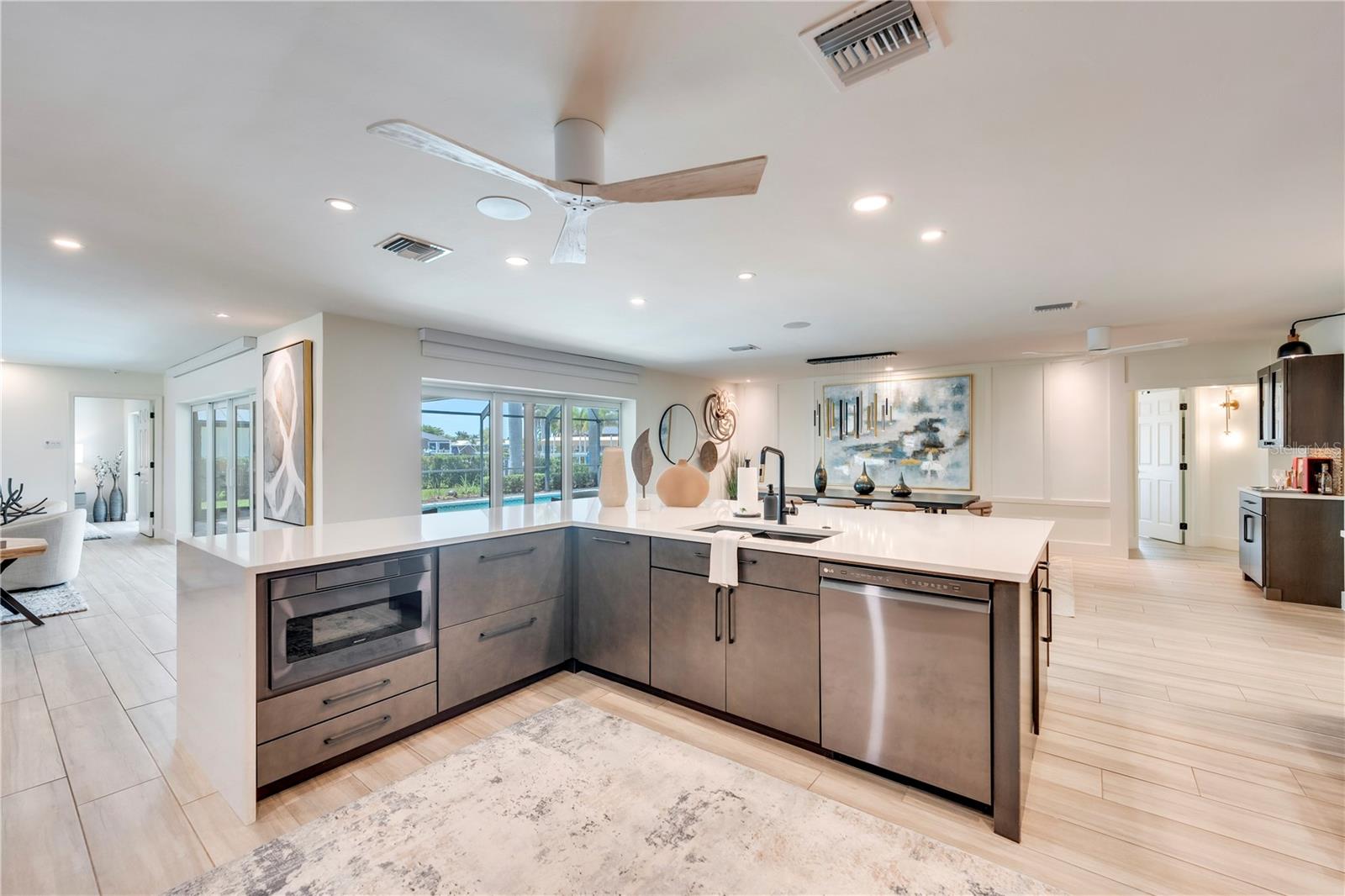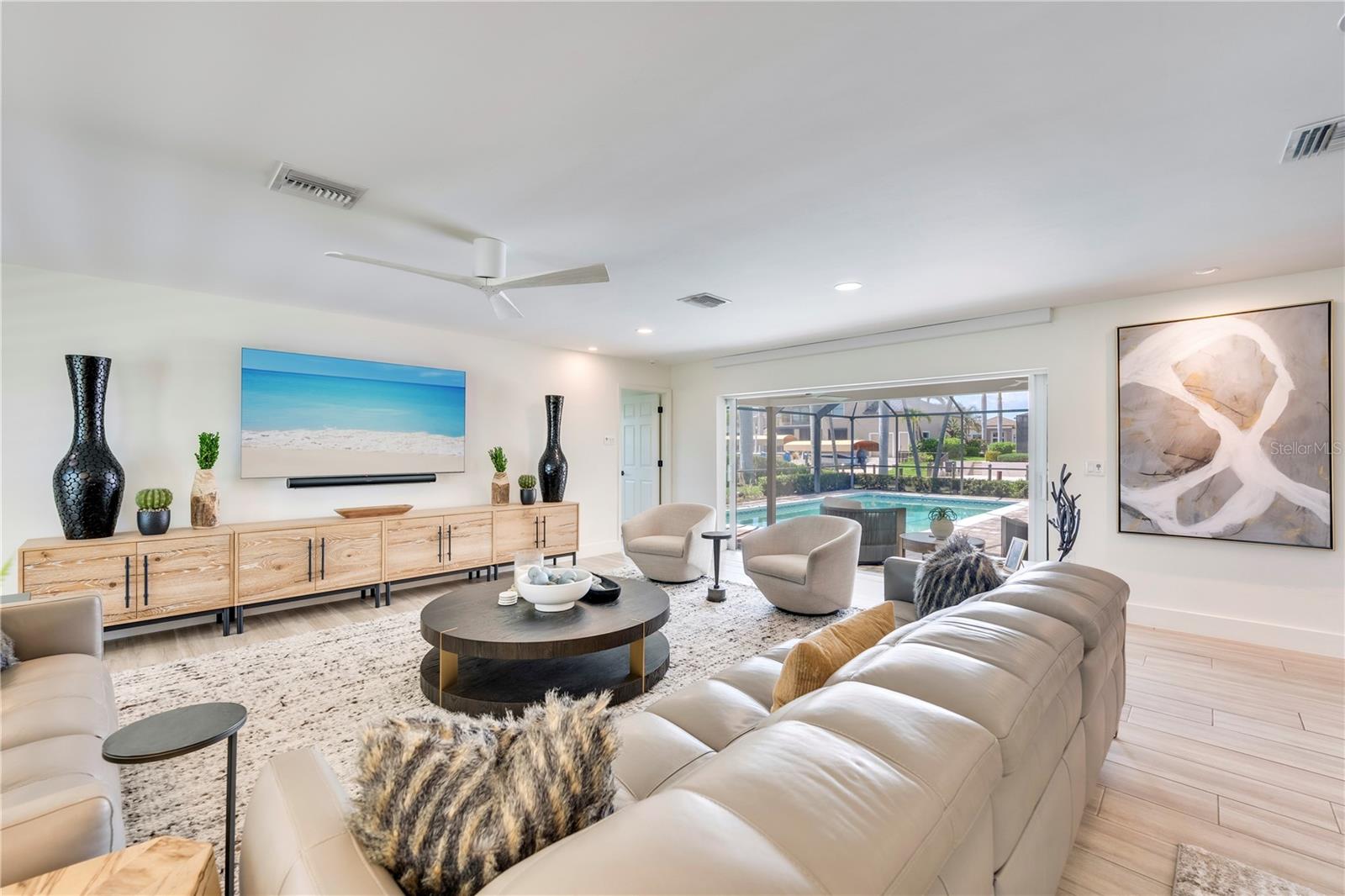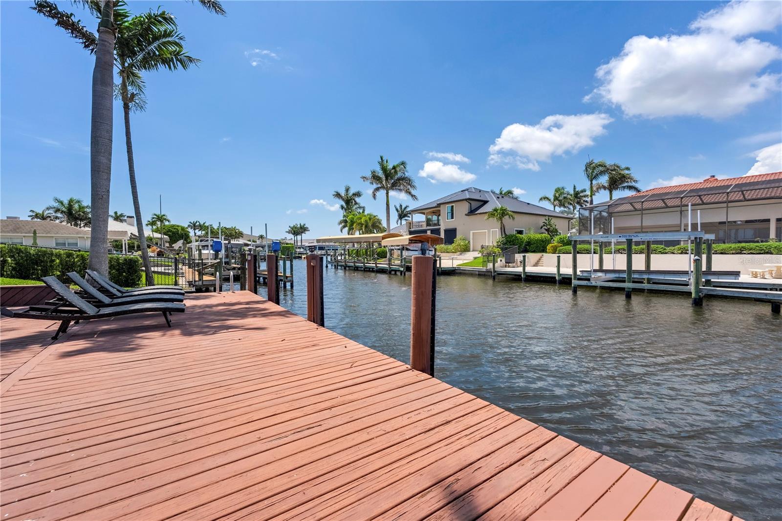 Nestled in one of Southwest Florida’s most prestigious Gulf-access communities, this impeccably remodeled residence offers a refined blend of elegance, functionality, and location. Boasting nearly 2,700 square feet of living space, this 4-bedroom, 3.5-bathroom home is designed to impress both inside and out. From the moment you step onto the charming front patio and through the entry, you’re greeted by expansive water views and a seamless open-concept layout that invites you to relax and entertain. Two luxurious primary suites provide ultimate comfort, each with custom-designed closets and spa-inspired bathrooms—one featuring a sleek bidet and both offering ample space for privacy or hosting. Two additional guest bedrooms ensure space for family and visitors alike. The kitchen is a chef’s dream, complete with granite countertops, premium cabinetry, and open sightlines to the living and family rooms, all of which flow effortlessly to the outdoors. The property features also a built-in wine cooler and wet bar. Disappearing sliders lead to an oversized screened lanai and pool deck—perfect for year-round enjoyment. A brand-new pool heater ensures comfortable swims in any season, while the expansive dock with newly repaired decking provides a spectacular space for gathering or taking in the stunning long canal views. The 14,000 lb boat lift and 60' slip, equipped with water and electric, make this a boater’s paradise—offering direct access to the Caloosahatchee River, Pine Island Sound, and the Gulf of Mexico. Additional upgrades include two brand-new A/C units (2024), a new roof (July 2024), hurricane-impact doors and windows, Sonos surround sound throughout, and a fully finished garage. The entire home has been meticulously remodeled, offering modern finishes, a comprehensive security system, and sophisticated custom cabinetry throughout. Perfectly located in the heart of South Fort Myers, with quick access to beaches, RSW Airport, hospitals, dining, and Sanibel-Captiva, this waterfront gem is move-in ready and truly one-of-a-kind.