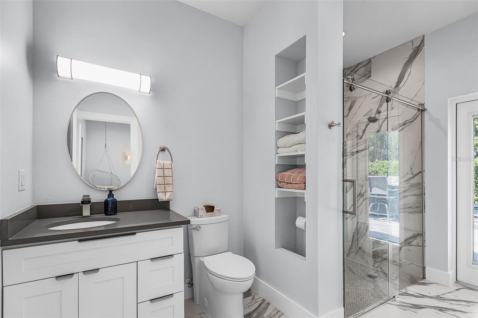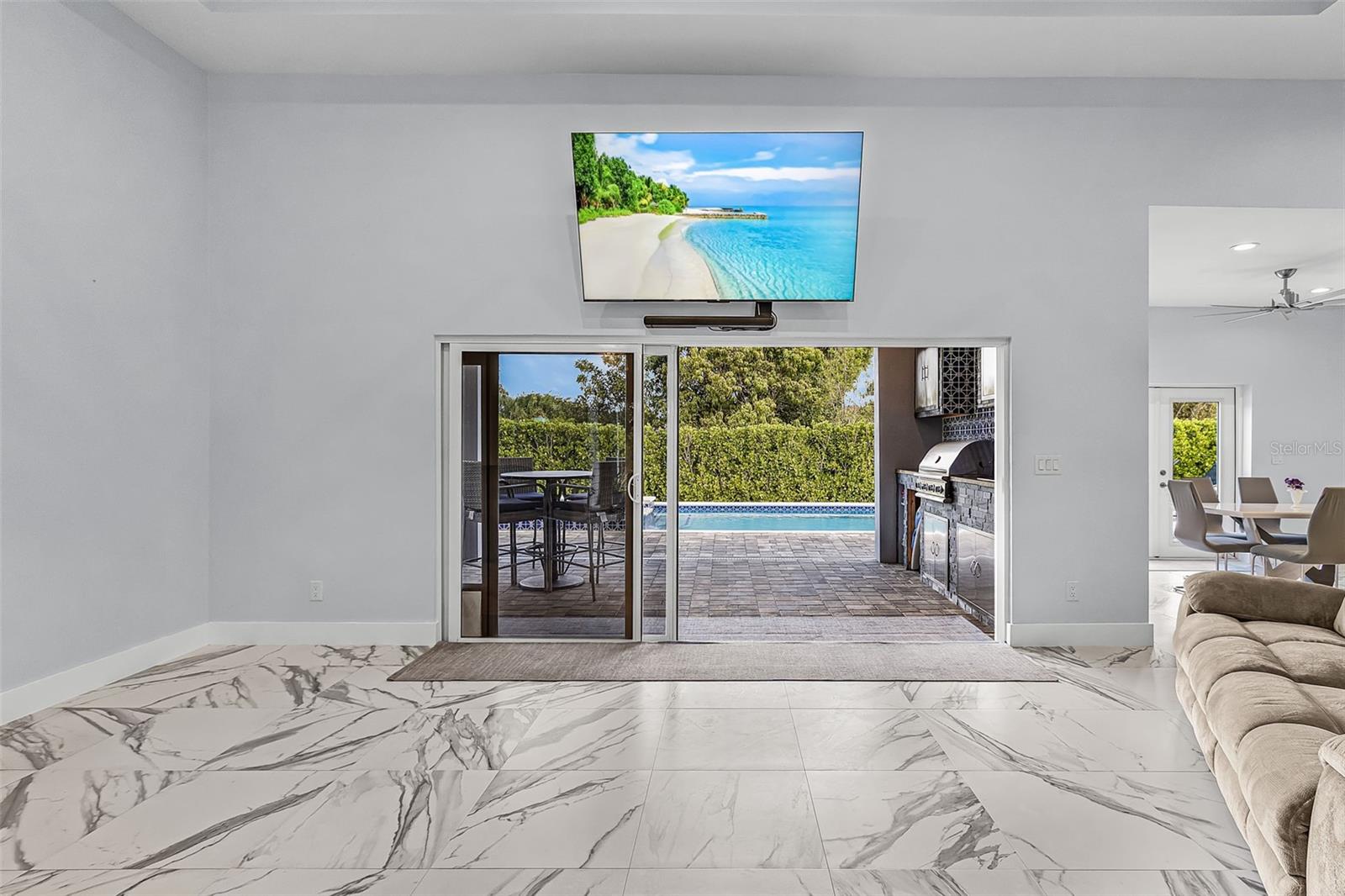 Experience refined living in this exceptional 2024 custom-built estate, where modern luxury meets thoughtful design and superior construction. Offering 3 bedrooms plus a den, each bedroom features its own private en-suite bath, complemented by an additional guest bath for ultimate convenience and privacy. A standout feature of the property is the detached 1-bedroom, 1-bath private apartment, ideal for hosting guests, multigenerational living, or generating income—all with complete separation from the main residence. At the heart of the home, the designer chef’s kitchen impresses with a twin refrigerator, range with oven, and a separate double wall oven—perfectly suited for elevated entertaining and everyday luxury. Built to the highest standards, this residence showcases ICF construction, spray foam attic insulation, a brand-new metal roof, and an elevated foundation positioned approximately one foot above required standards, offering enhanced storm resilience all at one level with no steps, energy efficiency, and potential savings on insurance costs. A whole-house water filtration system adds an additional layer of comfort and quality throughout. Car collectors and hobbyists will appreciate the oversized 3-car garage plus an additional detached 1-car garage, while custom built-in cabinetry throughout the home provides both elegance and exceptional storage. Set on a beautifully fenced 1/3-acre oversized lot, the outdoor living space is designed for relaxation and entertaining, featuring a spacious patio overlooking a resort-style saltwater pool and spa, along with expansive green space for pets or play. This one-of-a-kind property seamlessly blends luxury, efficiency, and versatility—offering a rare opportunity to own a truly distinguished home.