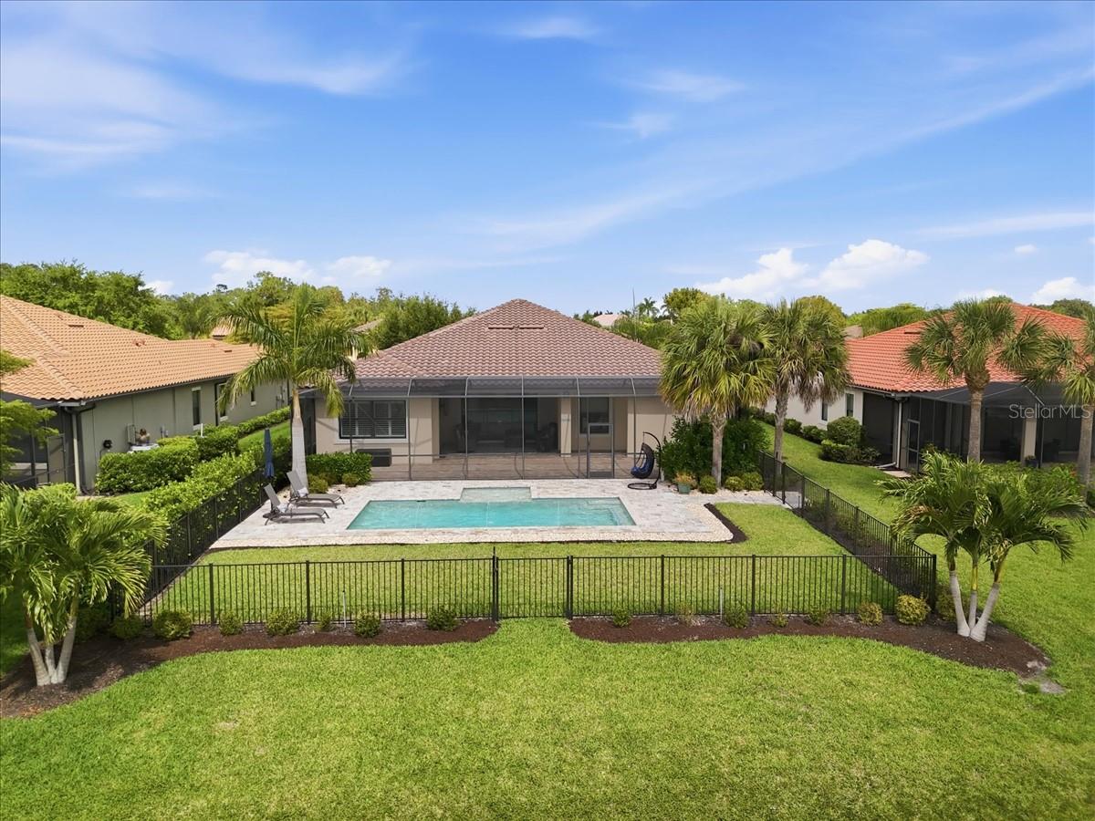It doesn't get better than this 2013 built WCI Correggio Model Home with 8' doors in the coveted Hampton Park Community. This beautifully maintained home is just waiting for you to make your memories and dreams come true. With over 2400 sq ft, this 3 bedroom, plus a den, 2 bath, open floor plan offers an abundance of storage, an oversized screened in lanai for entertaining, and lets not forget that VIEW!!!! This home sits back in Hampton Park on a .33 acre lakefront lot, open air heated saltwater pool and completely fenced in backyard. Notable highlights include, tile throughout with wood plank tile in bedrooms, newer appliances (Refrigerator replaced in November of 2025), brand new AC unit (August of 2025), 42" soft close cabinetry with under and over cabinet lighting, plantation shutters, new washer and dryer (August of 2025), new light fixture in the breakfast nook as well as master bathroom, and fresh exterior mulch. Home has whole room surround sound, battery backup for overhead garage door, paver decking on lanai, around the pool and driveway, extra enclosed storage on lanai, and screened in front entry porch. Hampton Park not only offers Xfinity Cable, fiber optic internet and gated entry, they also have a fitness center, heated pool, billiards room, playground, pickleball and basketball courts, with stainless steel grills with fireplace poolside, rounding out the amazing resort style amenities. Property is located in FLOOD ZONE X, which means FLOOD INSURANCE is NOT required. Call to schedule your private showing today, you won't want to miss this one.