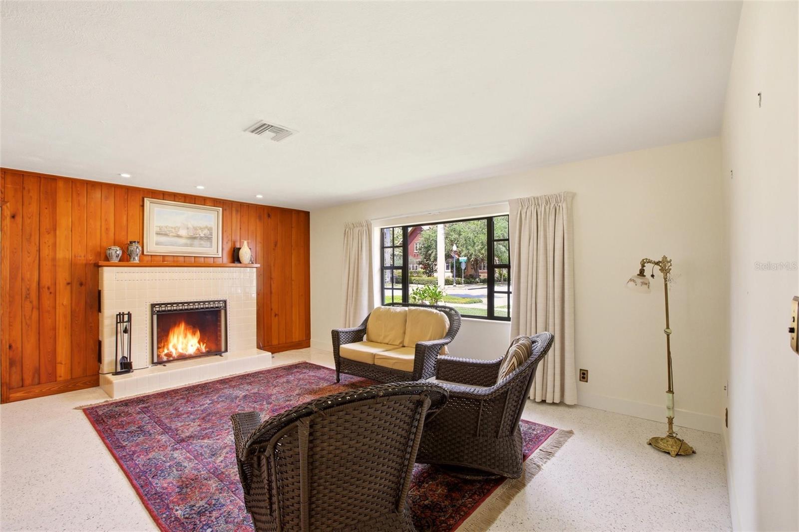 This 3-bedroom, 2-bathroom ranch-style home is set on an expansive .39-acre lot adjacent to the beautifully landscaped Triangle Park. Situated in the heart of the prestigious Dean’s Park Historic District, this charming residence captures the essence of classic Florida living. Renowned for its historic significance, picturesque streets, and enduring charm with no HOA! The fully fenced backyard provides exceptional privacy and generous outdoor space with a historic Banyan tree to provide shade in the hot summers. An attached covered carport offers convenient protection, while an additional paved area allows for ample parking—ideal for multiple vehicles or a boat. Significant improvements add peace of mind, including a whole house water filtration system, new plumbing in 2025, newer roof in 2019, and a tankless water heater 2023. The welcoming foyer opens into a spacious family room. Terrazzo flooring flows throughout the home, enhancing its clean lines and timeless appeal. Abundant natural light highlights the open, airy layout, while the central living space transitions seamlessly into the newly updated kitchen. Thoughtfully redesigned, the kitchen features an open layout to the dining/living areas. Highlights include 2023 appliances, professional-Bartazzoni gas range with a stainless vent hood, Bespoke refrigerator, new wine cooler, quartz countertops with lighting underneath for elegance and charm. An expansive peninsula offering additional prep space and casual seating. Light-finished upper cabinetry, including glass-front display cabinets, is beautifully balanced. A tile backsplash, recessed lighting, and a window over the sink complete this stylish and functional space. The living room is anchored by the refurbished original fireplace with a tiled surround set against a rich wood-paneled accent wall. The primary suite features a beautifully updated, spa-inspired bathroom. A glass-enclosed walk-in shower showcases floor-to-ceiling tile and sleek fixtures for a bright, streamlined look. A floating stone vanity with an integrated sink and contemporary hardware pairs elegantly with modern lighting. Two additional guest bedrooms are generously sized and share a vintage full bathroom that reflects the home’s timeless character. Additional interior highlights include a dedicated laundry room with utility sink. An attached utility shed adds even more convenience for tools and equipment and another detached 160-square-foot shed with electric. Step outside to a peaceful, private backyard designed for relaxation and entertaining. A spacious paver patio creates an inviting outdoor living area, ideal for gatherings or quiet evenings beneath mature trees. Lush landscaping and established greenery frame the yard, highlighted by a stunning Banyan tree that provides year-round comfort. The expansive backyard offers ample room for recreation, gardening, fruit producing mango tree all while maintaining a serene, park-like atmosphere. This home is just minutes from the vibrant Downtown Fort Myers River District, offering easy access to dining, boutique shopping, waterfront parks, live entertainment, and community events. Fort Myers Beach, Sanibel, Captiva, and Southwest Florida International Airport are all within an easy drive. PLEASE ENJOY THE 3D INTERACTIVE VIRTUAL TOUR ASSOCIATED WITH THIS LISTING.